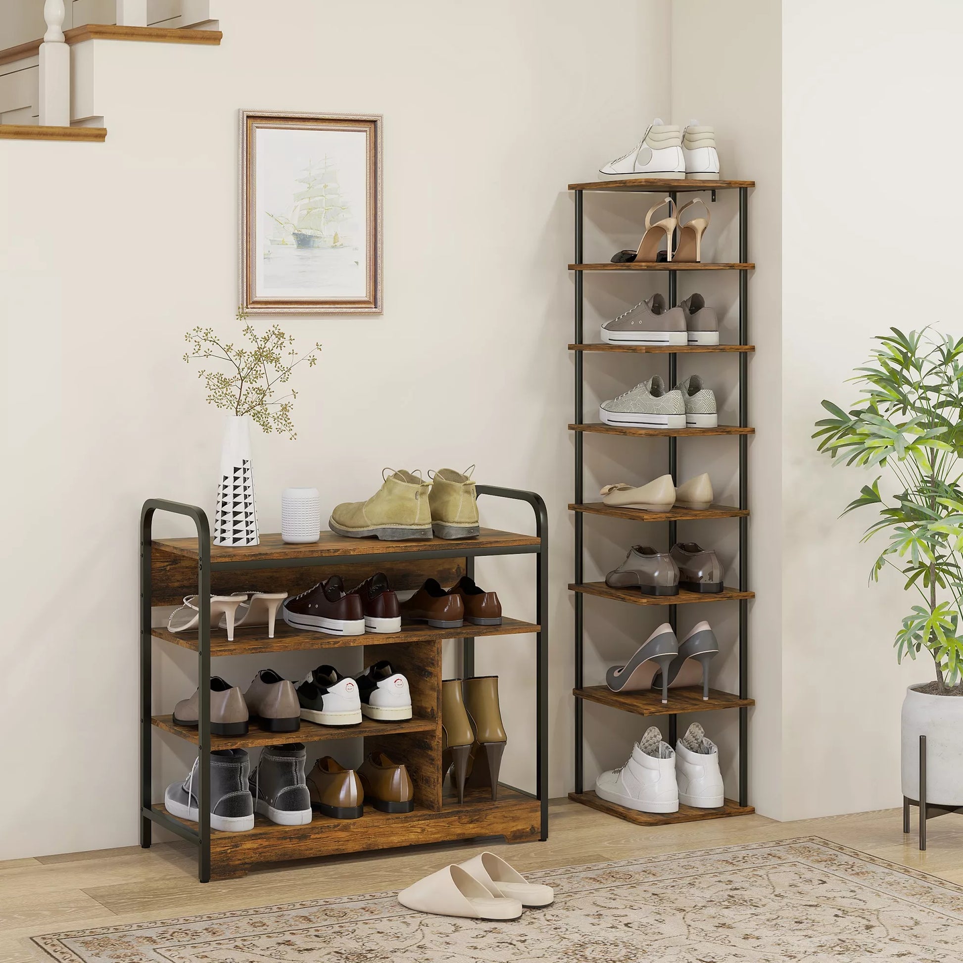 Ar jūsų batai visada trukdo? 4 pakopų batų lentyna nuo tai išspręs. Aukštesnė lentyna šone, idealiai tinkanti aukštakulniams ar aulinukams, užtikrina tvarką. Atviras dizainas leidžia akimirksniu rasti batus ir išlaiko juos švarius bei vėsius. Atsisveikinkite su batų chaosu ir pasisveikinkite su stilinga organizacija su pramoninio dizaino batų lentyna. Puikiai tinka tvarkingiems namams!