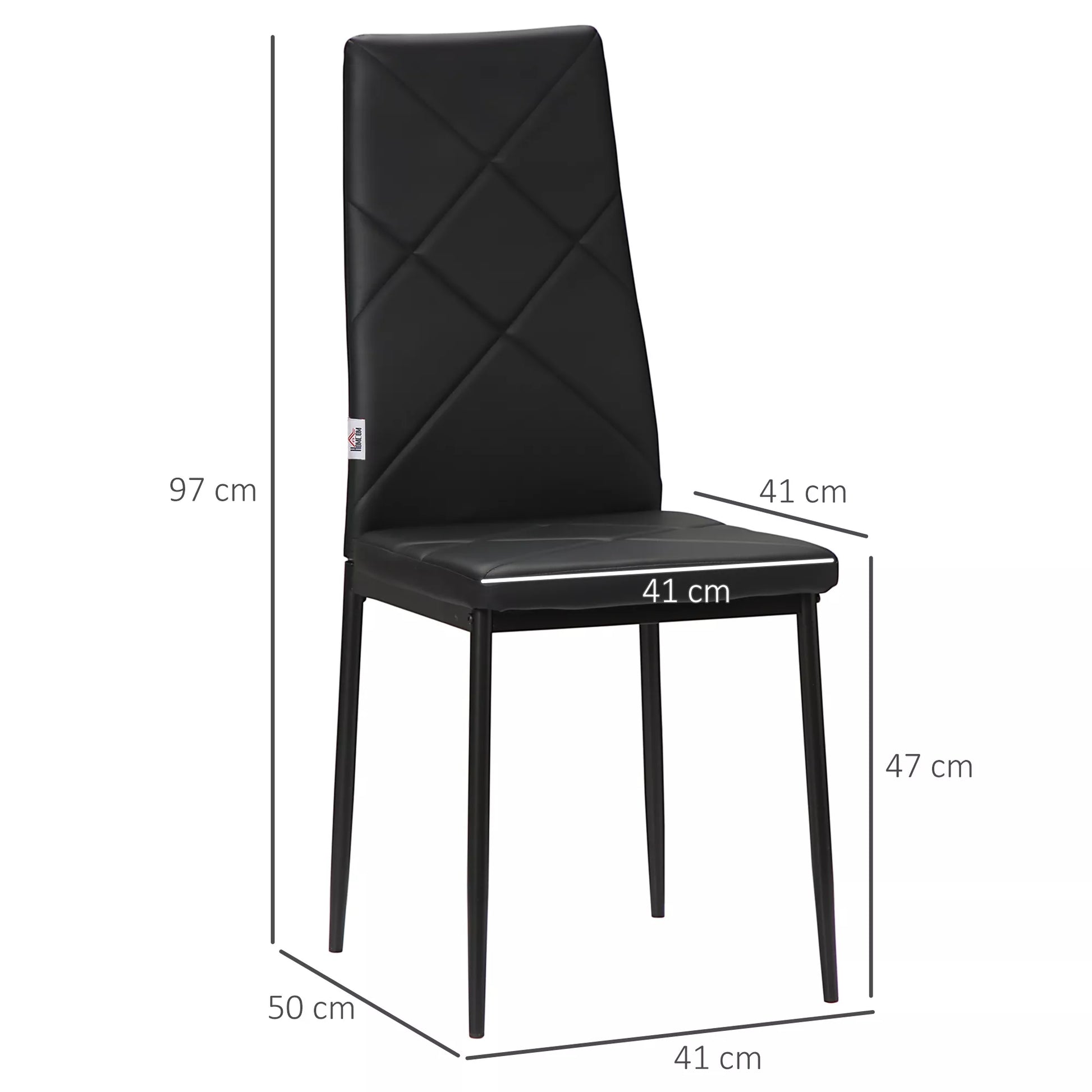 4 kėdžių komplektas, valgomojo kėdės, virtuvės kėdės, modernaus dizaino, 41 cm x 50 cm x 97 cm, juodos