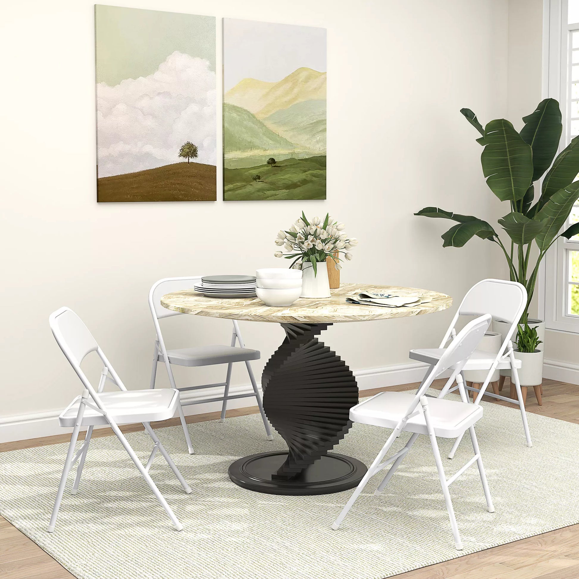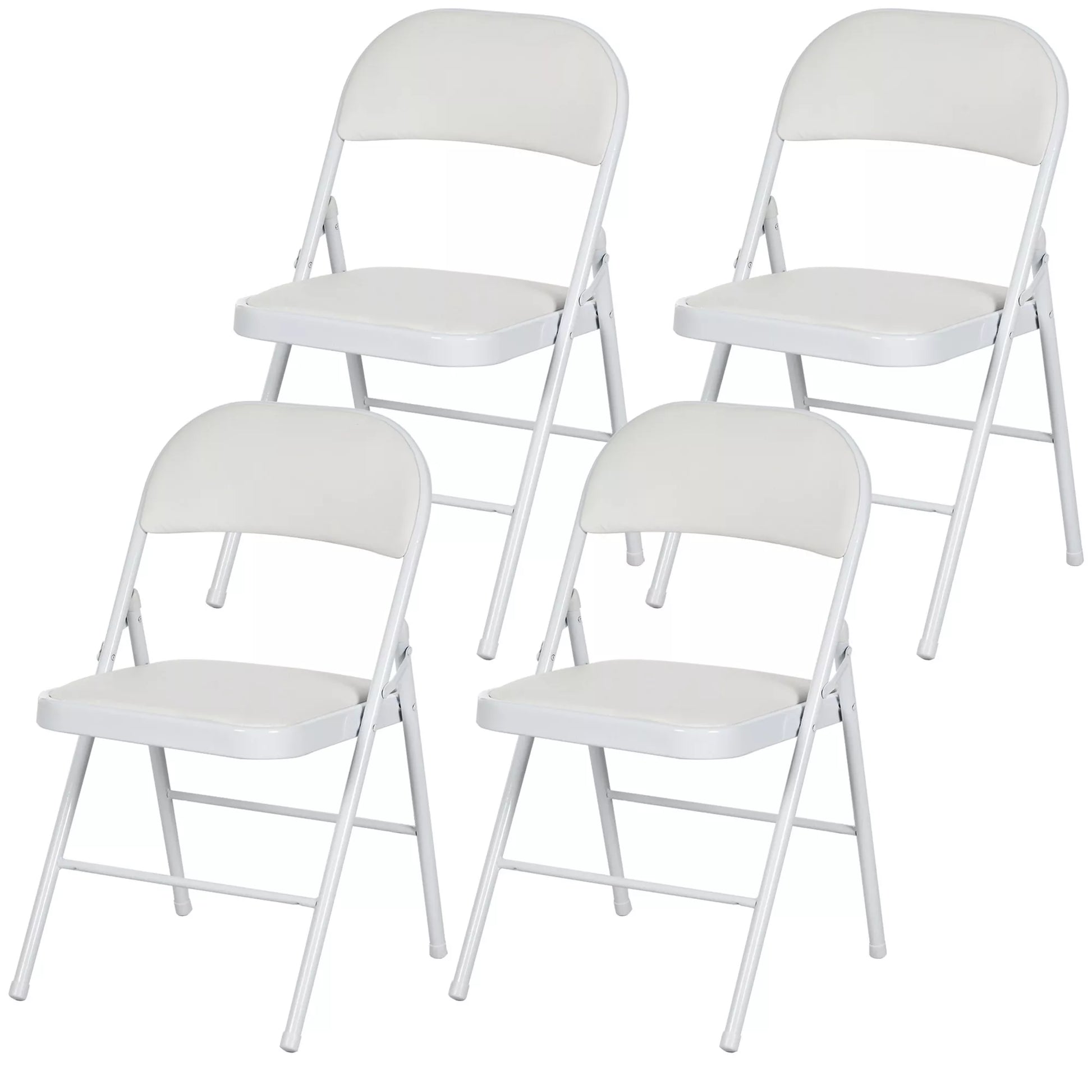 4 vnt. sulankstomų kėdžių rinkinys, nešiojamos biuro kėdės, metalinės kojos, sulankstoma kėdė biurui, priėmimui, laukimo kambariui, dirbtinė oda, balta