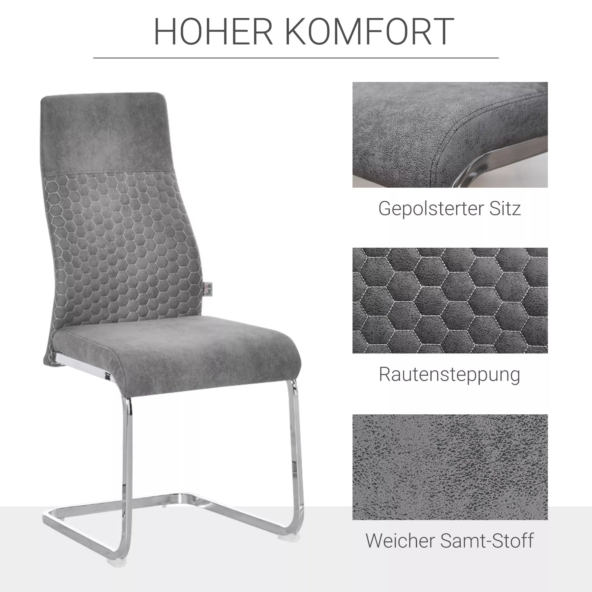 HOMCOM 4 vnt. rinkinys Svyruoklinės valgomojo kėdės 4 dalių virtuvės kėdės, mikropluoštas, 45 x 61 x 98 cm, pilkos