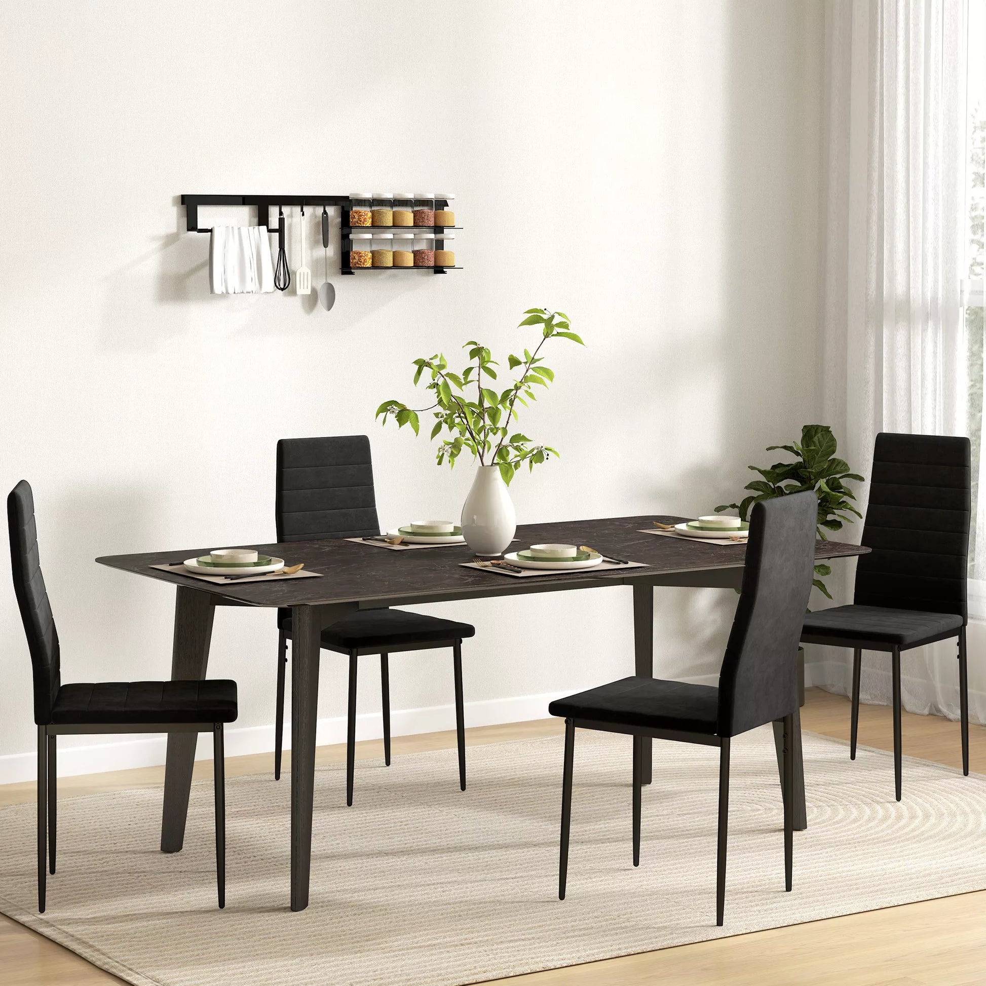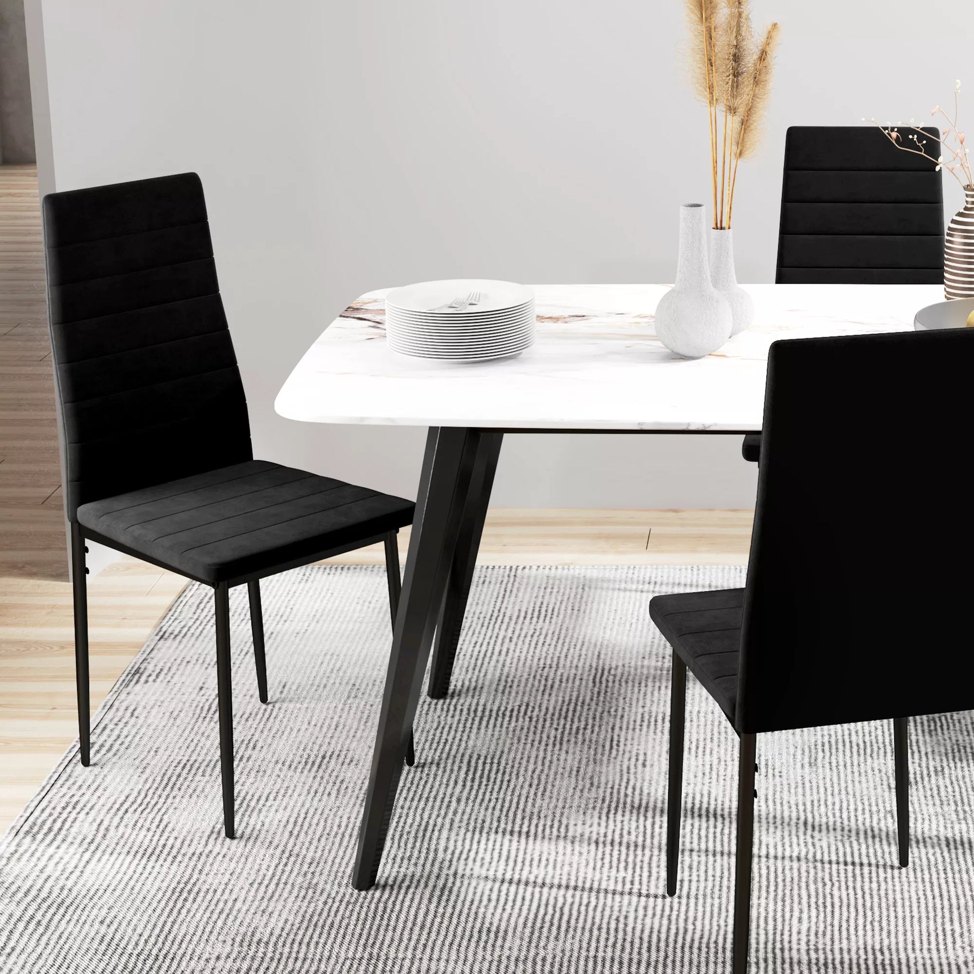 4 vnt. rinkinys Valgomojo Kėdės, Dizainas be porankių, Audinio apmušalas, Metalinės kojos, Juodos