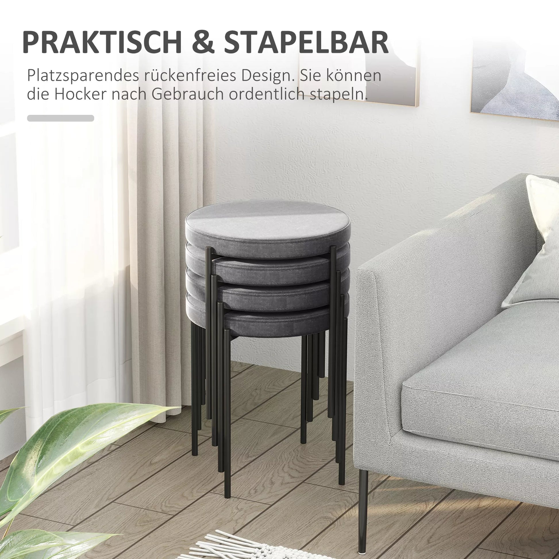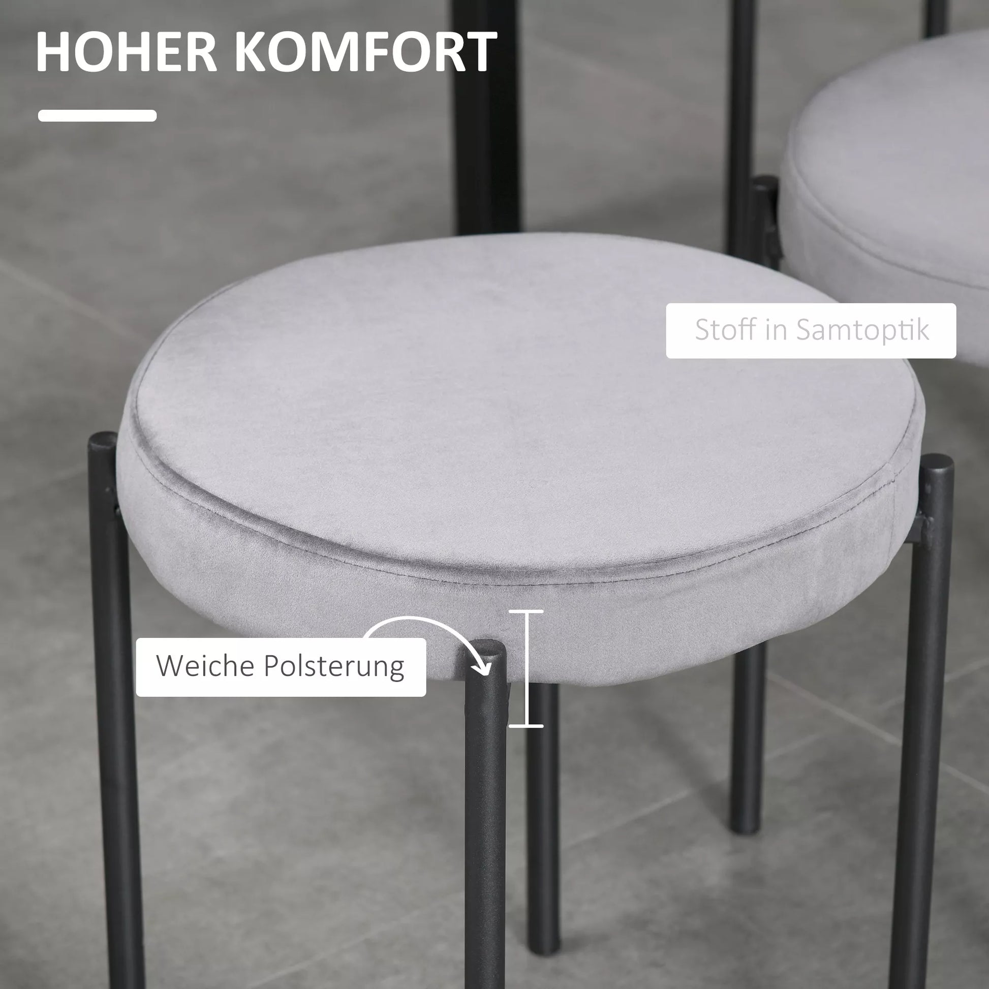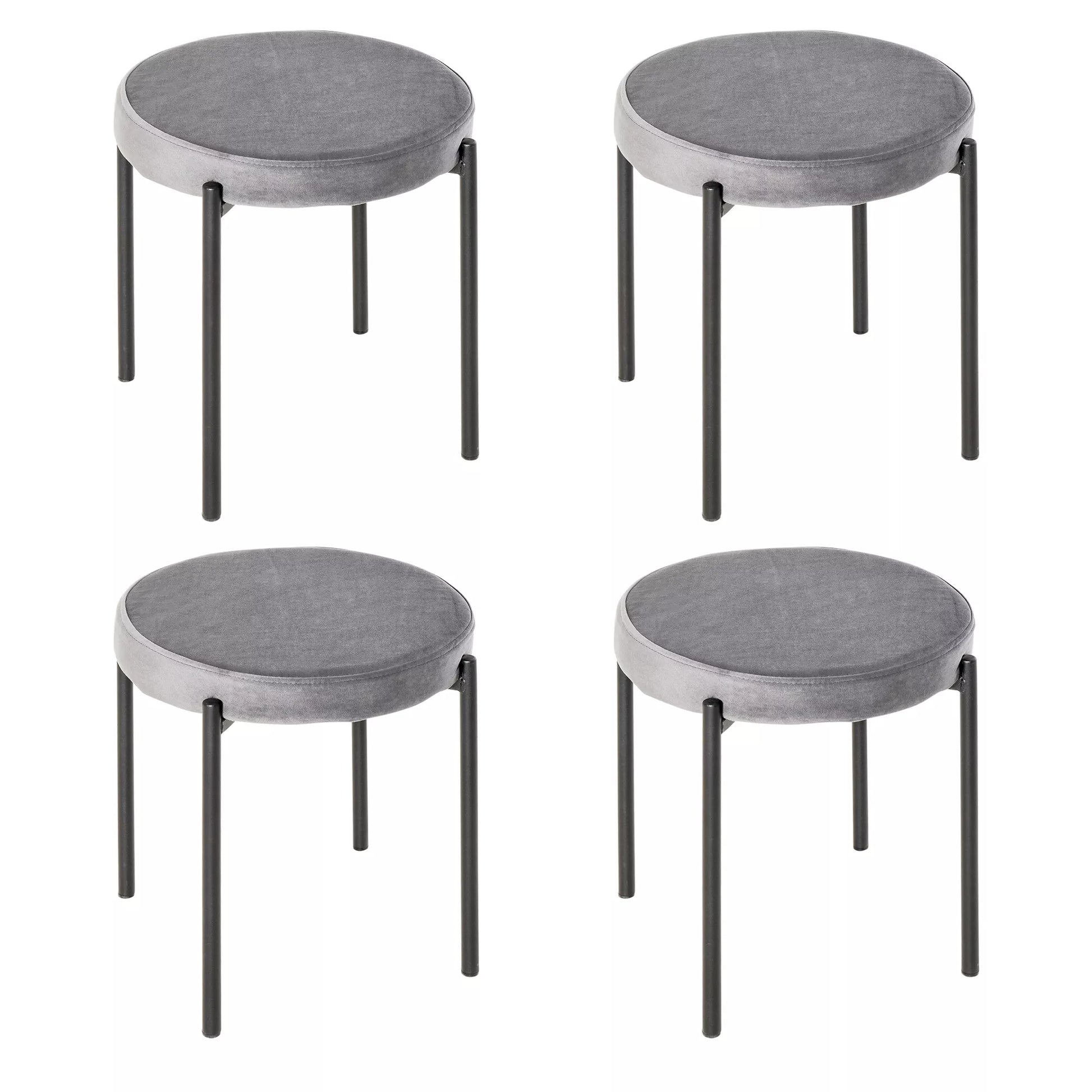 4 vnt. rinkinys Valgomojo taburetės, sukraunamos Virtuvės kėdės su minkšta sėdyne, "velvet" tipo optika, taburetė virtuvei ir valgomajam, metalas, pilka, 41,5 x 41,5 x 46 cm