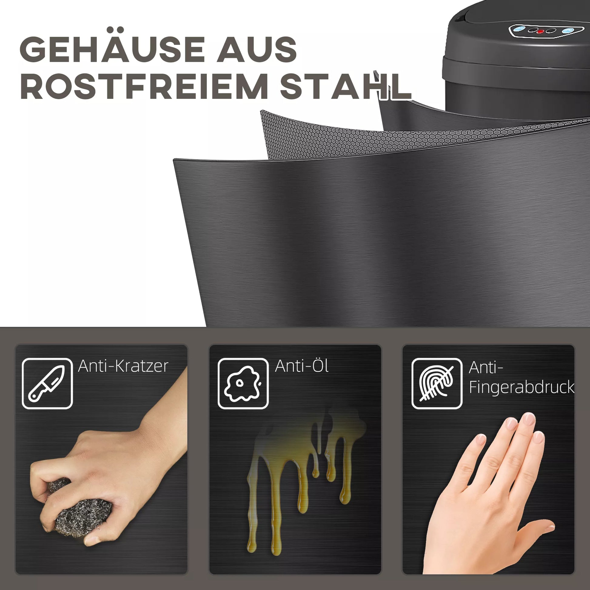 42 litrų sensorinė šiukšliadėžė su švelnaus užsidarymo funkcija, nerūdijančio plieno, be kontakto, higieniška virtuvės šiukšliadėžė