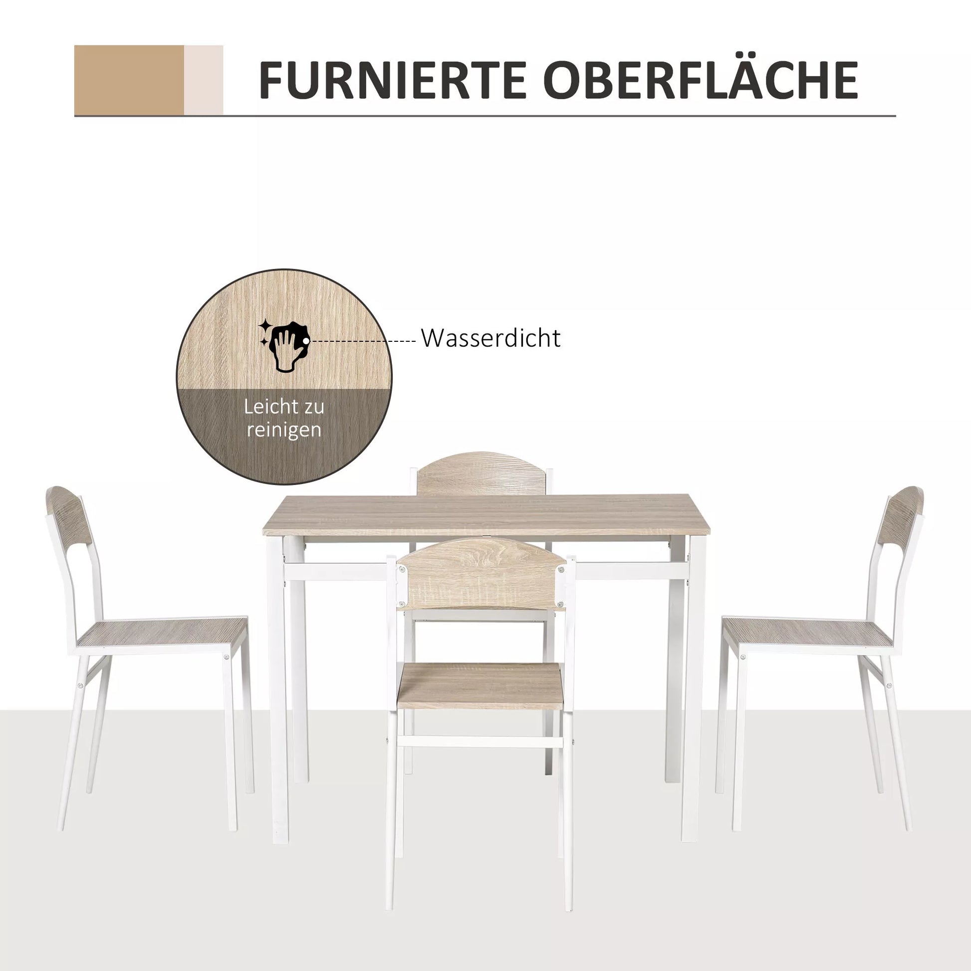 - ✔ 5 dalių komplektas: 1 stalas ir 4 derančios kėdės