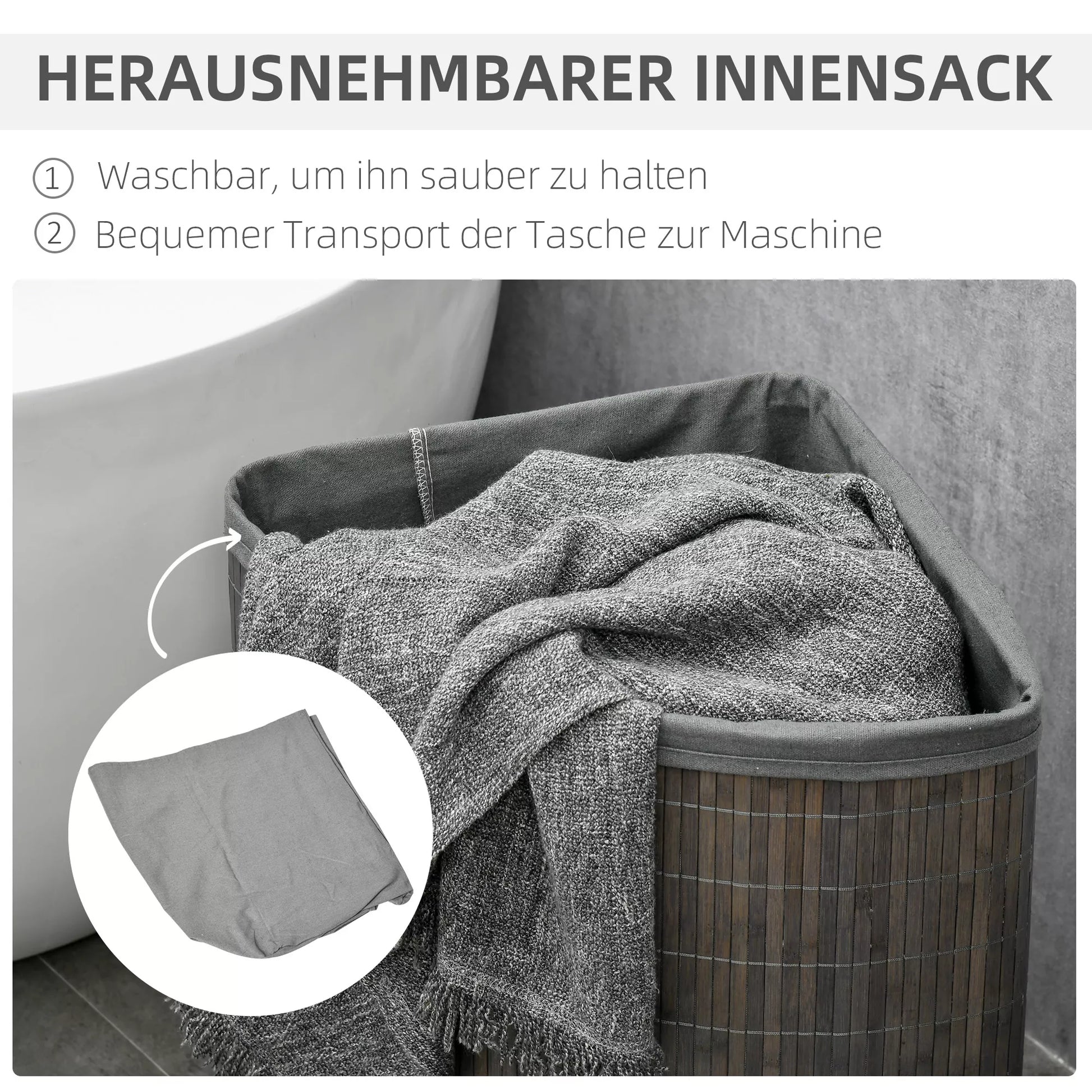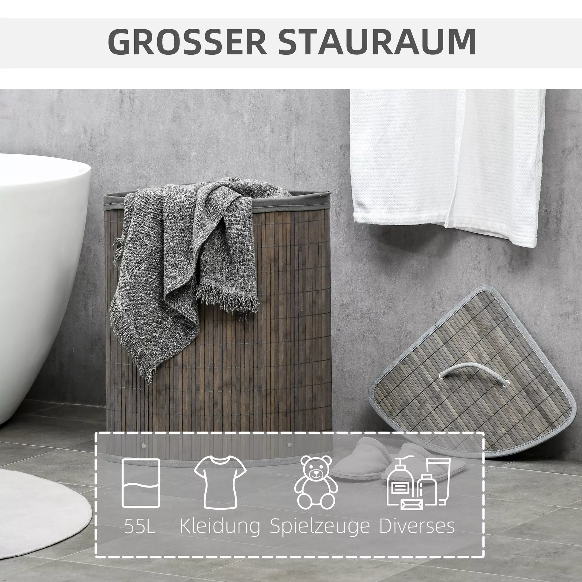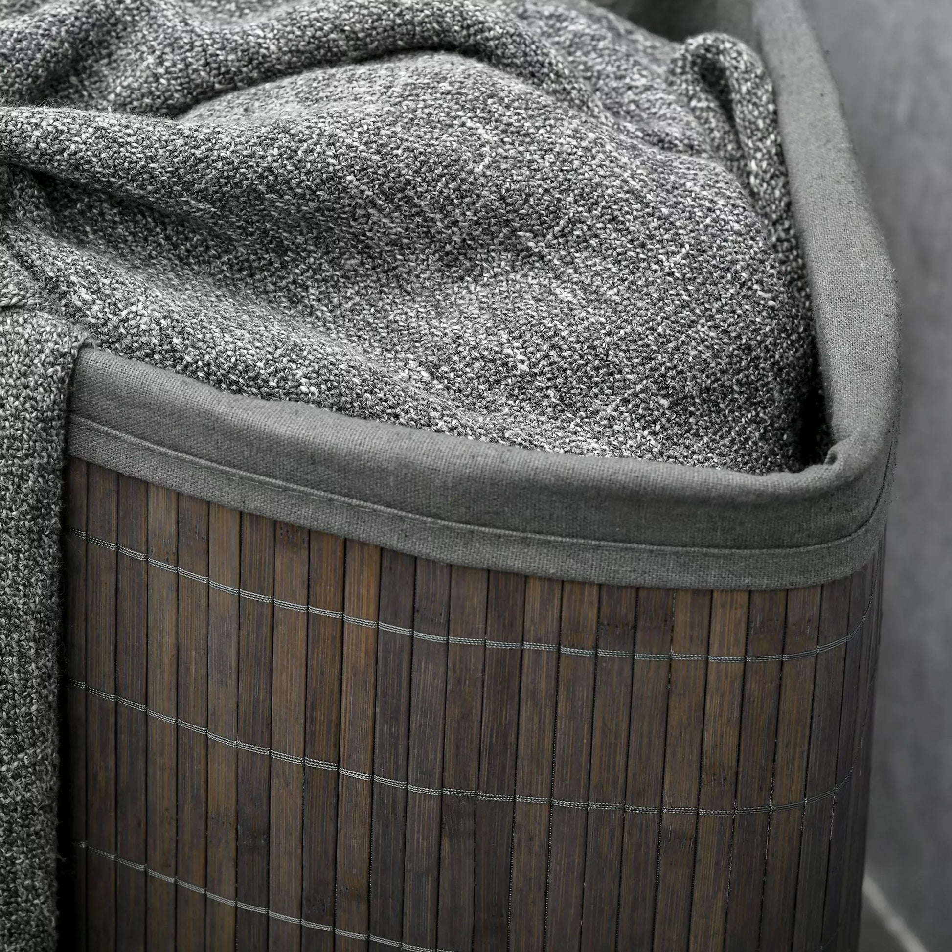 55 L skalbinių krepšys su dangčiu, rankena, skalbinių rūšiuoklis su išimamu skalbinių maišeliu vonios kambariui, bambukas, pilkas.