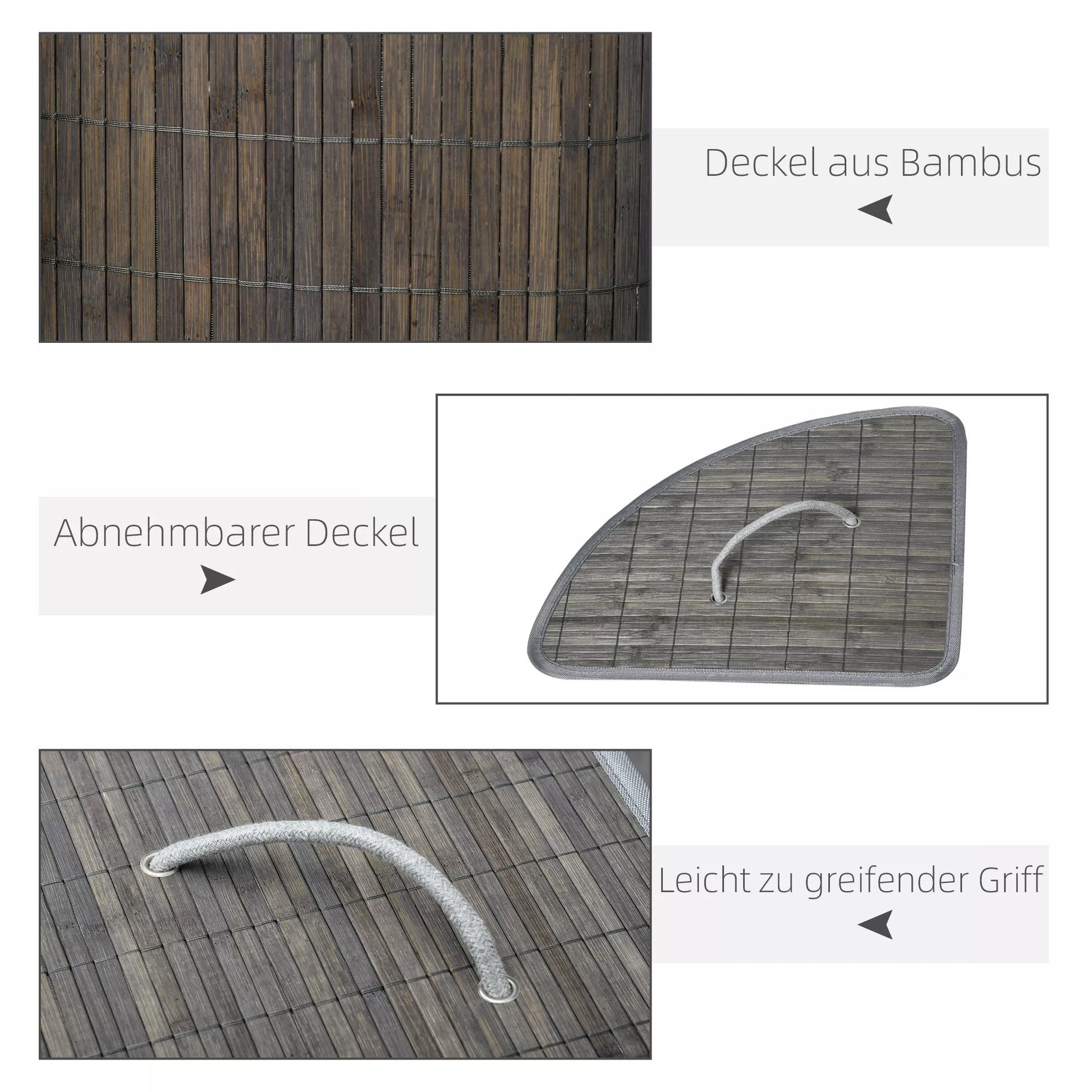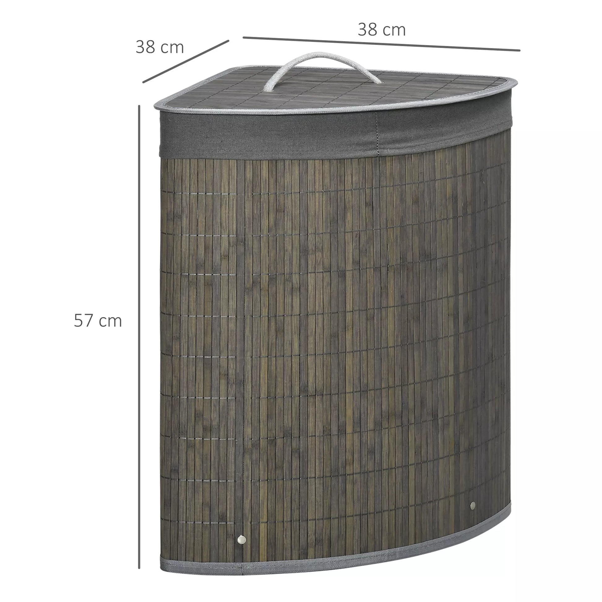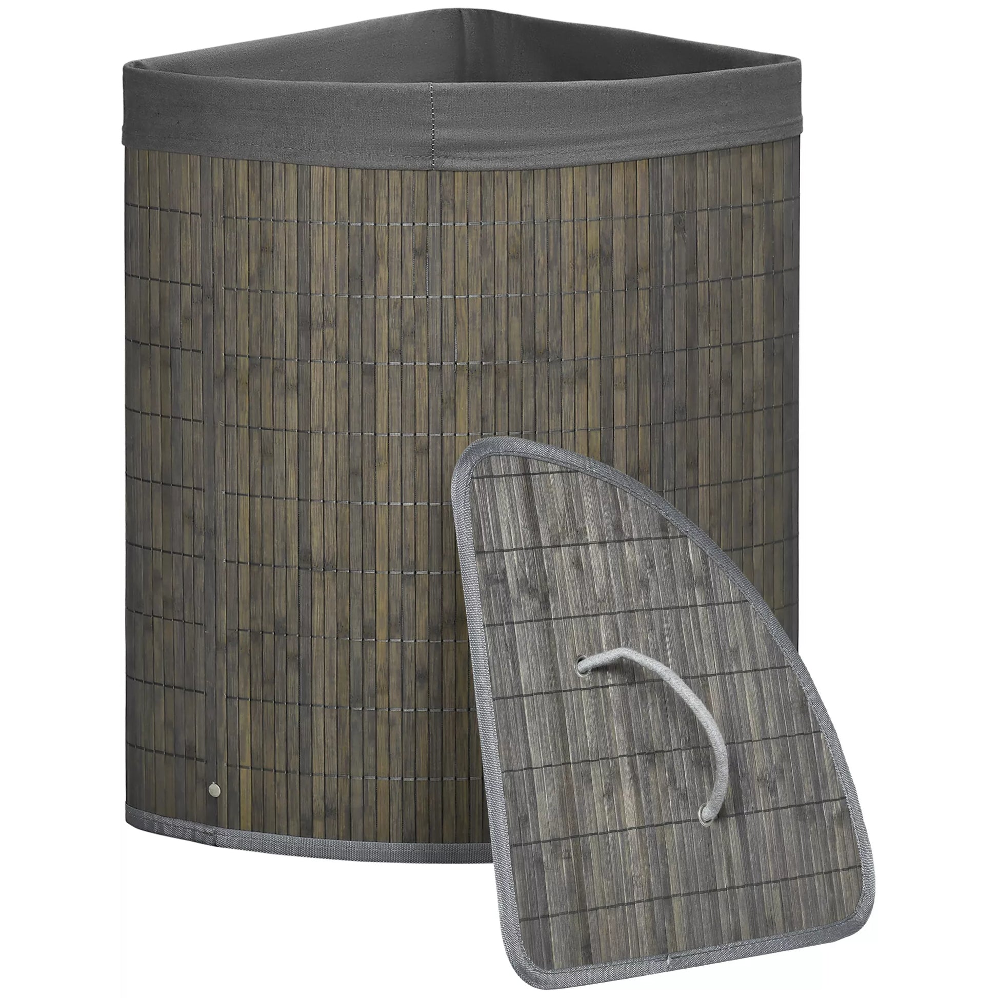 55 L skalbinių krepšys su dangčiu, rankena, skalbinių rūšiuoklis su išimamu skalbinių maišeliu vonios kambariui, bambukas, pilkas.