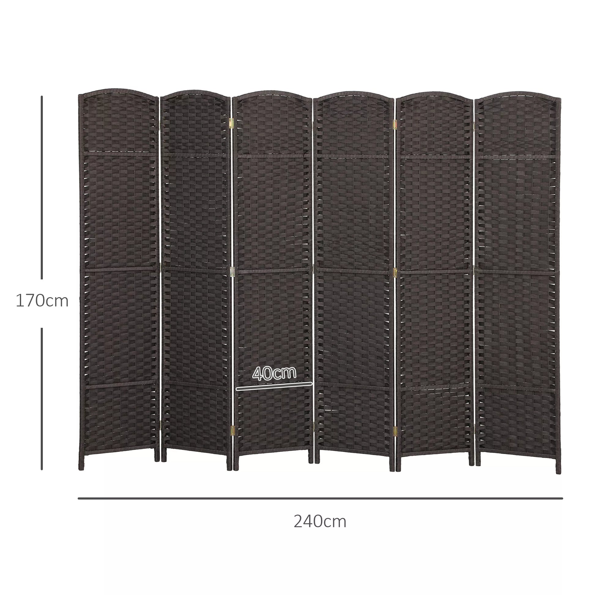 6 dalių sulankstoma kambario pertvara, privatumo užsklanda svetainei, miegamajam, namų biurui, ruda
