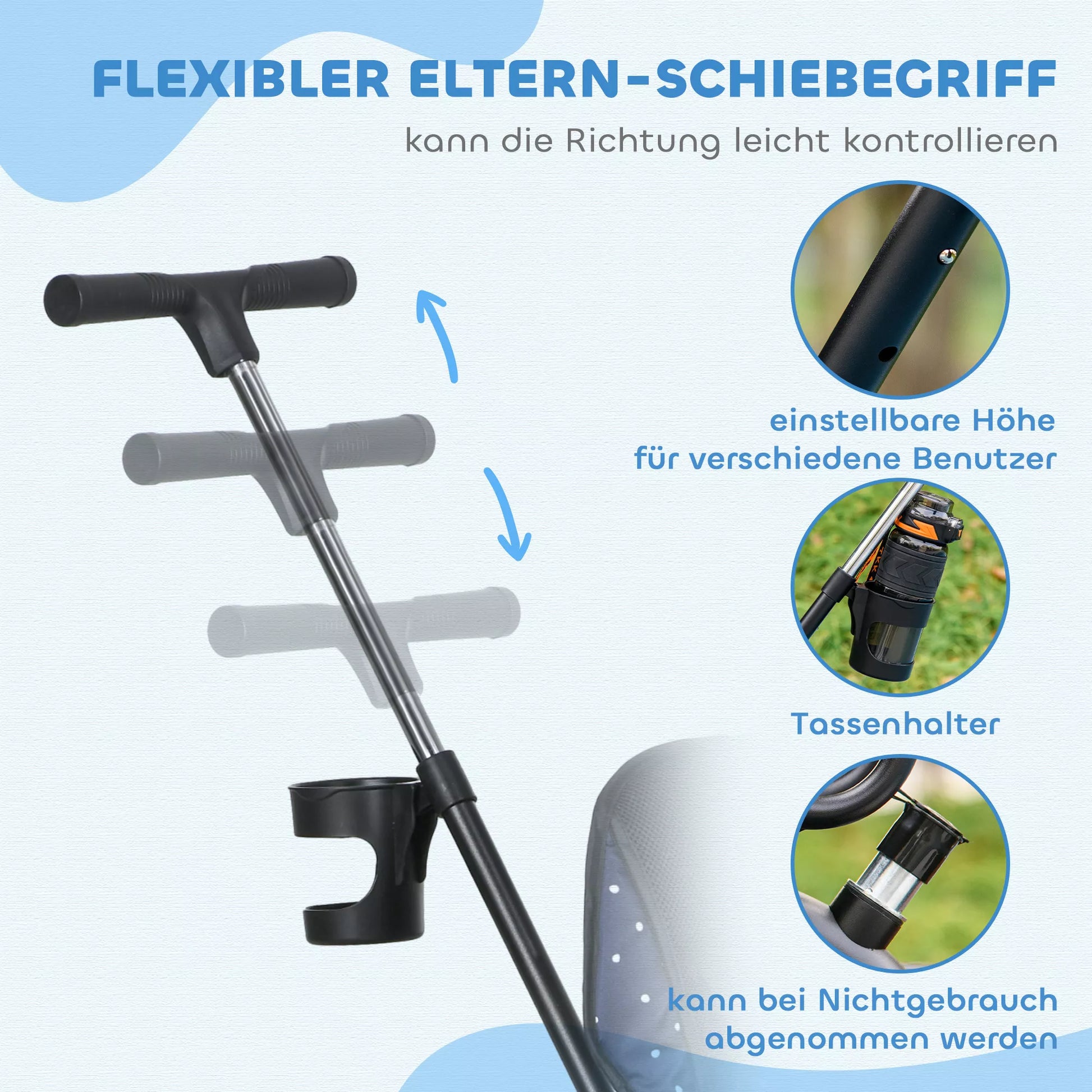 - ✔ Nuimama stūmimo rankena leidžia tėvams lengvai valdyti važiavimo kryptį