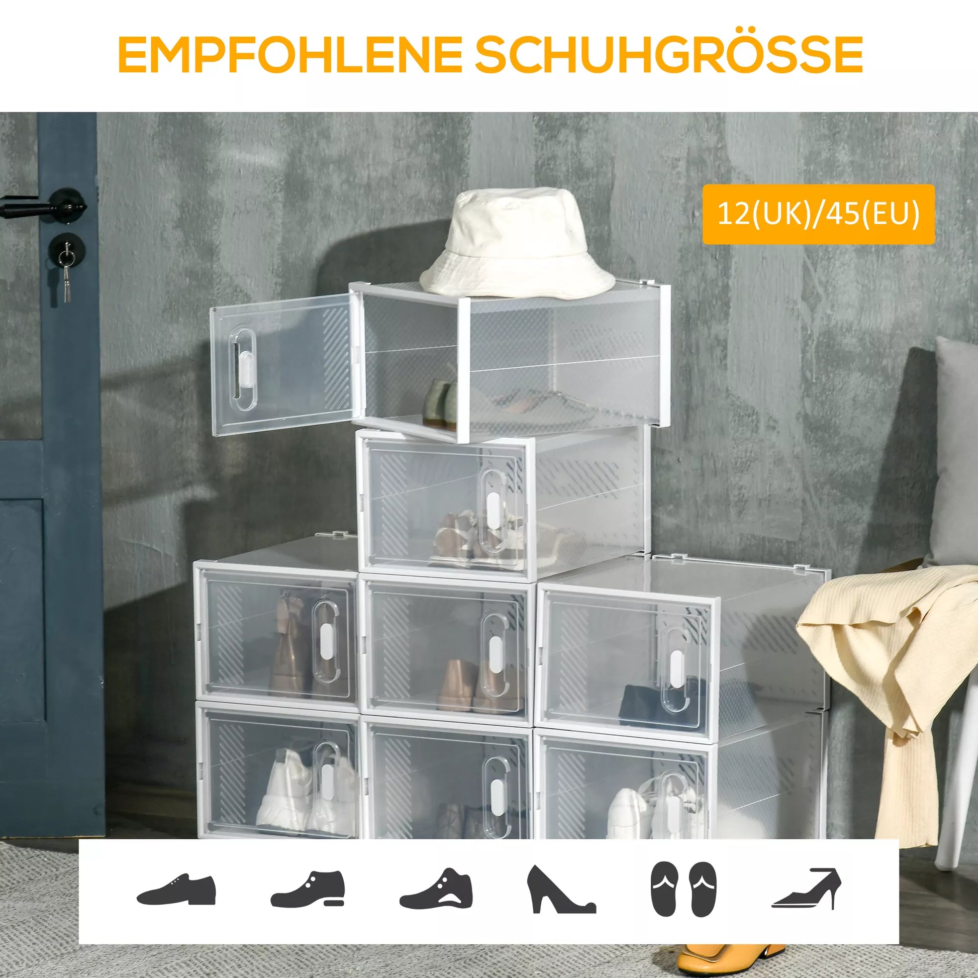 Ar nenorite, kad Jūsų batai būtų atviri spintelėje ir kauptų dulkes? Skaidri batų lentyna siūlo lankstų dizainą su 8 moduliais, kuriuos galite individualiai išdėstyti. Dėl viršuje esančio išpjovimo šias jungiamąsias lentynas galima saugiai sukrauti vieną ant kitos. Skaidrių kubelių lentynos plastikinių plokščių dėka greitai rasite viską. Puikus ir tvarkingas Jūsų namų priedas!