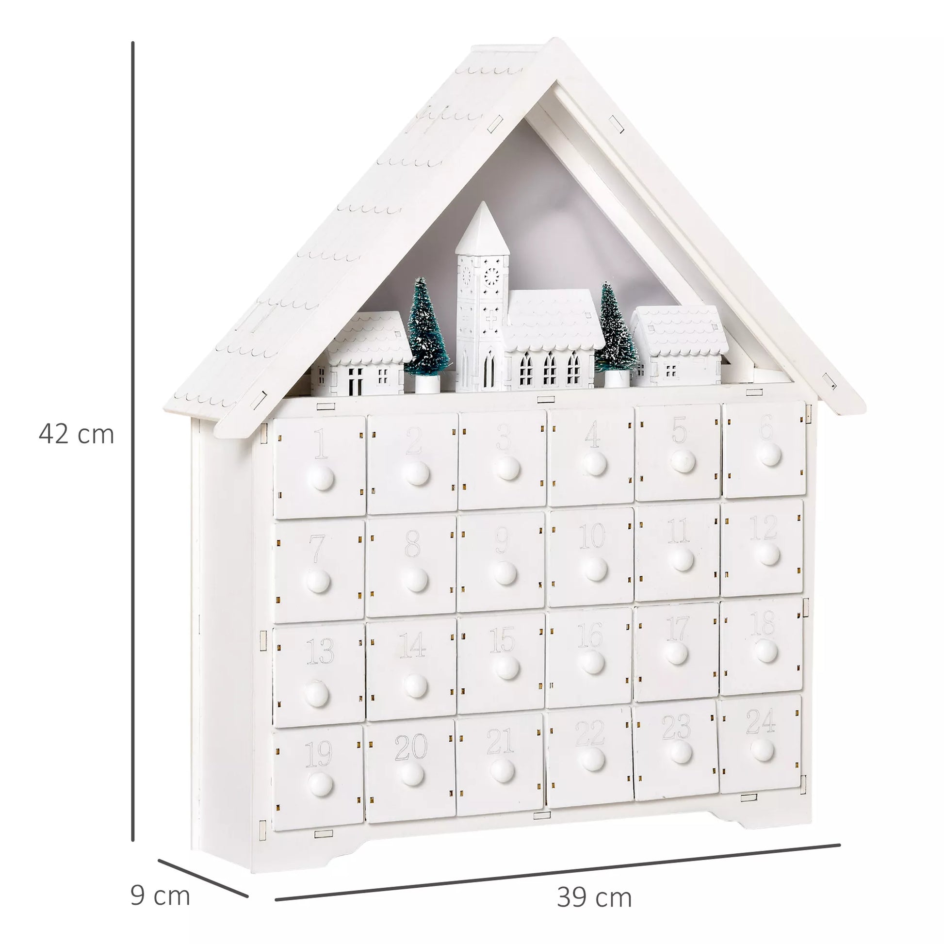 Advento kalendorius Kalėdinė puošmena, 24 stalčiukai, LED lemputės, 39 cm x 9 cm x 42 cm, Balta + Žalia