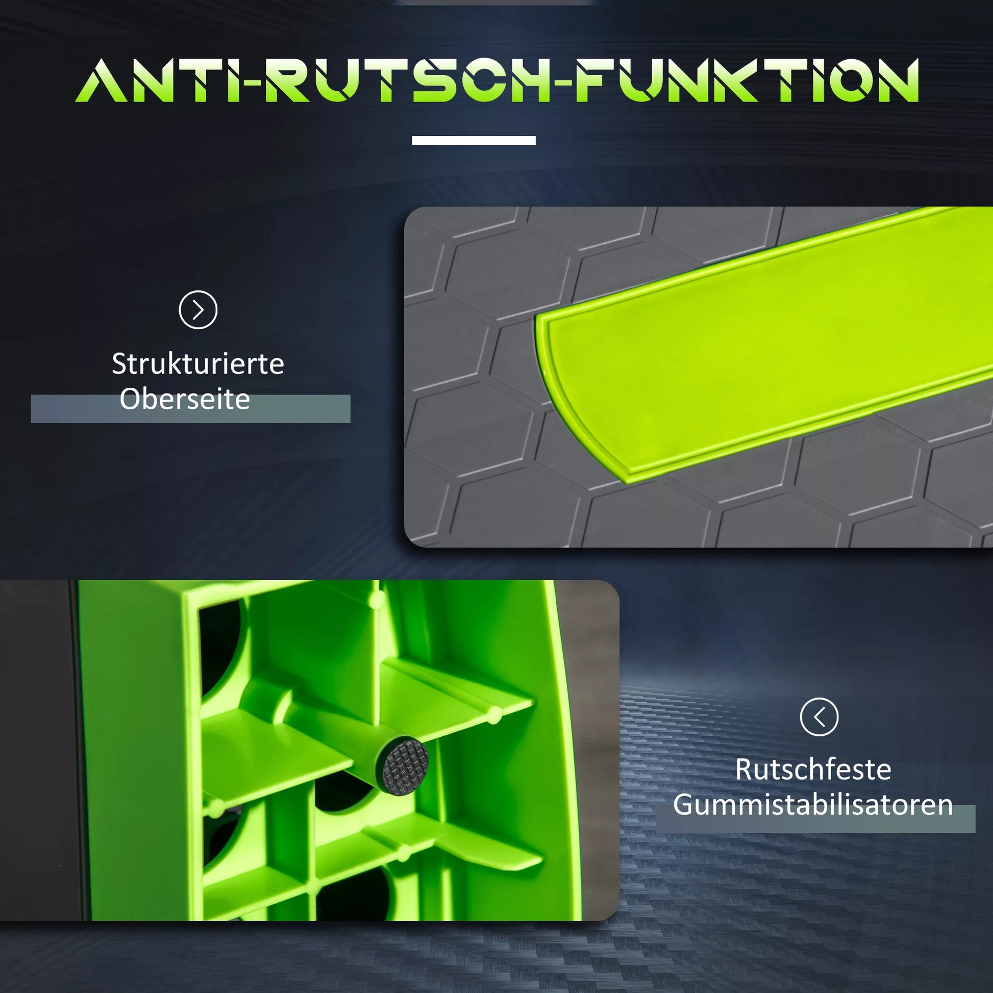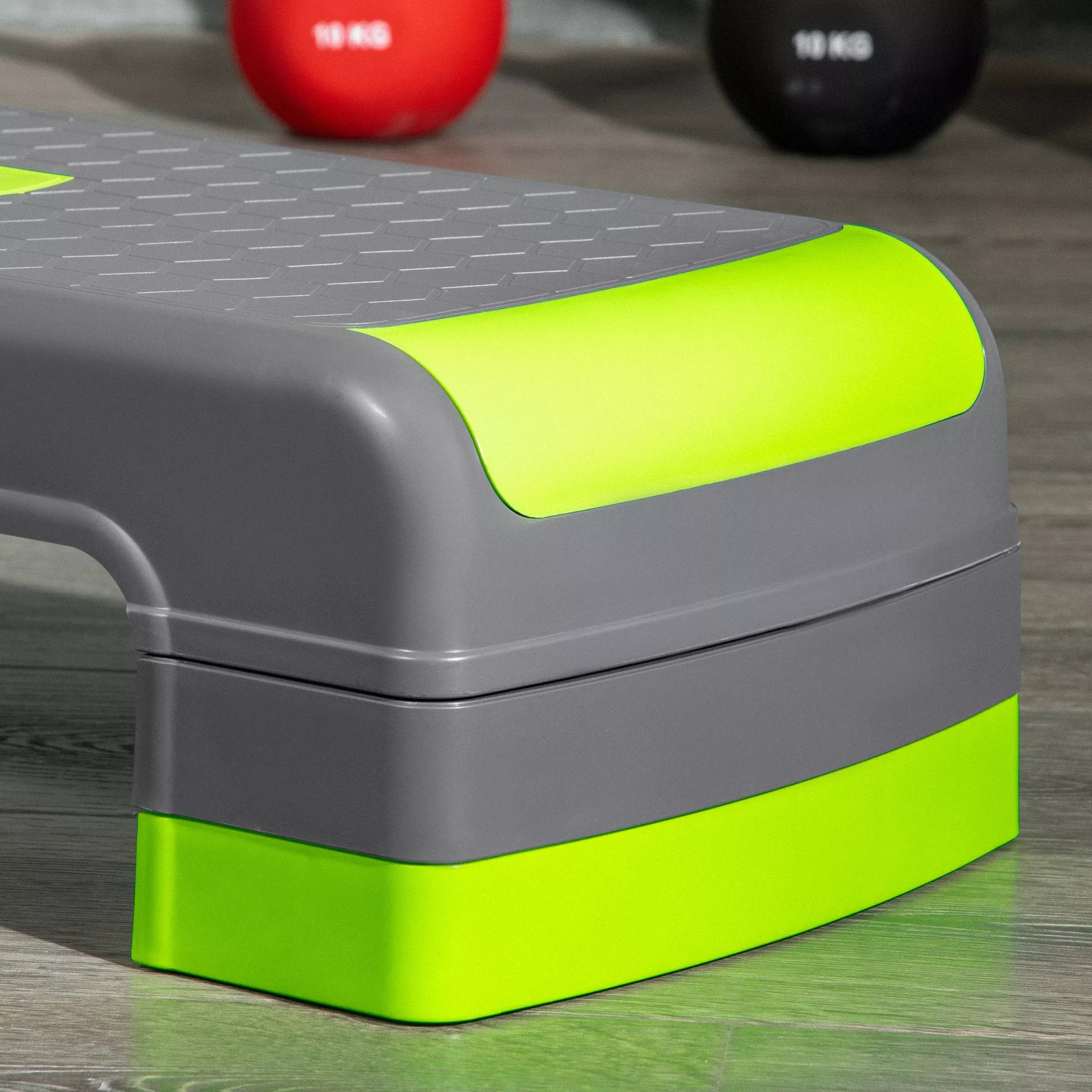 Aerobikos pakyla, reguliuojama 3 lygiais, iki 150 kg, 78 x 28 x 20 cm, pilka/žalia