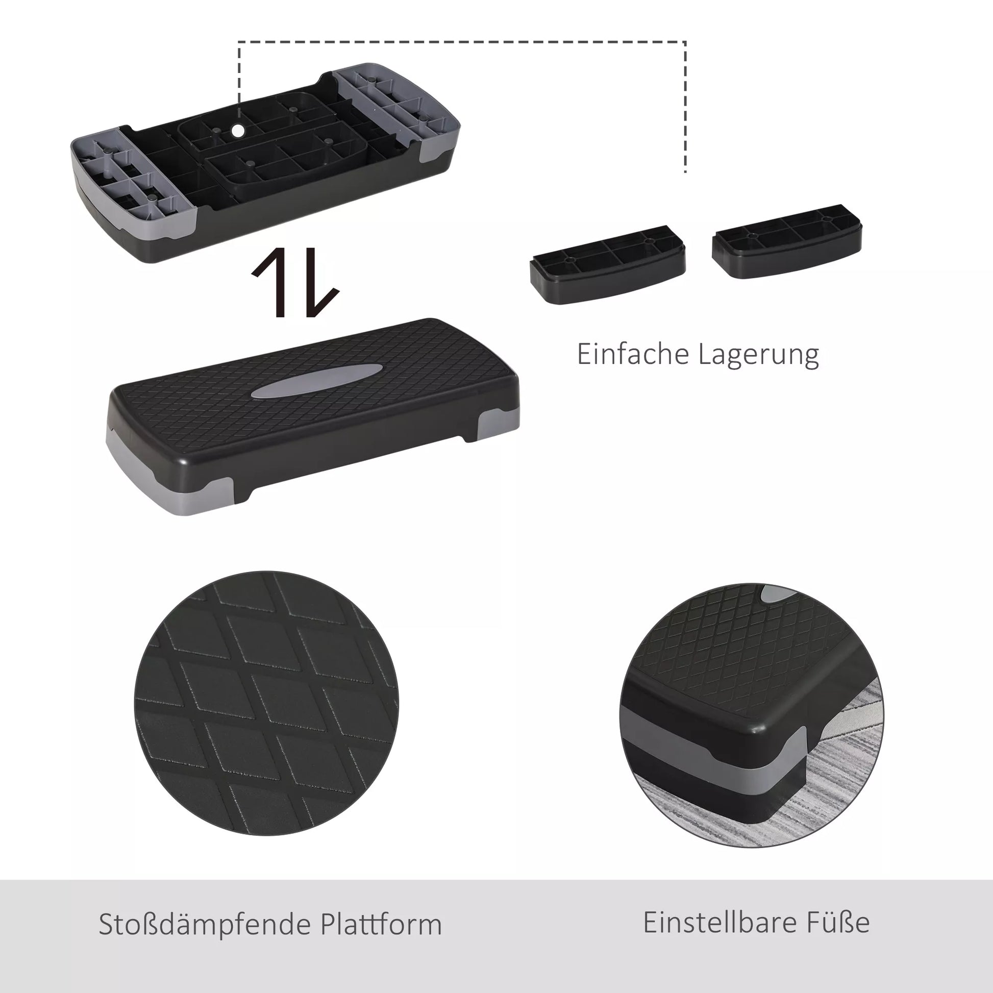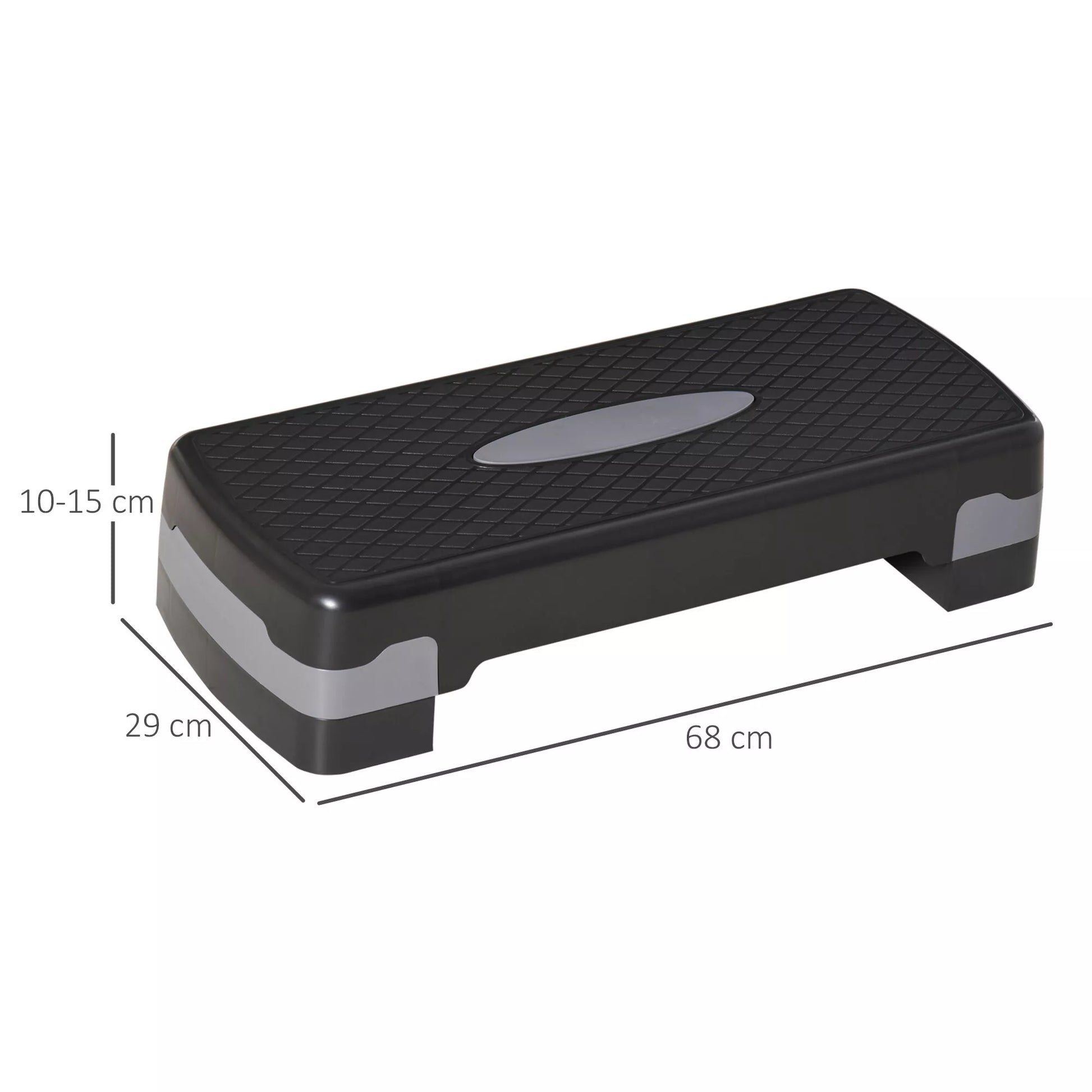Aerobikos pakyla 2 pakopų, reguliuojamas aukštis 10-15cm, neslystantis treniruočių laiptelis, mini pakyla namams, biurui, juoda+pilka