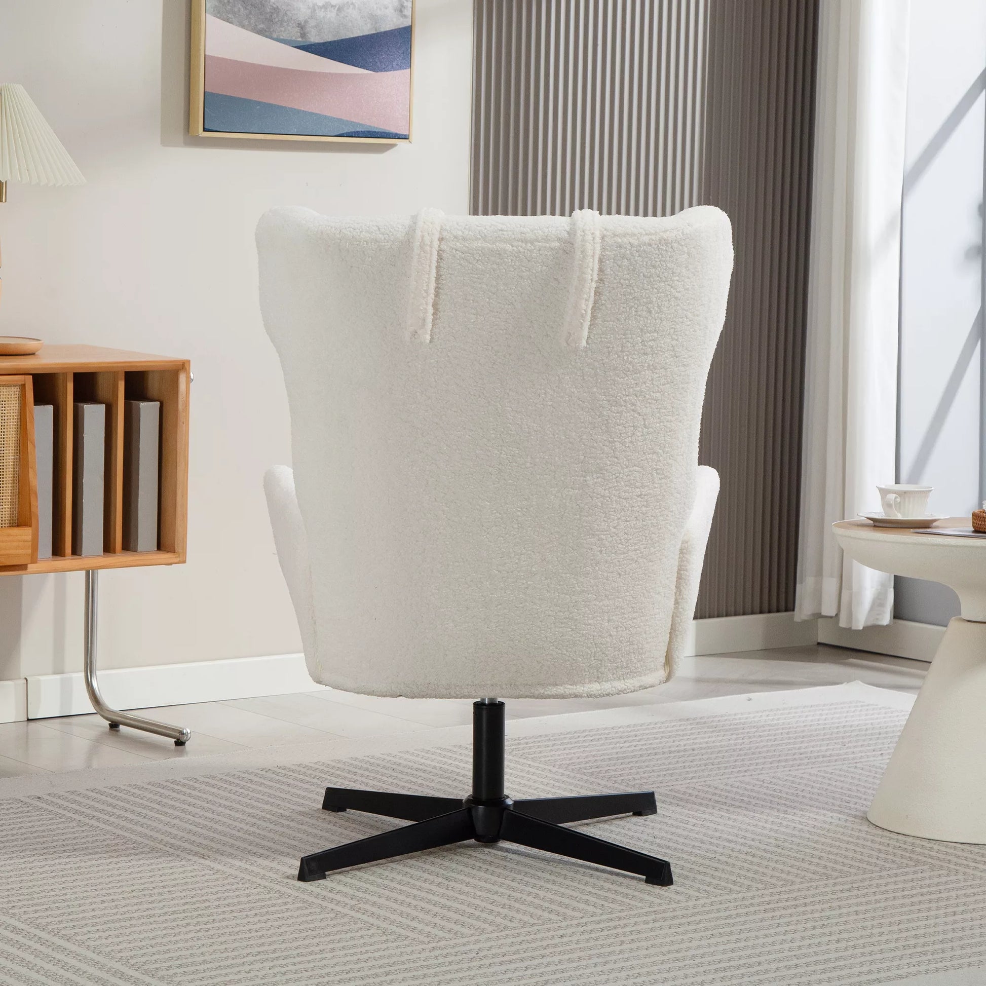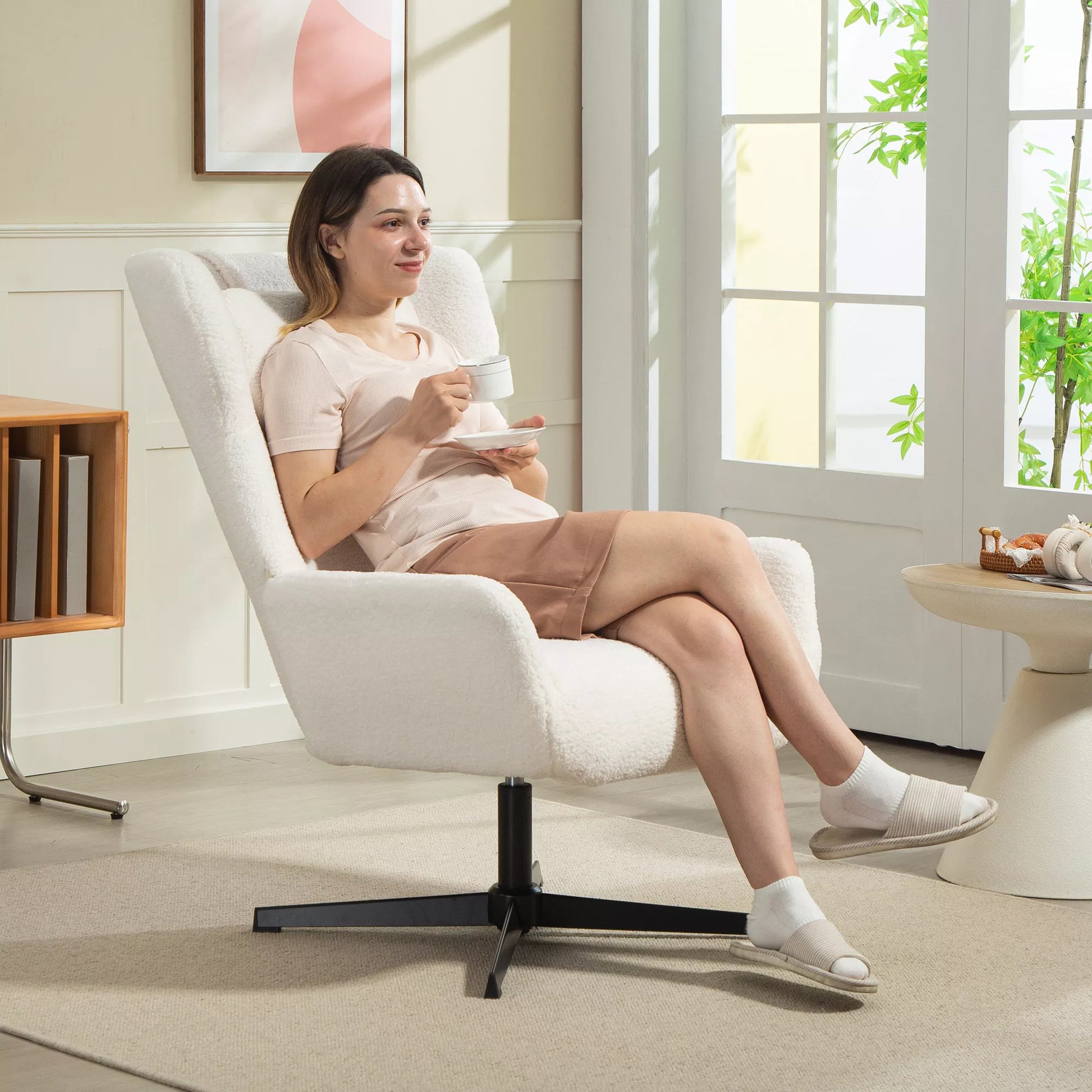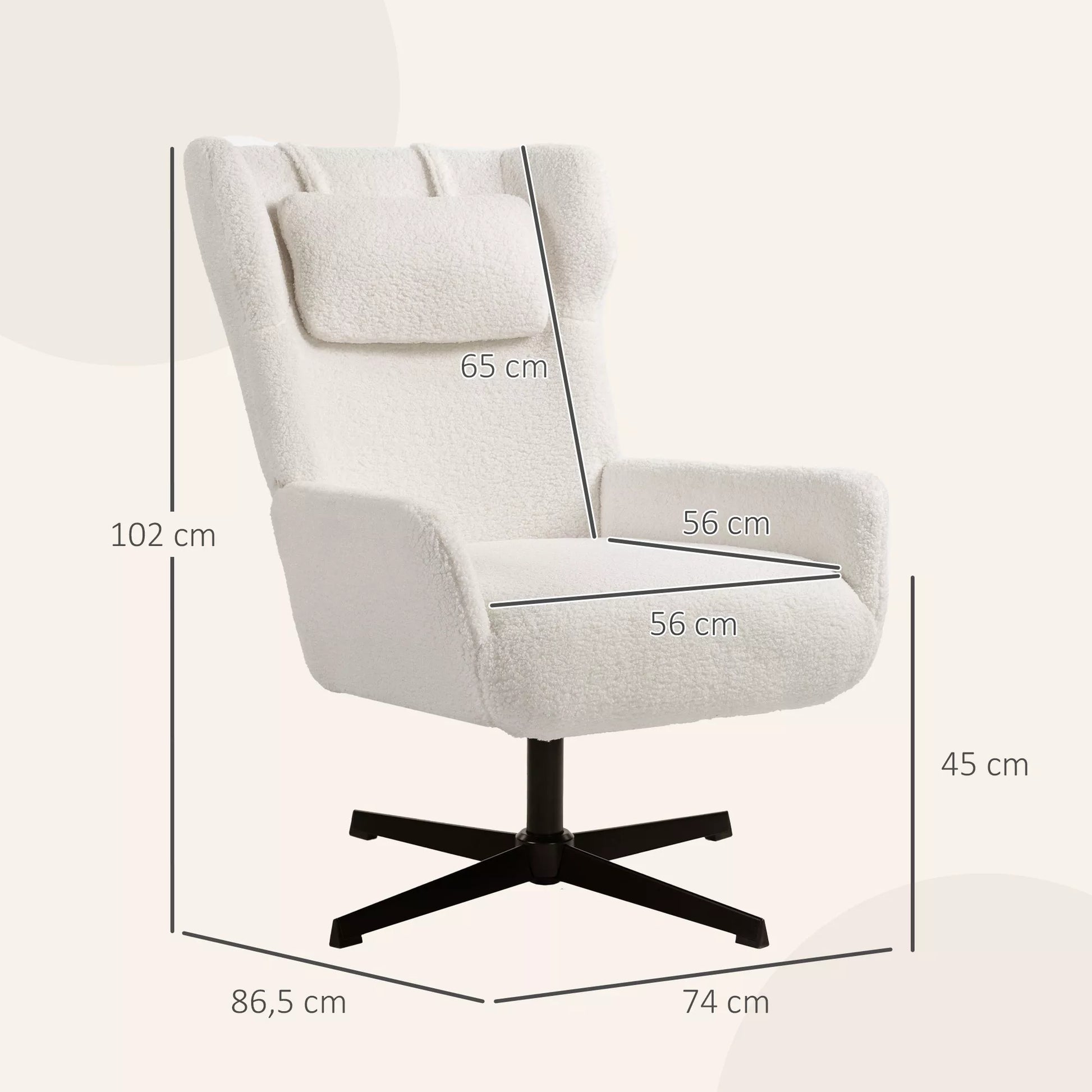 Akcentinis fotelis, minkštas krėslas su fleeciniu apmušalu, besisukantis pagrindas, metalinis rėmas, kremas baltas
