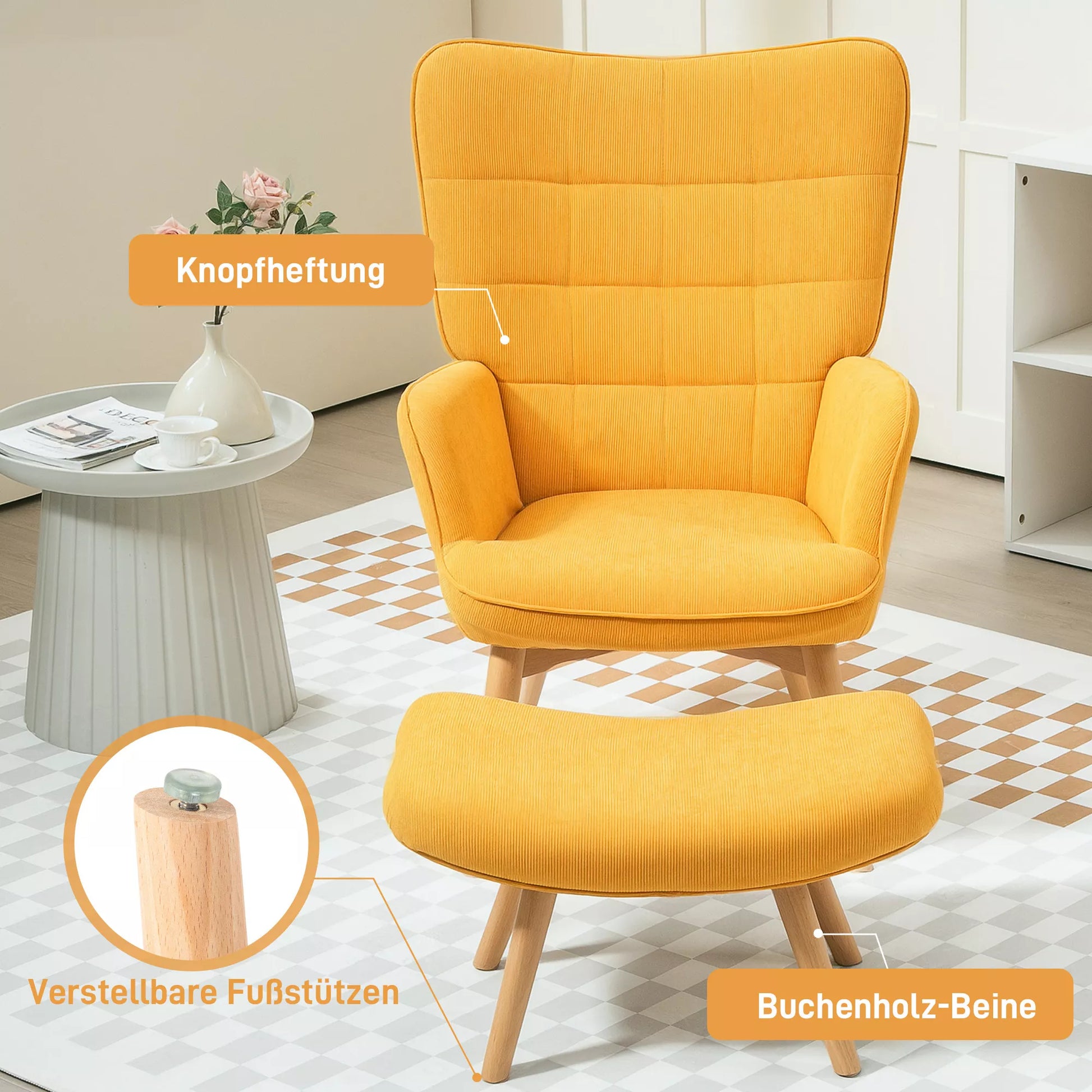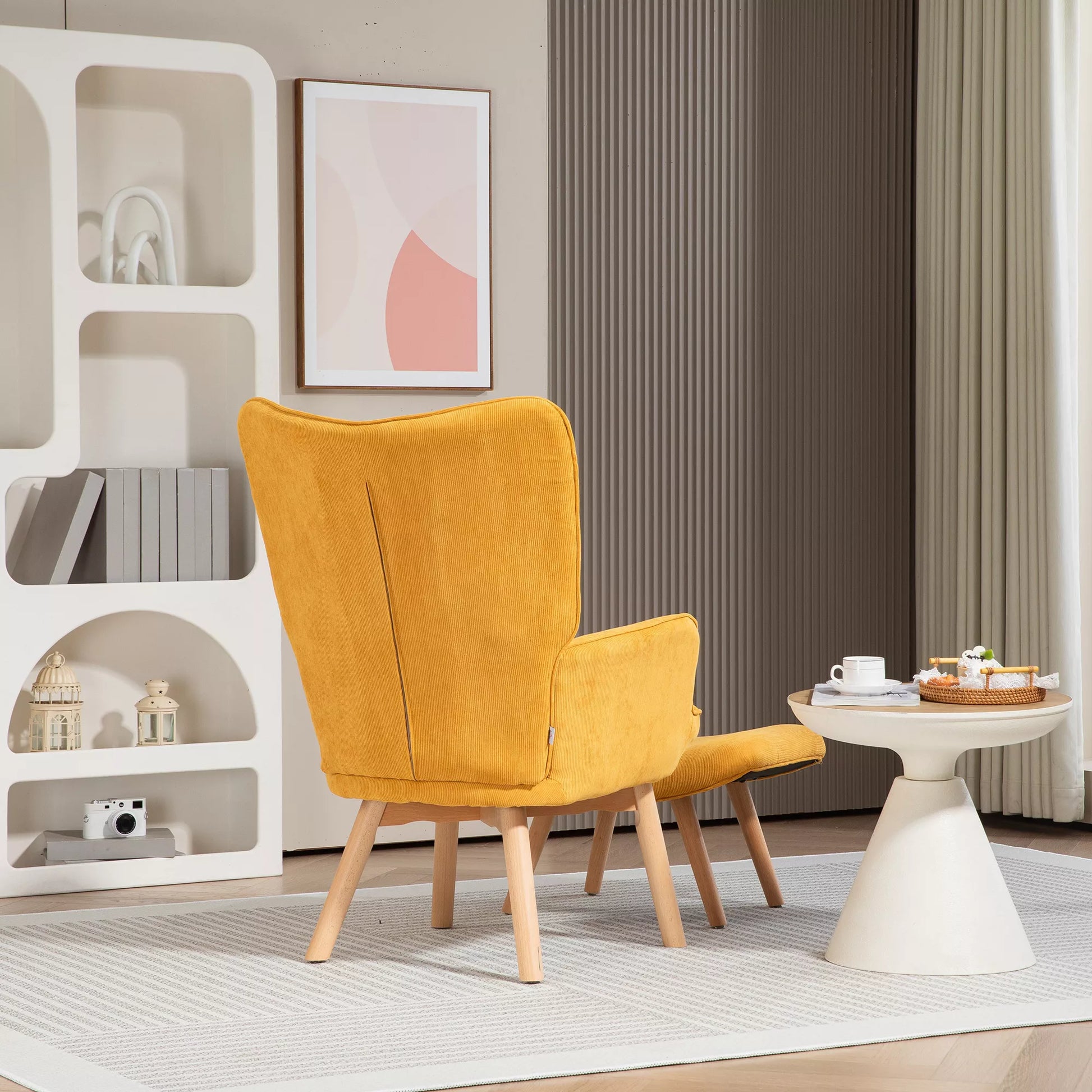 HOMCOM Akcentinis fotelis su pakoja, poilsio fotelis su veliūro išvaizda, fotelis su porankiais ir medinėmis kojomis, svetainei, oranžinis