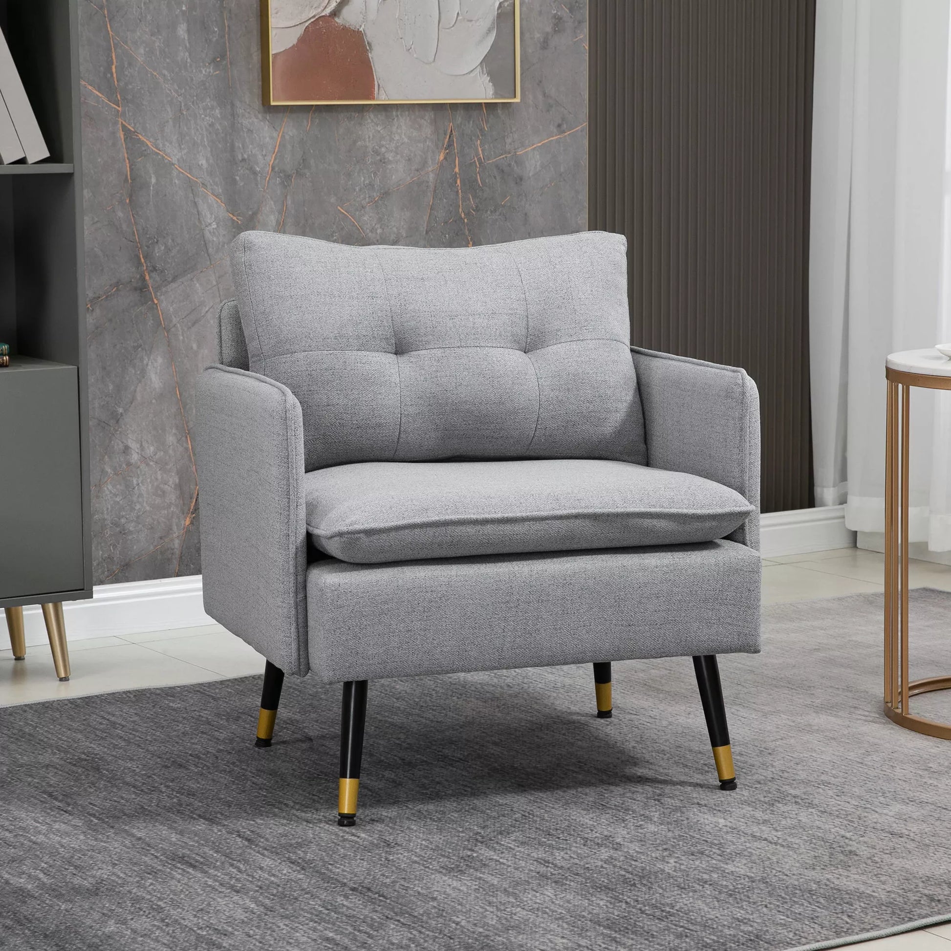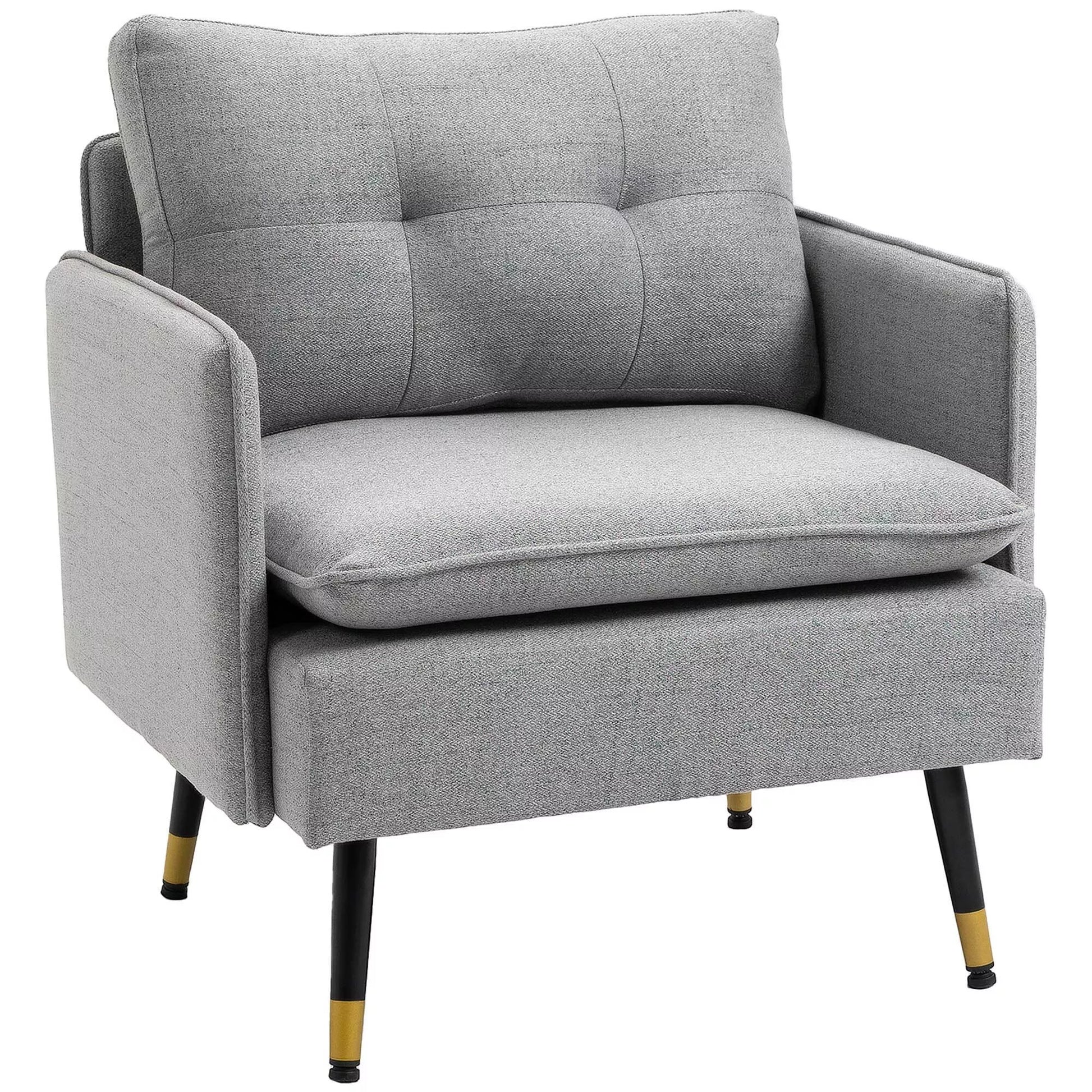 Akcentinis krėslas su sagčių dygsniavimu, minkštasuolis, nuimamos pagalvėlės, Juoda + Auksinė + Pilka