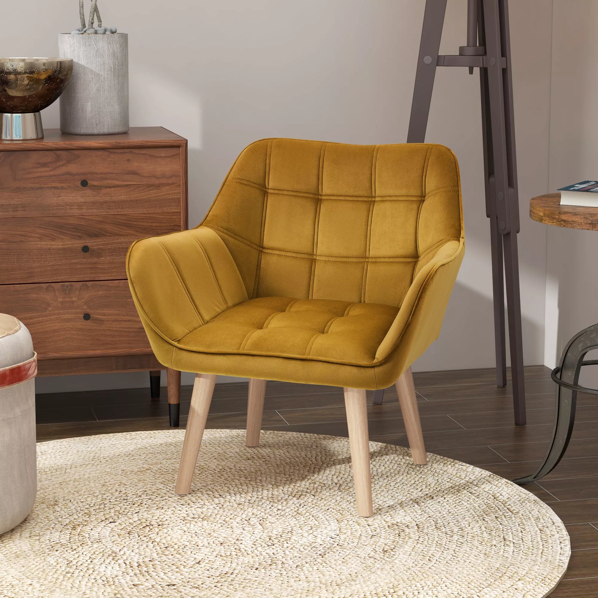 Apmuštasis fotelis, akcentinis fotelis, skandinaviško dizaino, aksomo išvaizdos, iki 120 kg, guminio medžio kojelės, geltonas