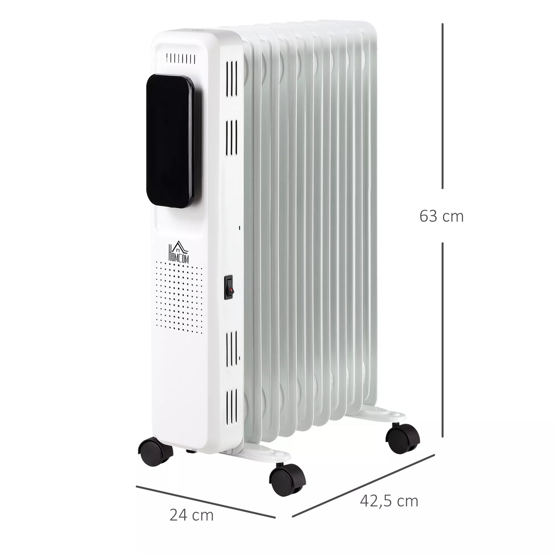 Alyvos šildytuvas, 3 šildymo lygiai, jutiklinis ekranas, 15-35 °C, 2000 W, plienas, baltas, 42,5 x 24 x 63 cm