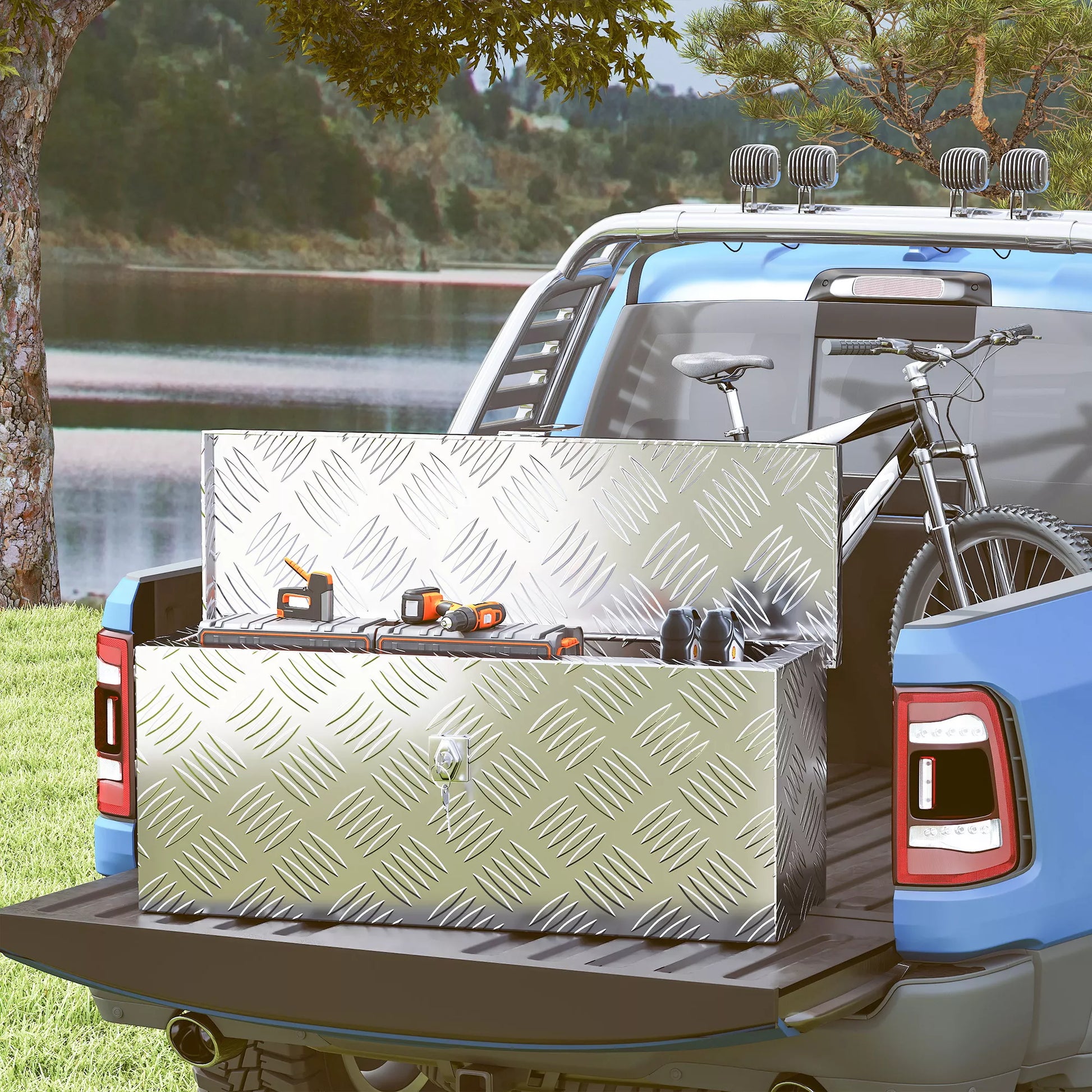 - ✔ Įrankių dėžės pagamintos iš gofruoto aliuminio lakšto, atsparios korozijai