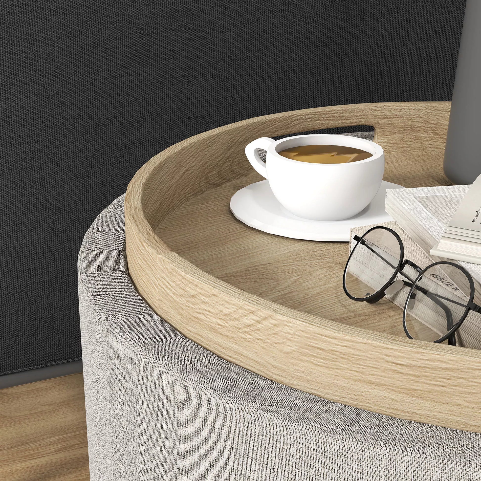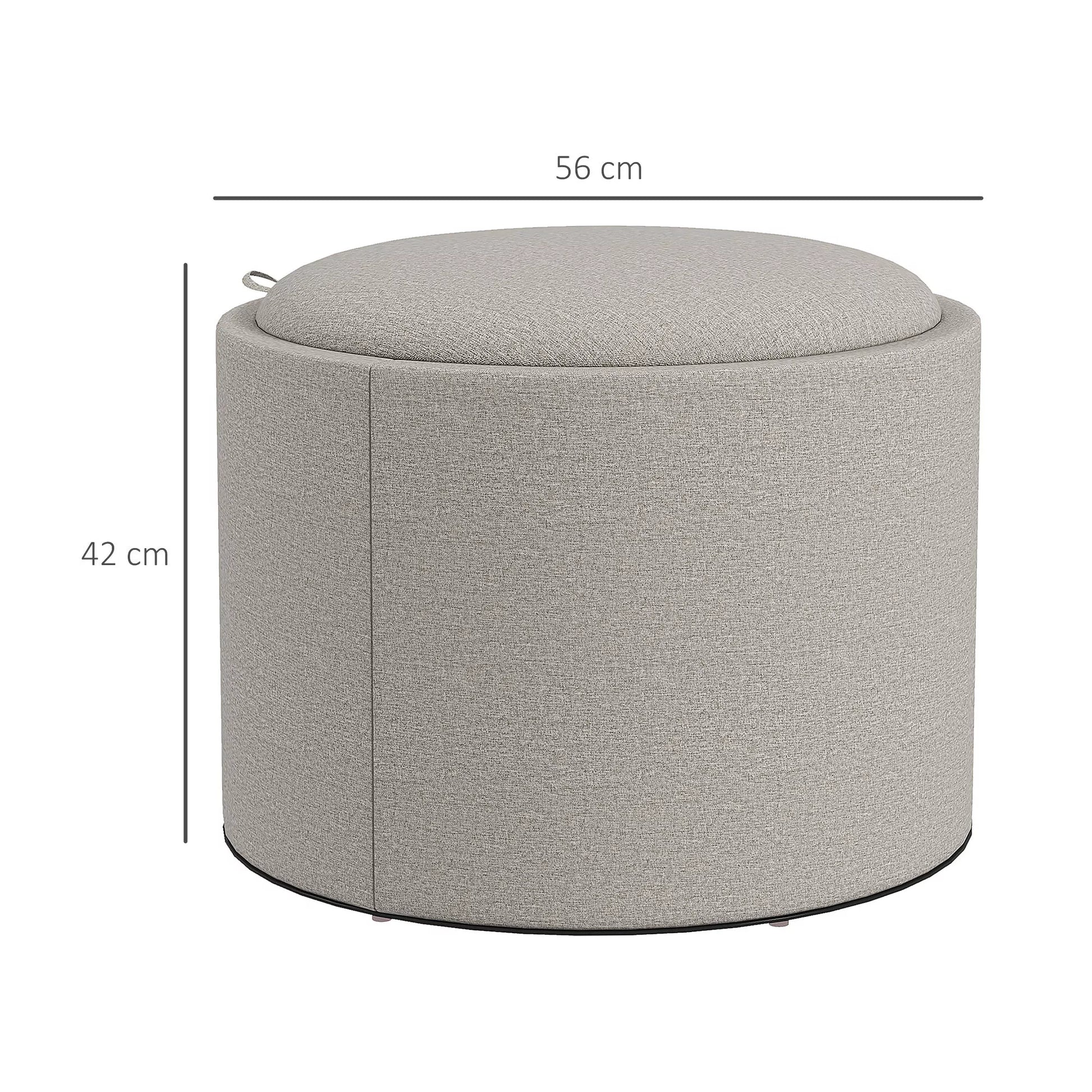 Jei jums reikia papildomos laikymo vietos ir norite namuose sukurti akcentą, šis pufas su laikymo funkcija yra kaip tik jums. Šiuolaikiškas pūpo dizainas su lininės išvaizdos viršutine medžiaga yra stilingas ir suteikia jums ar jūsų svečiams papildomą sėdimą vietą. Pufas turi nuimamą plokštę, kurią galima naudoti kaip padėklą ir kuri suteikia paslėptą laikymo vietą. Su juo jausitės kaip namuose.