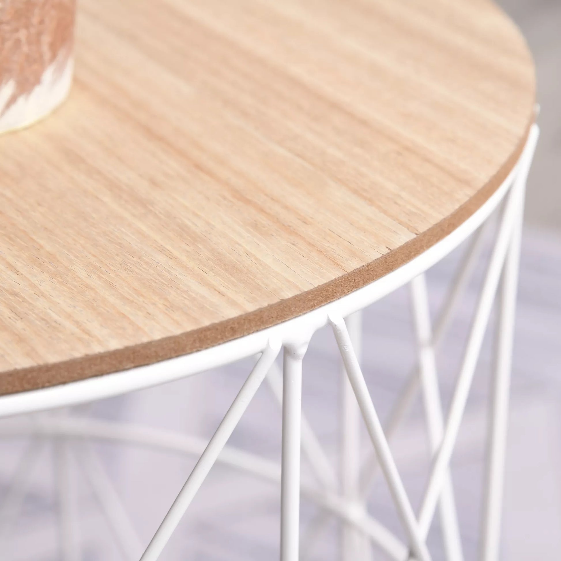 Apvalus 2 vnt. komplekto svetainės staliukas, sukraunamas, su nuimamu dangčiu, kavos staliukas su metaliniu rėmu, svetainei - Natūralus+Baltas