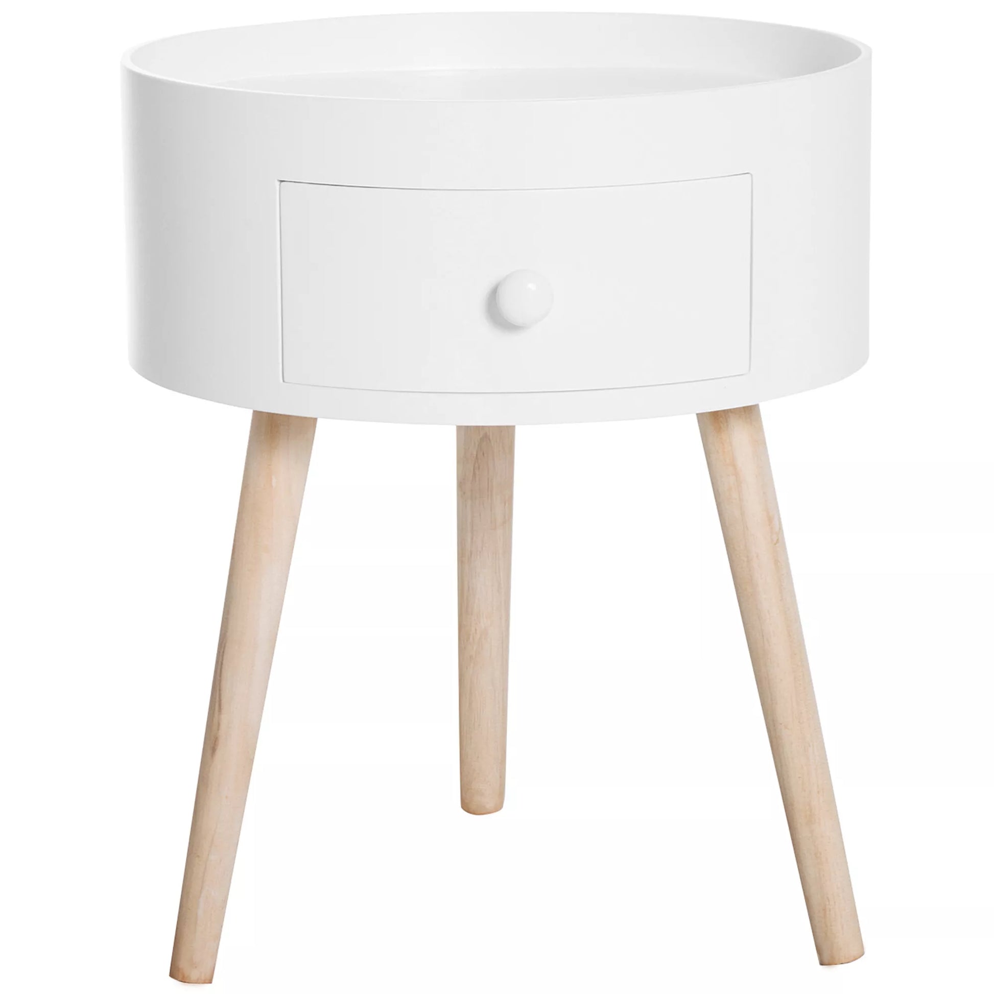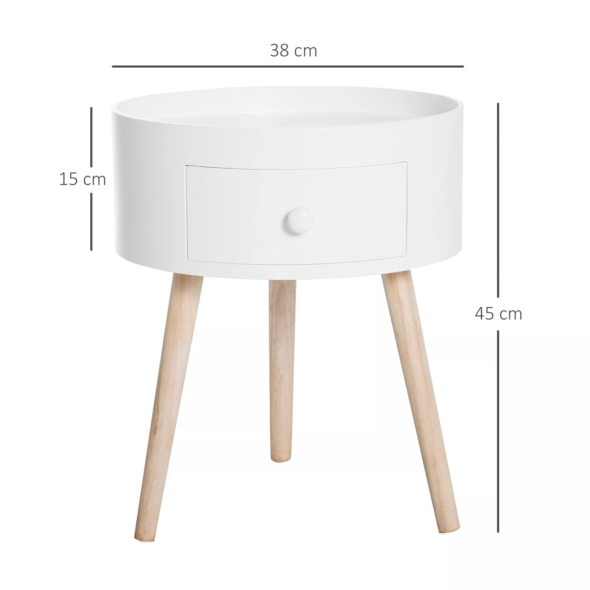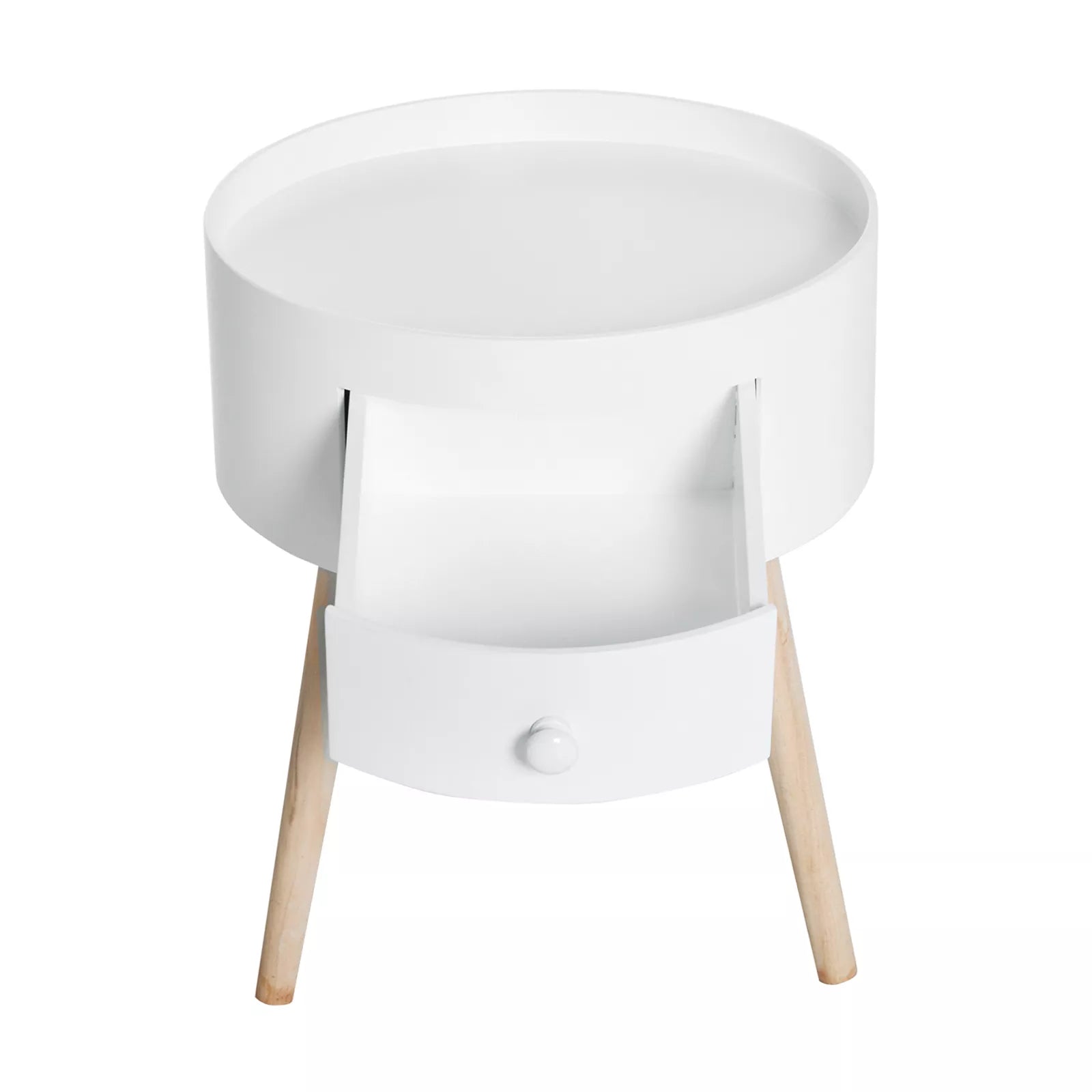 Apvalus kavos staliukas su stalčiumi, skandinaviško dizaino, su apsauginiu krašteliu, medinis, Ø38 x A45 cm, baltas