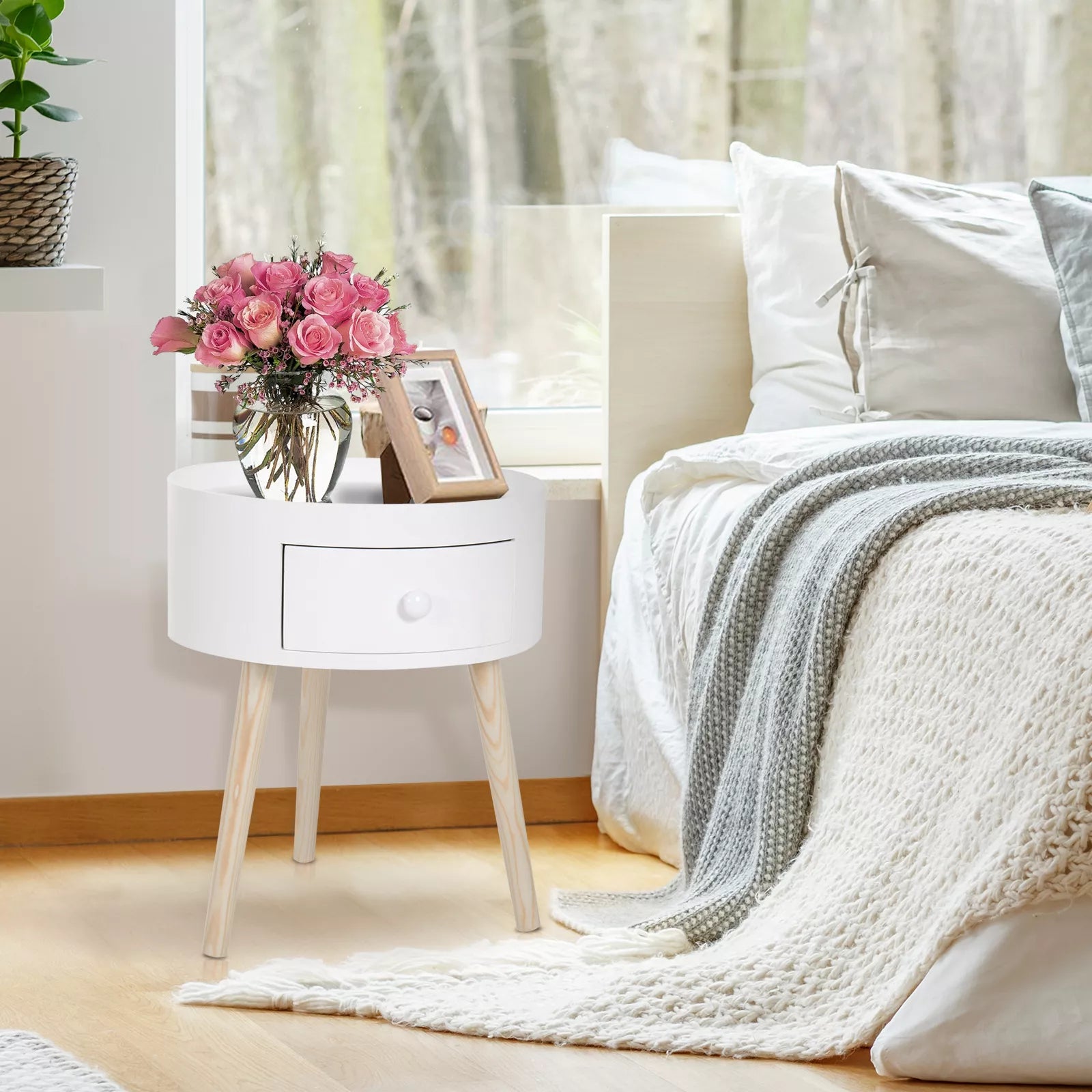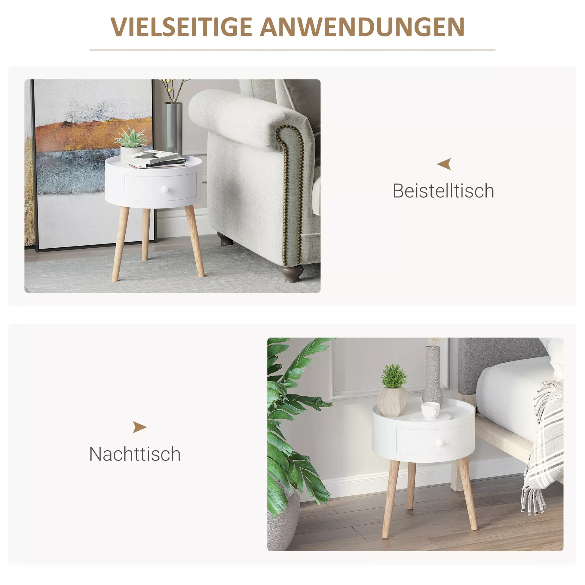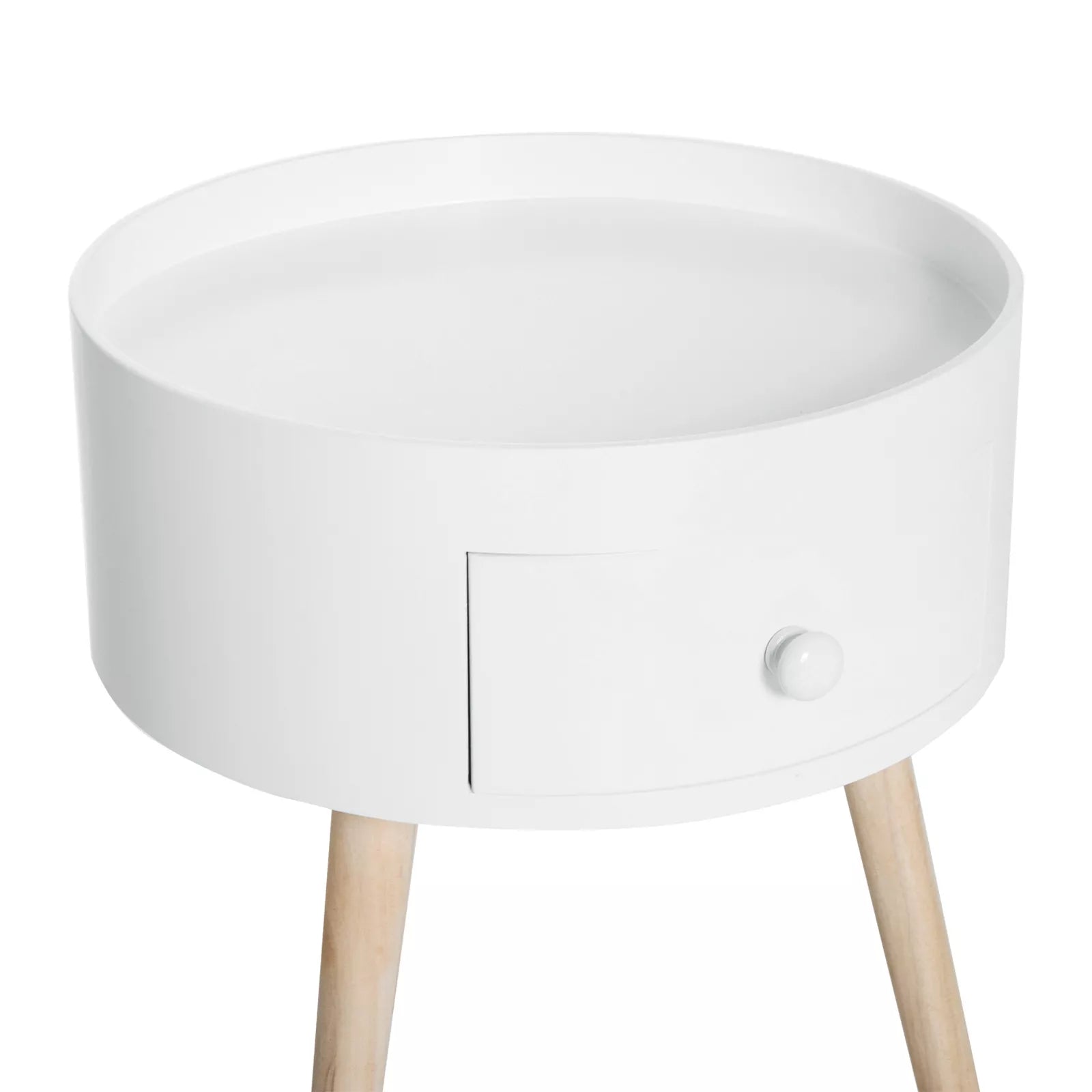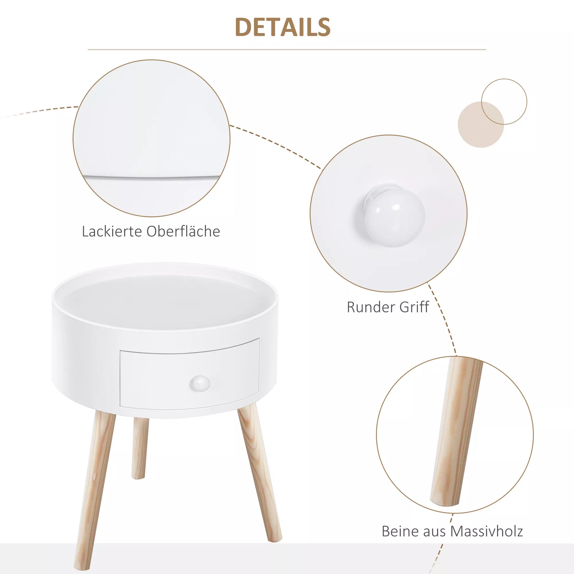Apvalus kavos staliukas su stalčiumi, skandinaviško dizaino, su apsauginiu krašteliu, medinis, Ø38 x A45 cm, baltas