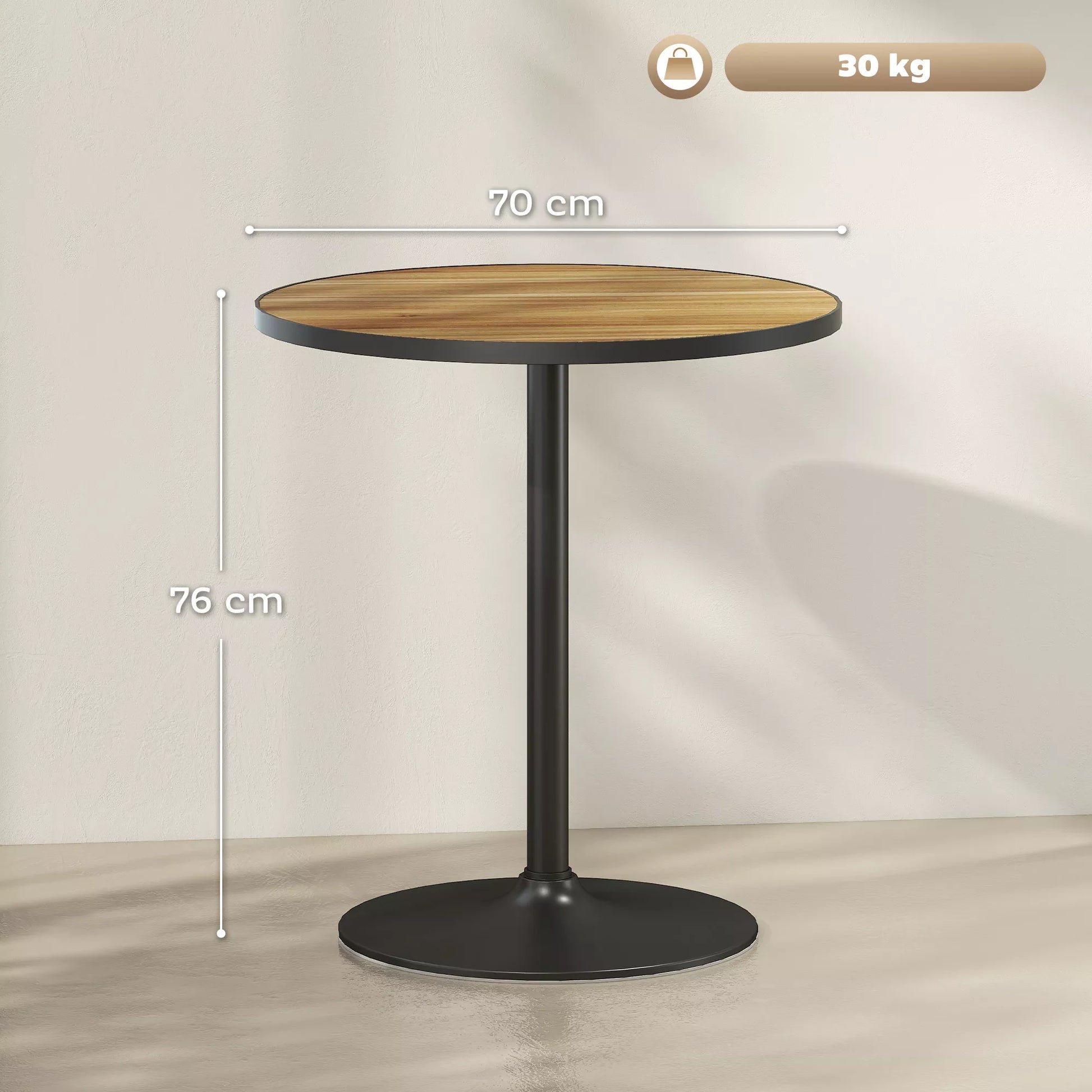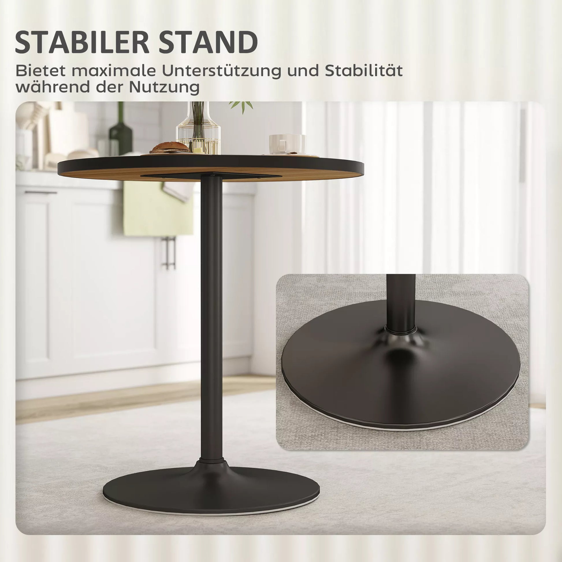 Patirkite naują valgymo patirtį su šiuo valgomojo stalu! Stilingas stalviršis ąžuolo išvaizdos su elegantiška briaunų apdaila padarys jį akcentu mažesnėse patalpose. 2,5 cm storio MDF plokštė ir apvalus metalinis rėmas garantuoja stabilumą, papildytą neslystančių pėdelių. Šis virtuvinis stalas puikiai tinka jūsų namų biurui ar svetainei, kviesdamas nuo dviejų iki keturių žmonių jaukiai papietauti.