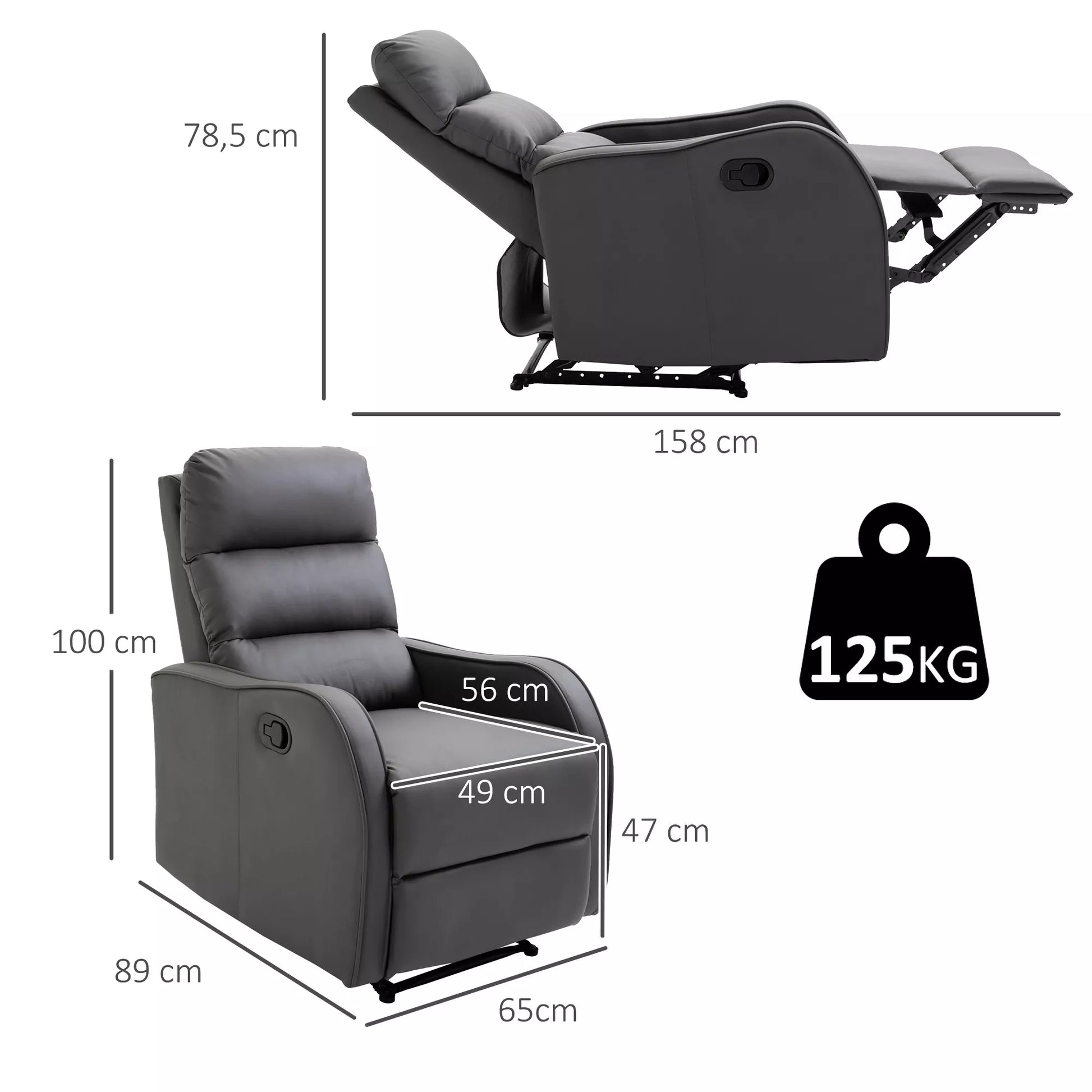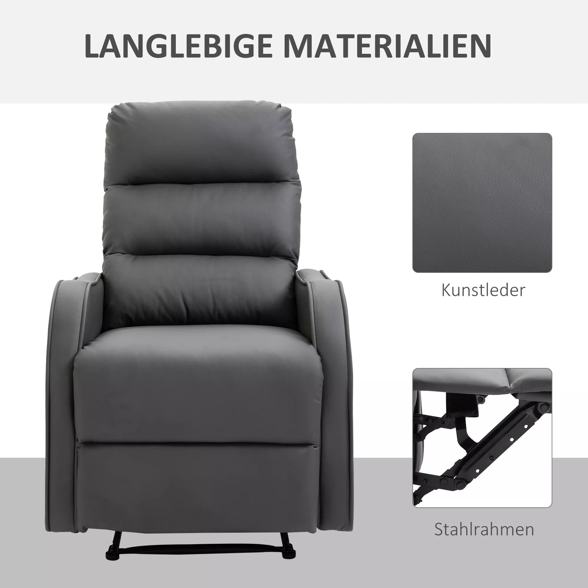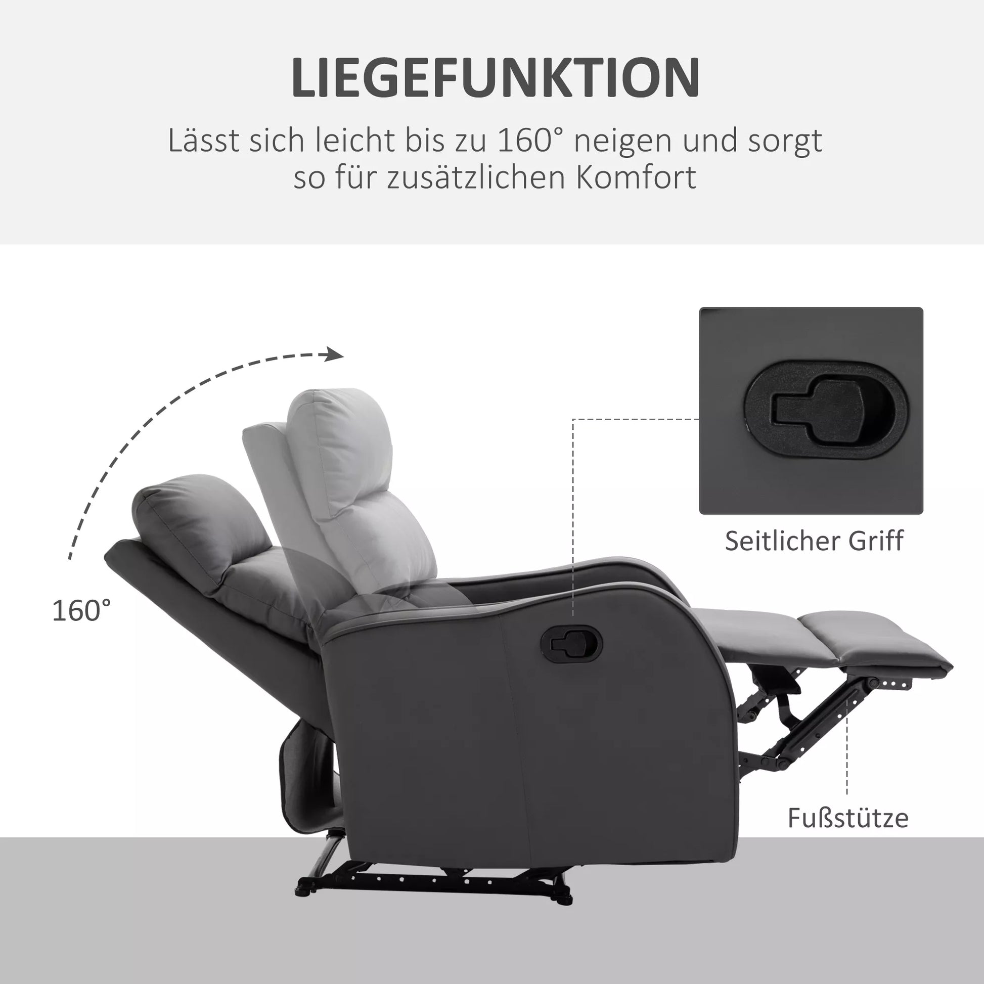 Poilsio krėslas su atlenkiama atrama kojoms, išskleidžiama kojų atrama, dirbtinė oda, tamsiai pilkos spalvos