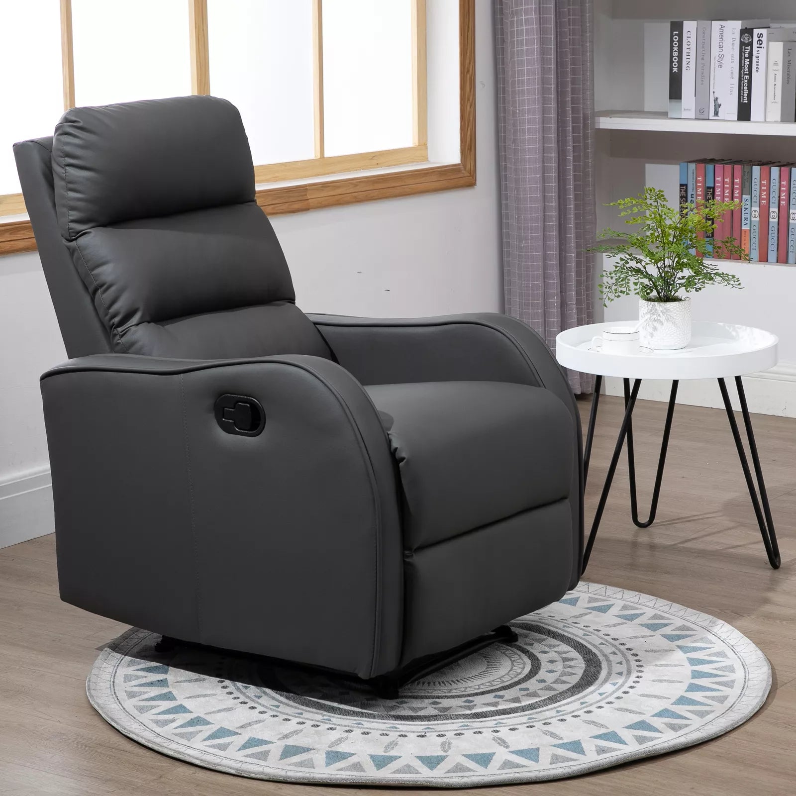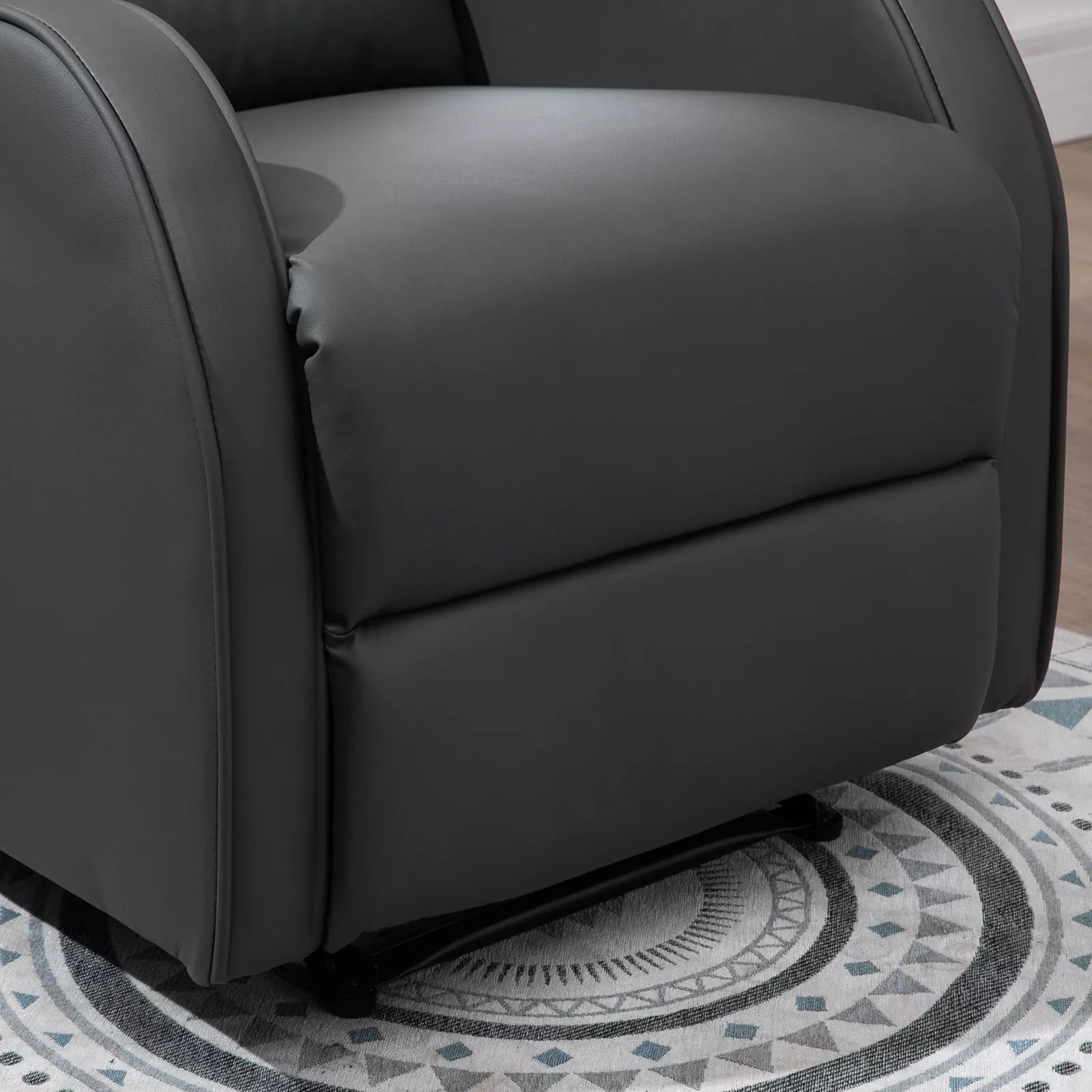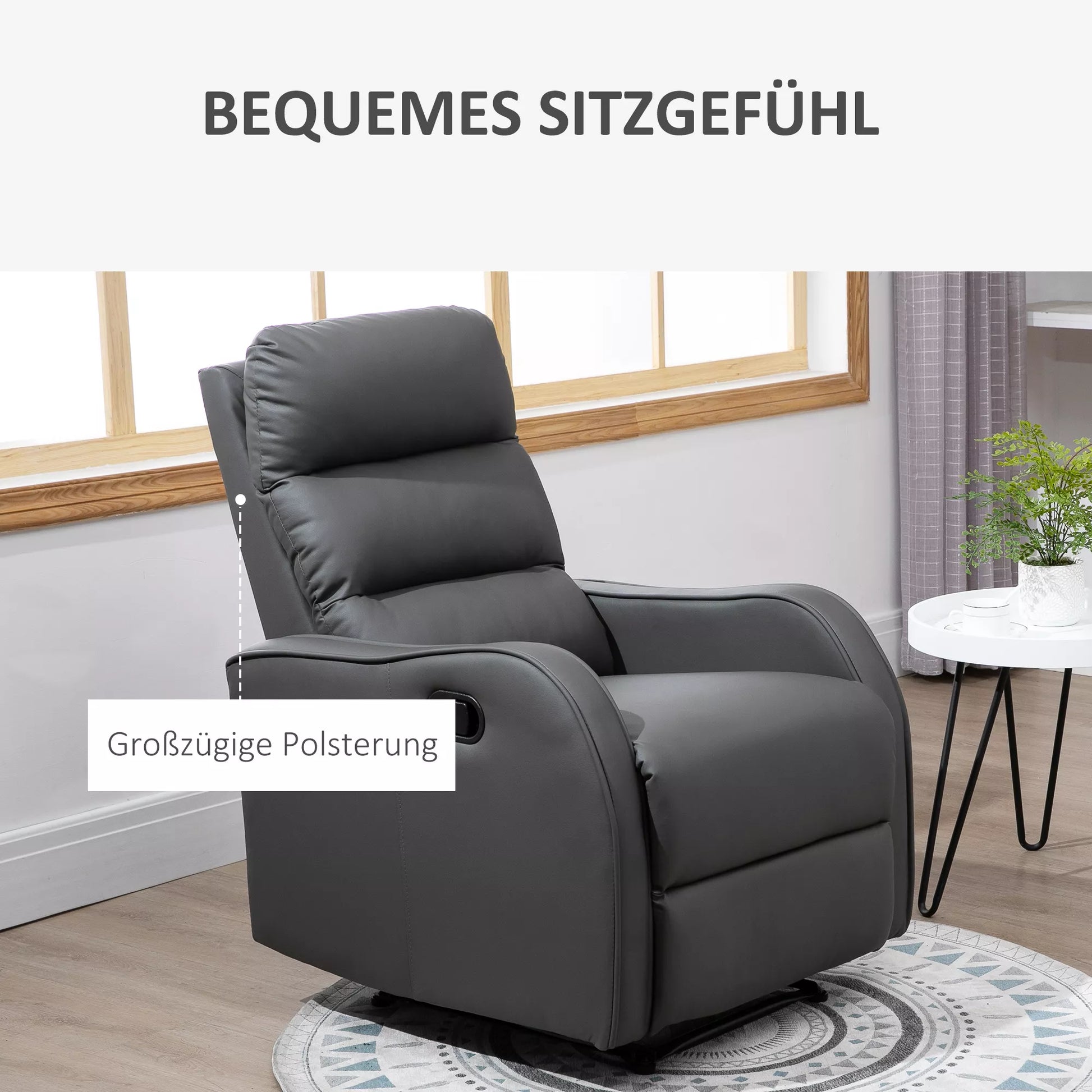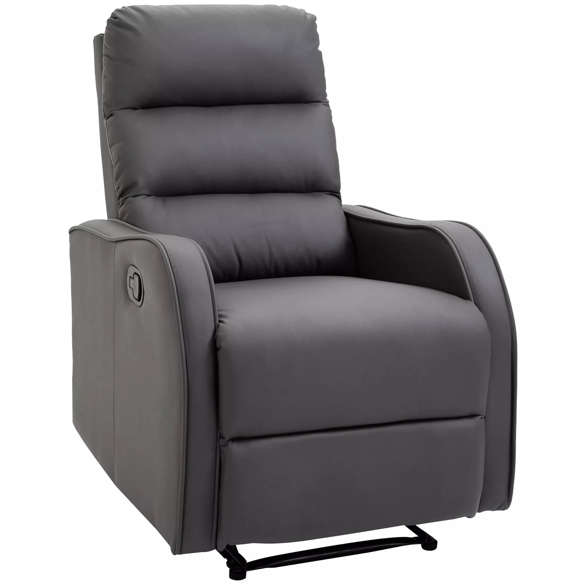 Poilsio krėslas su atlenkiama atrama kojoms, išskleidžiama kojų atrama, dirbtinė oda, tamsiai pilkos spalvos