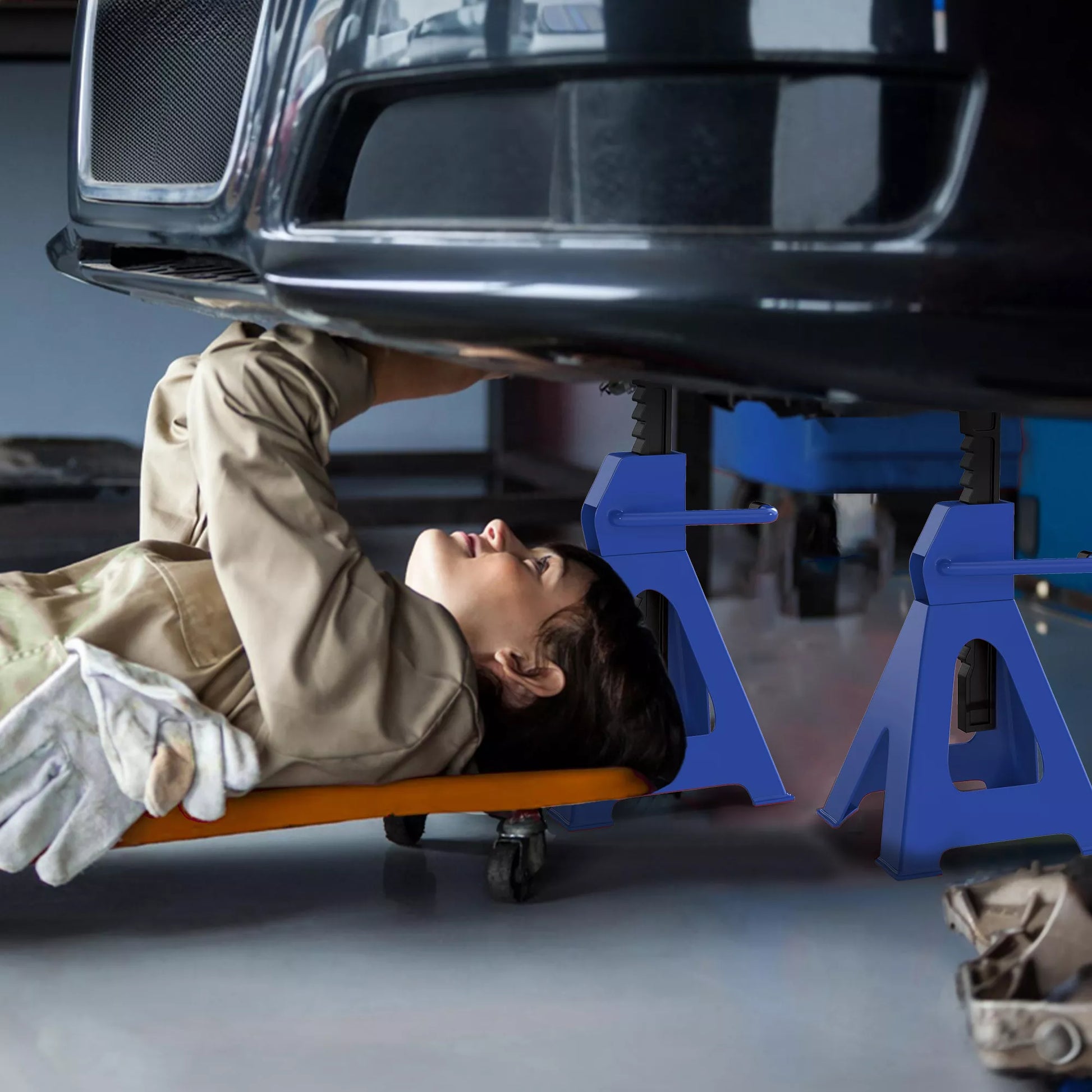 Optimizuokite savo transporto priemonės priežiūrą su šiuo dviejų atraminių stovų komplektu. Pagaminti iš tvirto anglies plieno ir ketaus, šie stovai gali atlaikyti iki 6 tonų. Reguliuojamas reketinis mechanizmas ir didelis atraminis paviršius leidžia juos naudoti įvairiai. Piramidinė bazė su keturiomis plačiomis kojomis užtikrina optimalų stabilumą ir lengvai pakelia jūsų transporto priemonę. Komplektas lengvai sandėliuojamas ir visada paruoštas kitam ratų keitimui ar remontui.