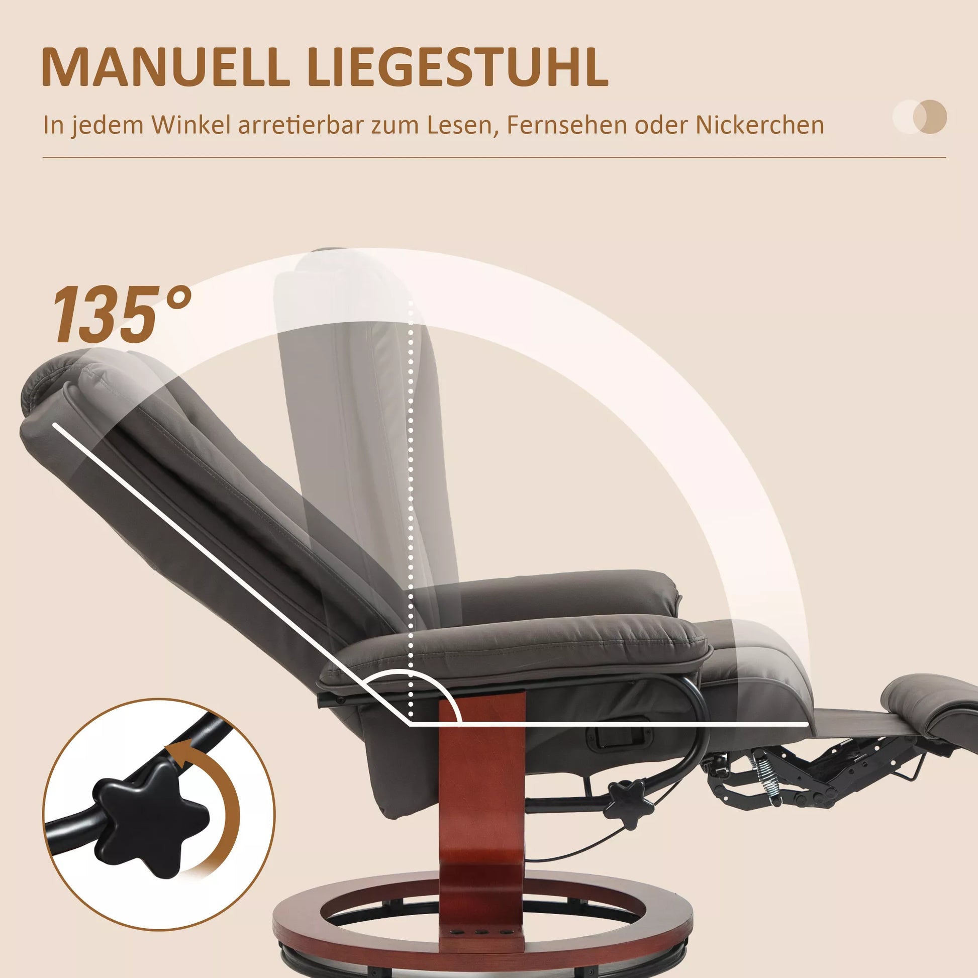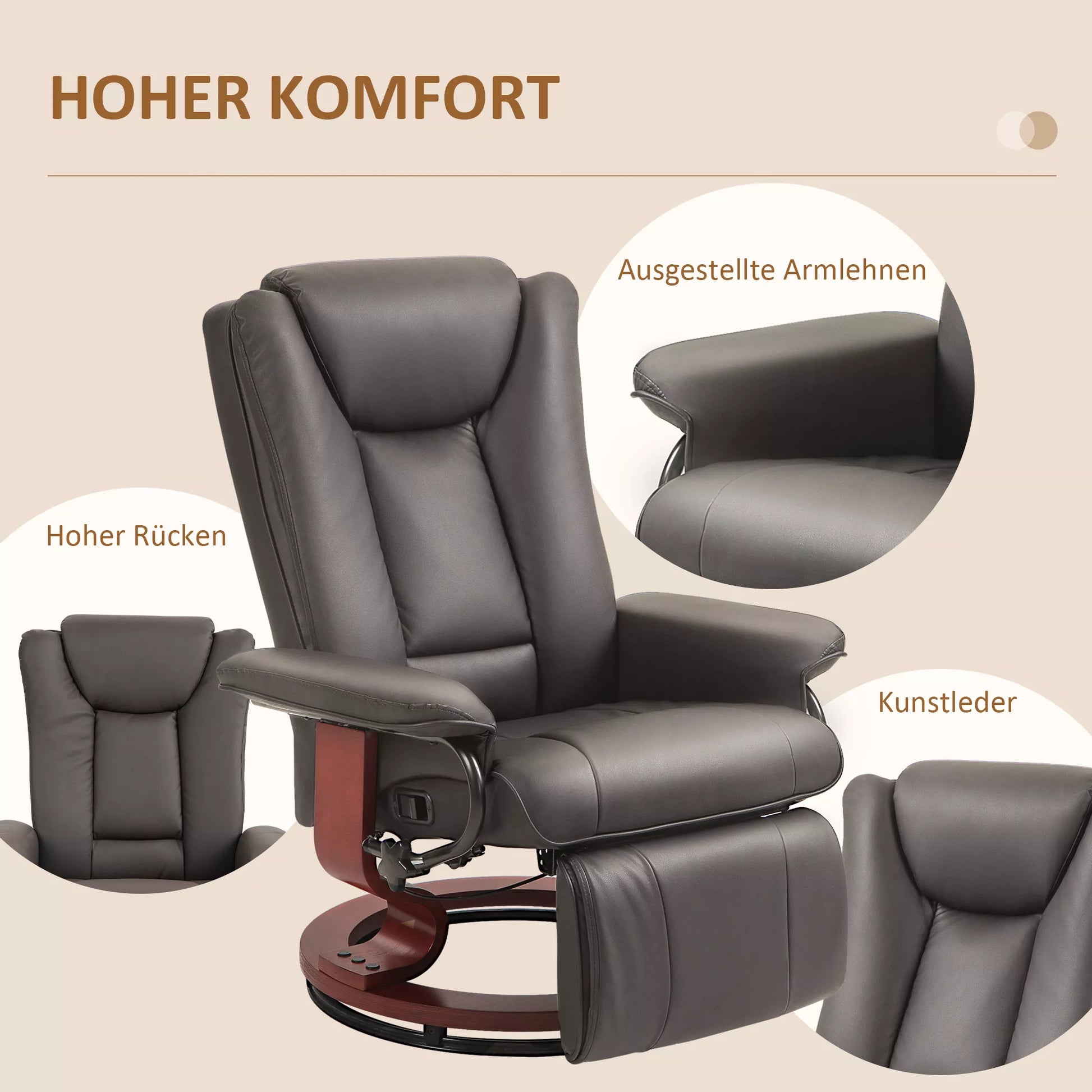 Relaksacinis krėslas su atlošimo funkcija, sukamasis, iki 150 kg, dirbtinės odos apmušalas, plieninis rėmas, rudas