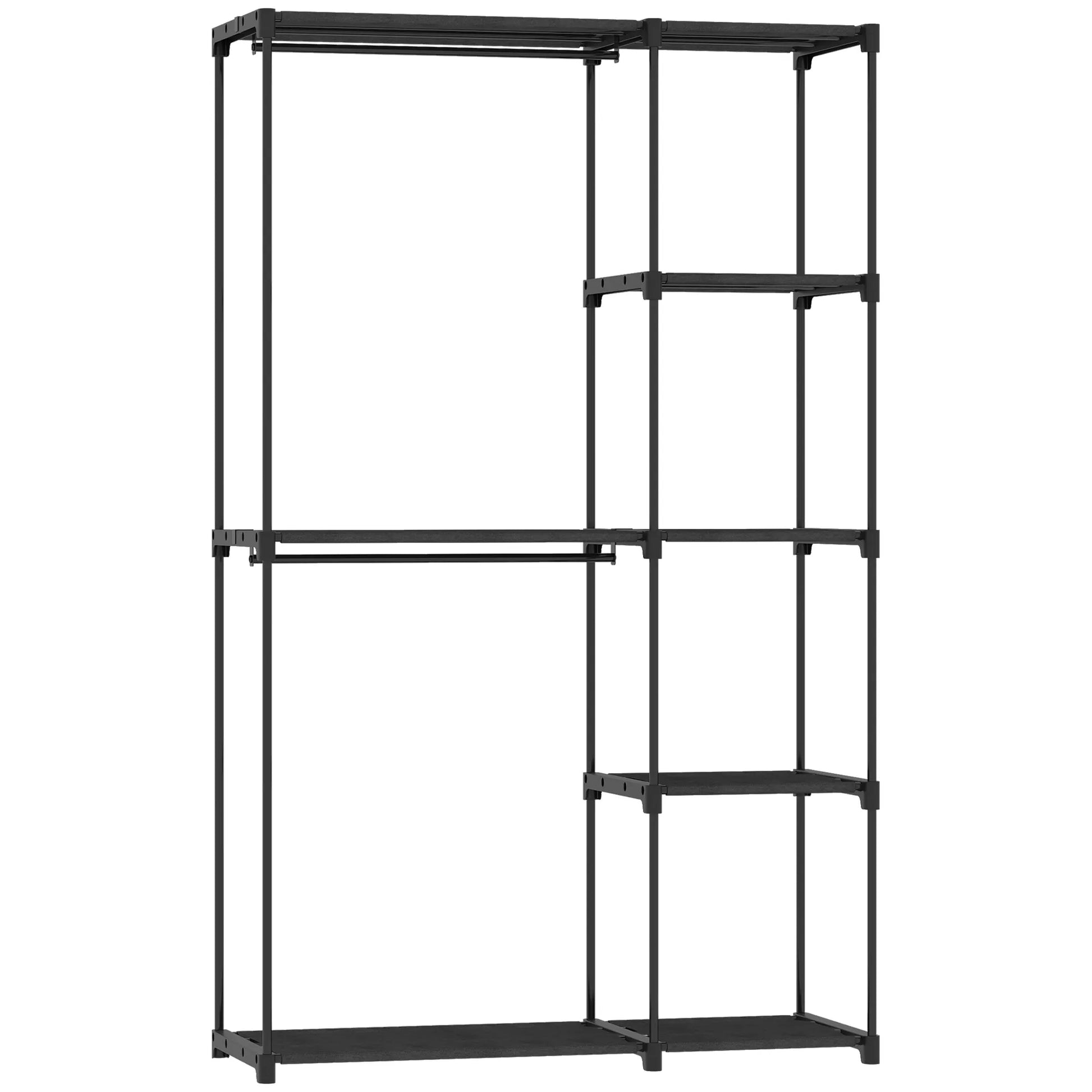 Audinio drabužių spinta su drabužių skersiniu, lentynomis, skirta miegamajam, drabužinei, 111 x 43 x 185 cm, juoda