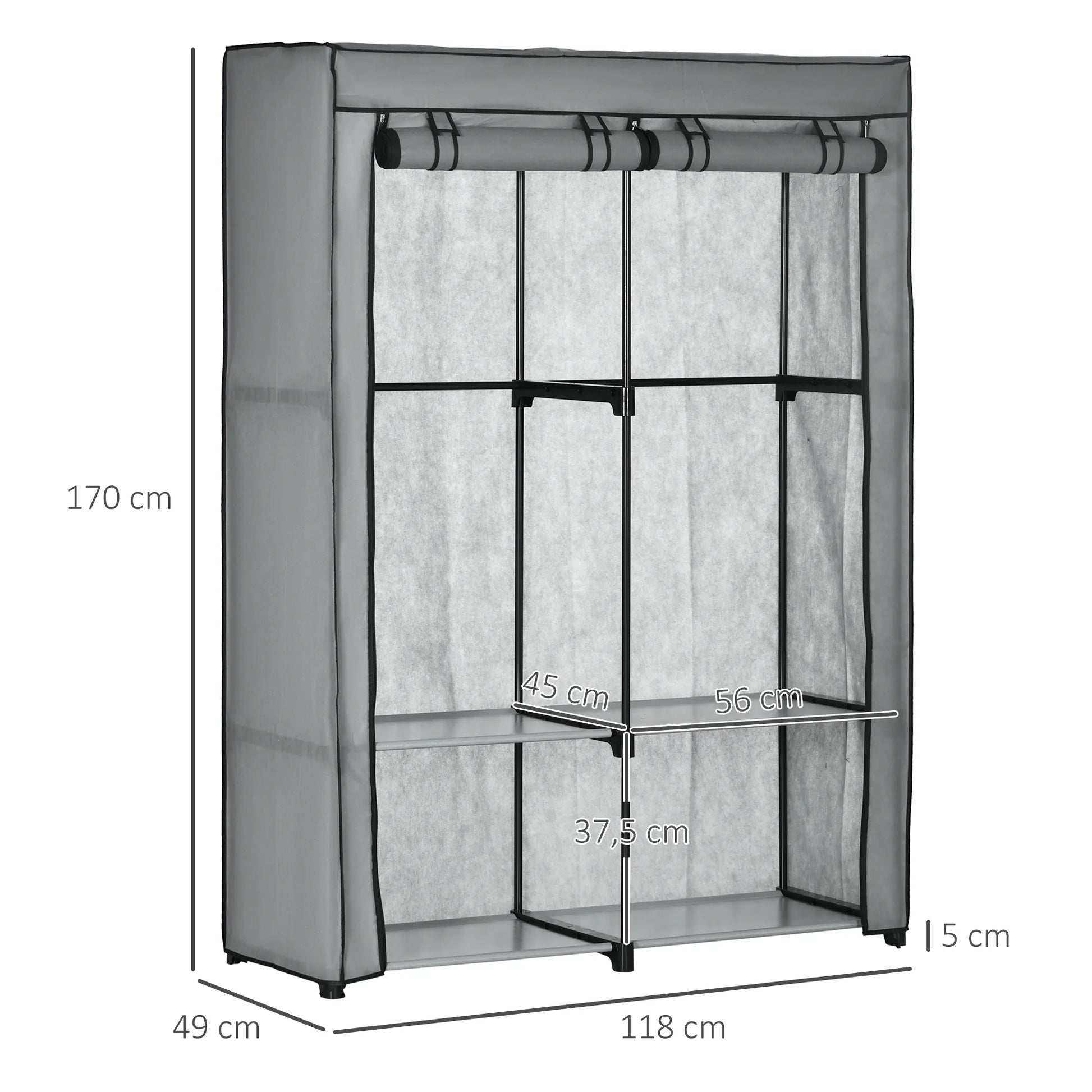 Su šia audinio spinta iš [BrandName] jūsų namuose įsivyraus tvarka. Dėl universalaus dizaino ši spinta idealiai tinka bet kuriam jūsų namų kambariui, kuriame trūksta papildomos laikymo vietos. Joje yra 2 drabužių kabyklos ir 4 lentynos, skirtos tvarkingai laikyti jūsų drabužius, rankšluosčius, patalynę ar krepšius. Neaustinio audinio užvalkalas puikiai apsaugo jūsų daiktus nuo dulkių – tai idealus organizavimo sprendimas!
