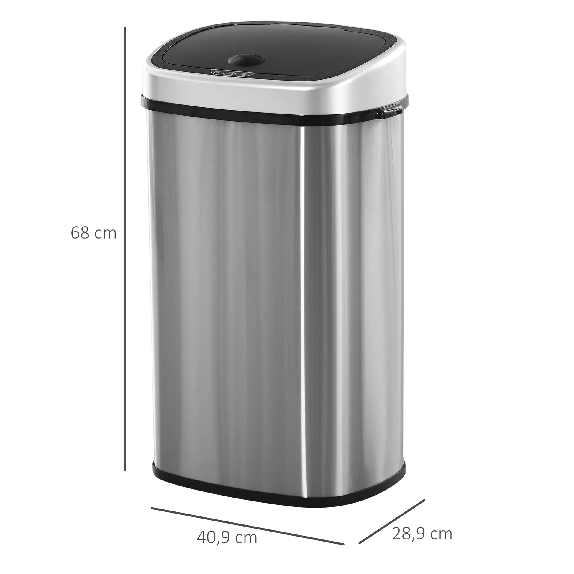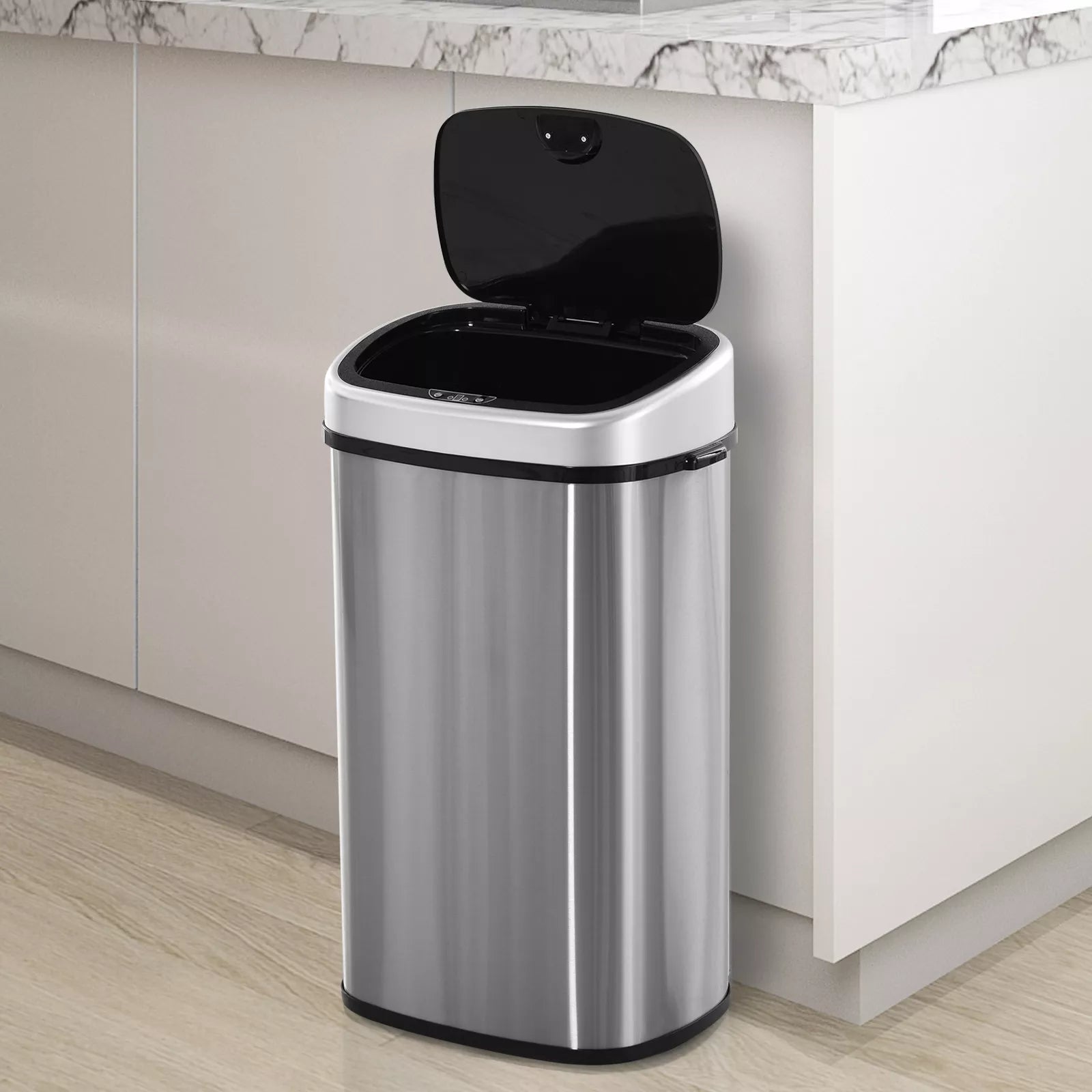 Sensorinė automatinė šiukšliadėžė su judesio jutikliu, 58L, atspari vandeniui, pagaminta iš nerūdijančio plieno, skirta virtuvei, biurui, miegamajam, sidabrinė