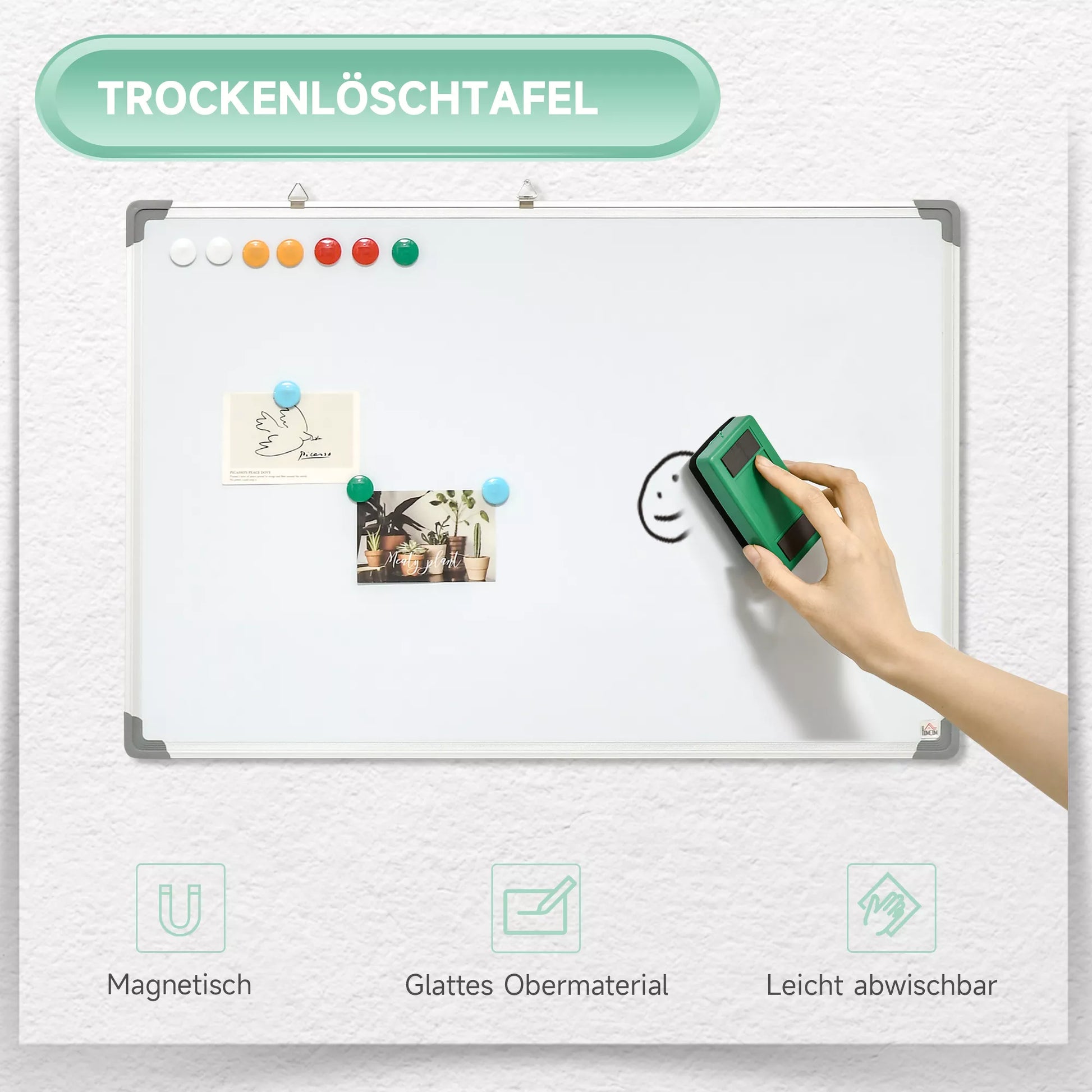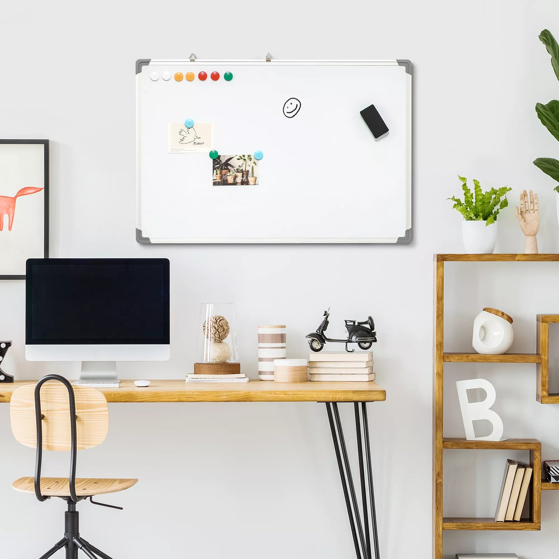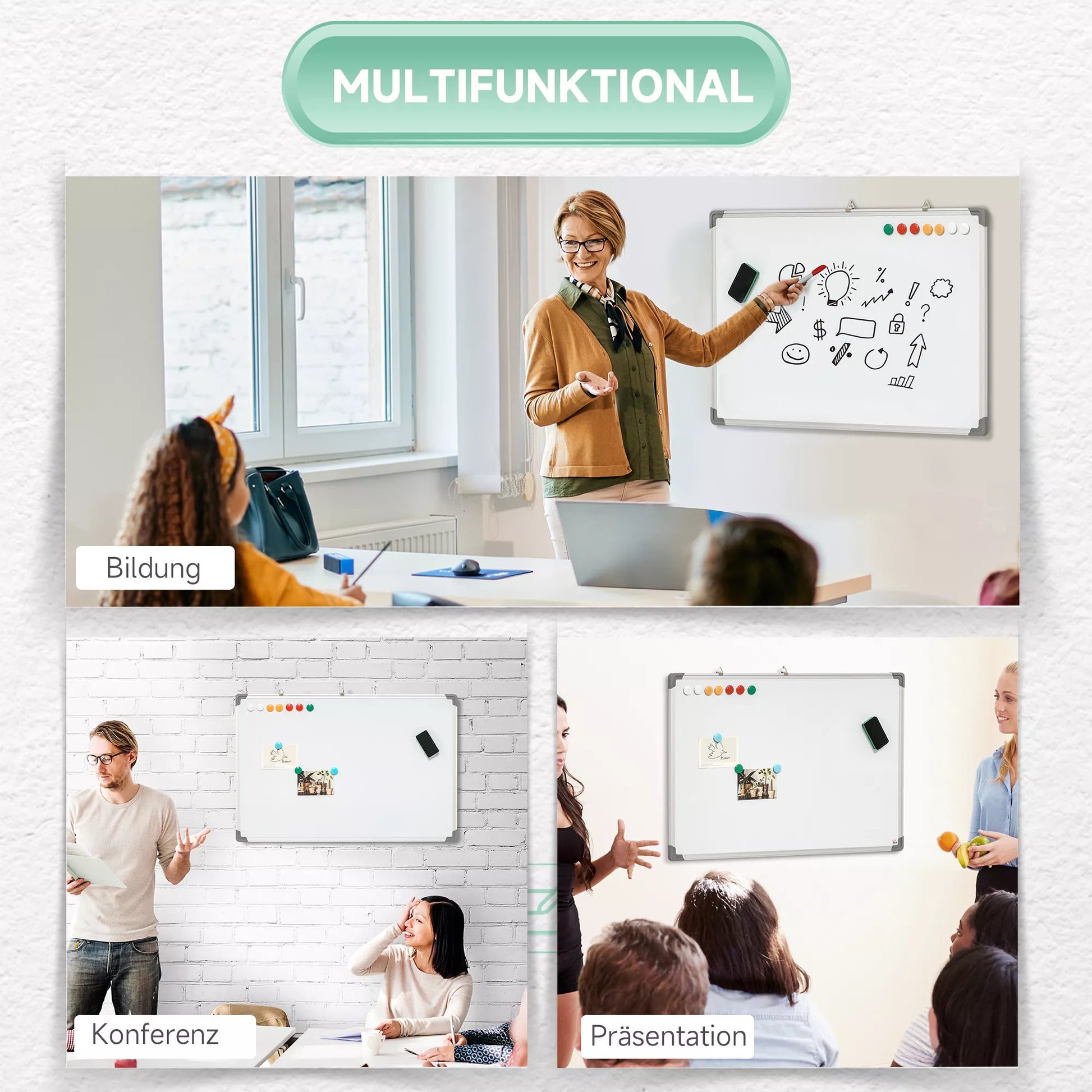 Balta lenta, magnetinė lenta, užrašų lenta, su priedais, 4 žymekliai, 1 kempinė, 10 magnetų, Balta + Sidabrinė