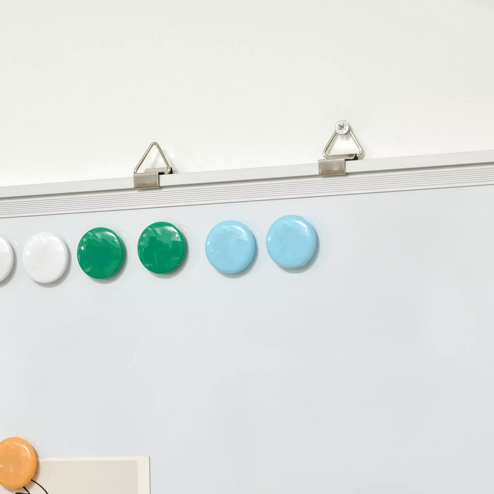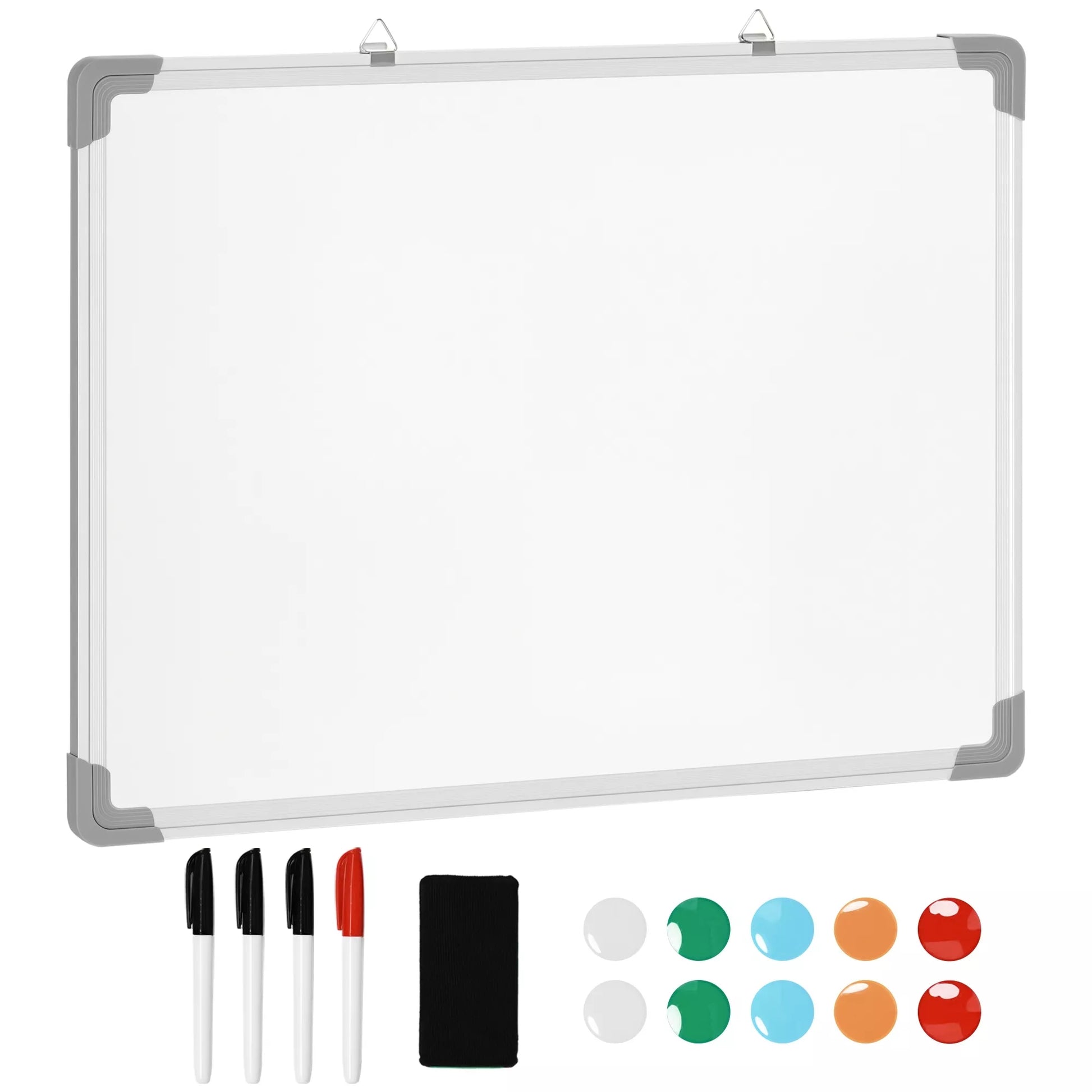 Balta lenta su magnetais, lengvai nuvaloma, su 4 žymekliais, 10 magnetais, 1 trintuku, 60 x 1,8 x 45 cm