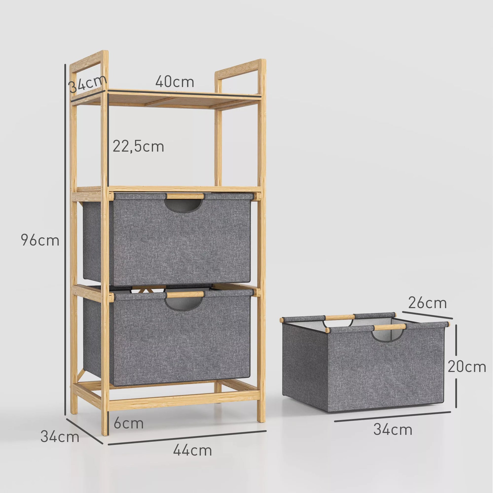 Tvarkingai susitvarkykite skalbinius ir palaikykite tvarką savo namuose su šia skalbinių lentyna. Ji turi du audinio krepšius, skirtus lengvai atskirti šviesius ir tamsius drabužius, kiekvienas yra 17,7 L talpos. Du lentynų lygiai suteikia papildomos vietos buitiniams daiktams. Nuimamos talpyklos palengvina priežiūrą. Dažytas bambuko rėmas paverčia lentyną elegantišku baldu bet kuriame miegamajame, vonios kambaryje ar skalbykloje.