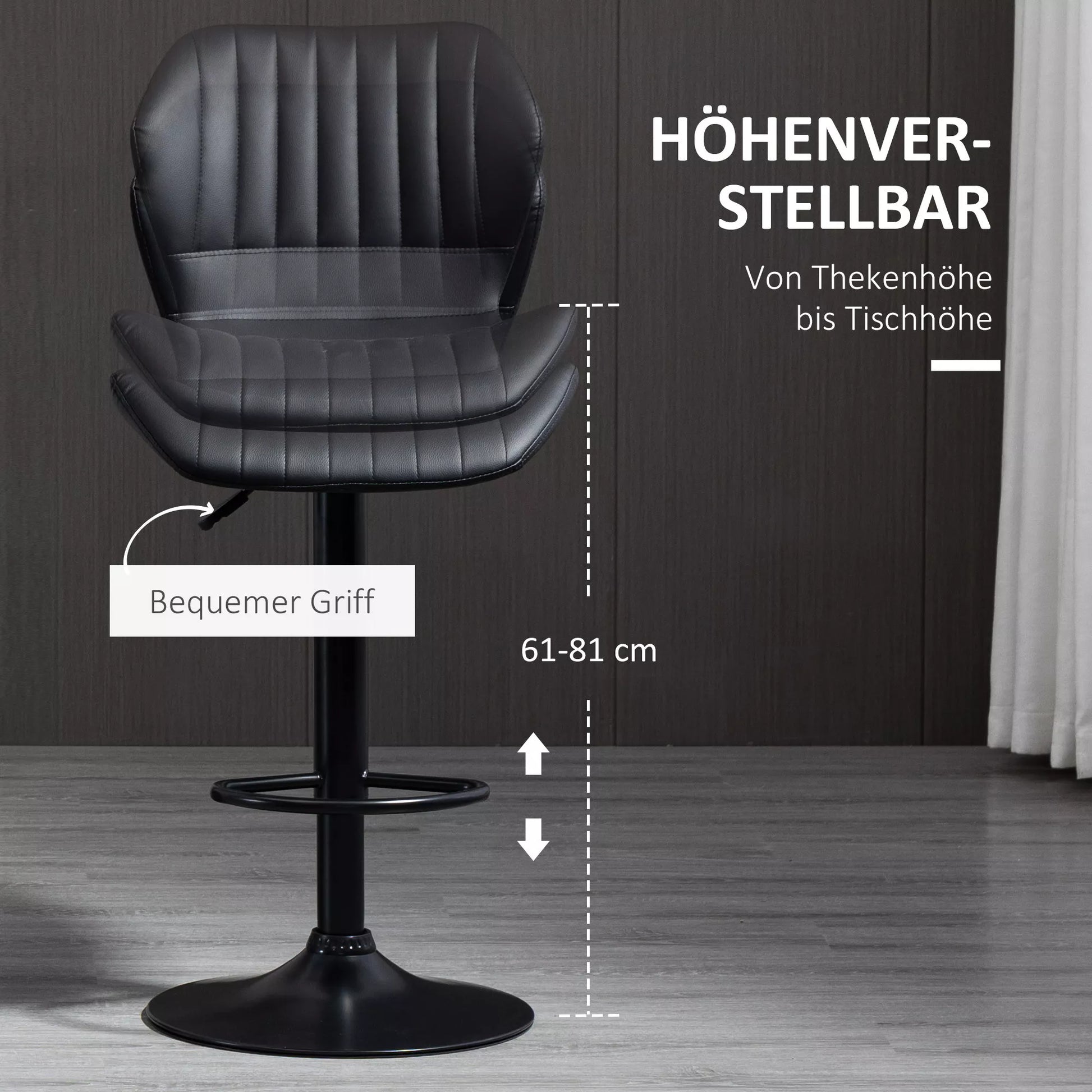- ✔ Reguliuojamas sėdynės aukštis nuo 61 cm iki 81 cm, idealiai tinka įprastoms stalviršių ir stalų aukščiui