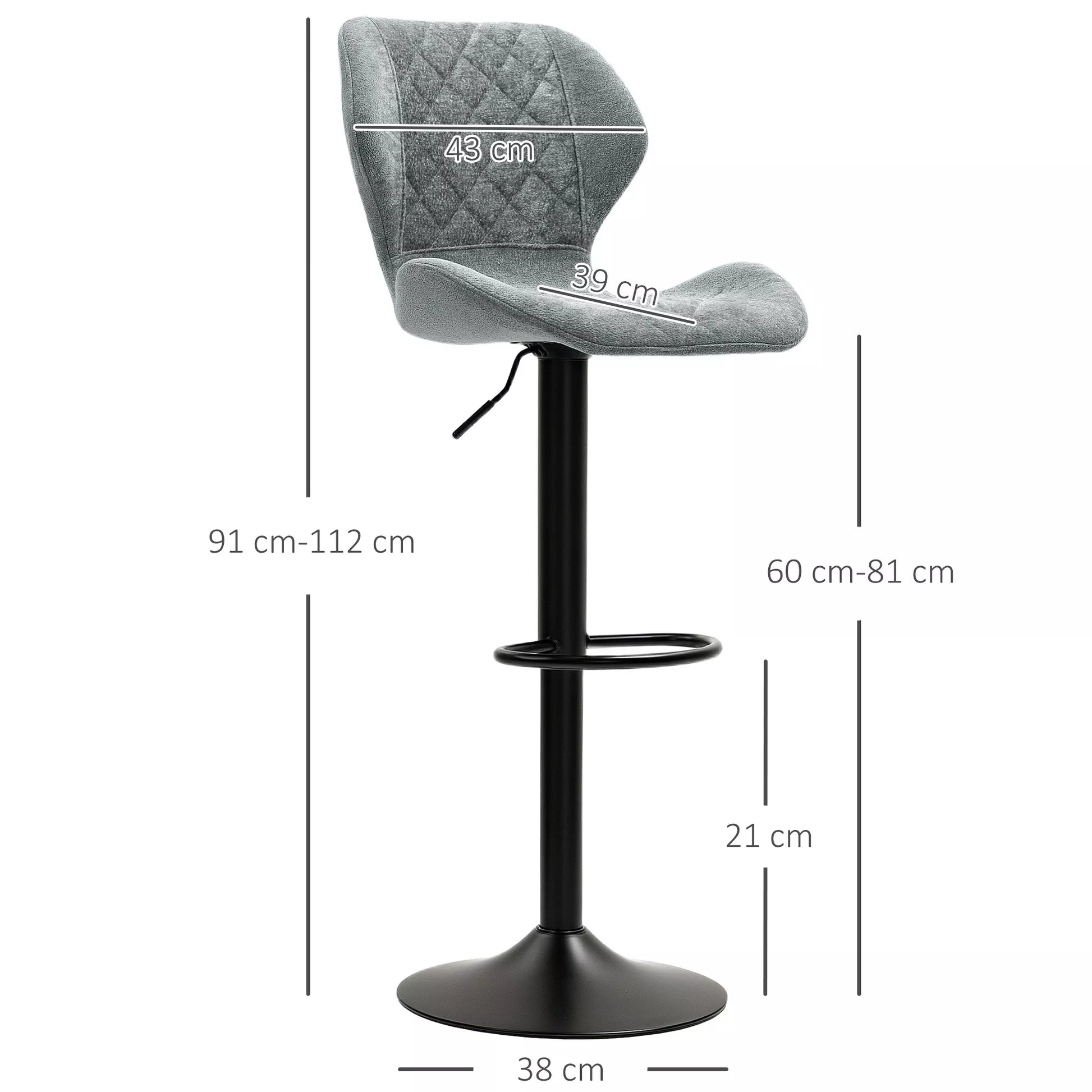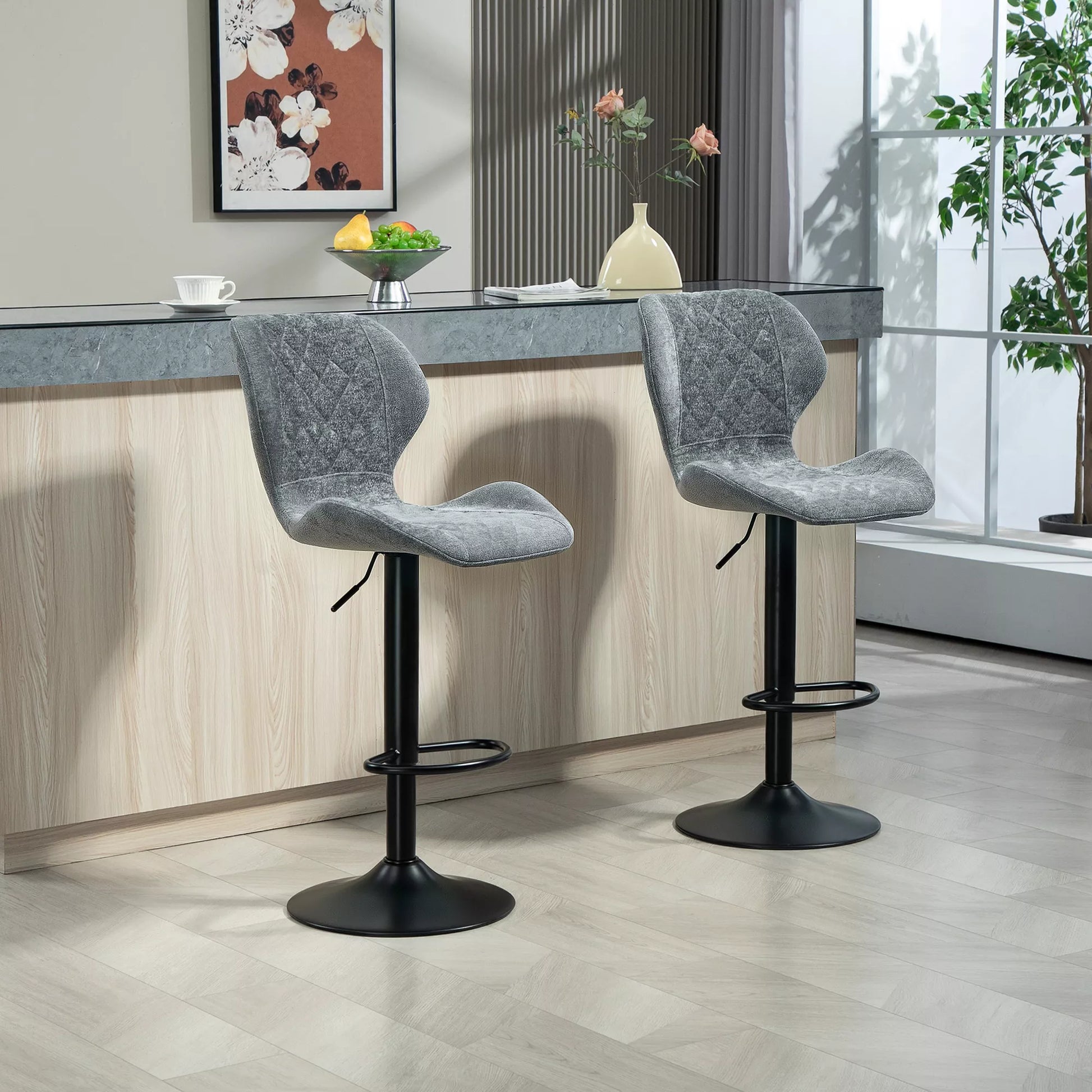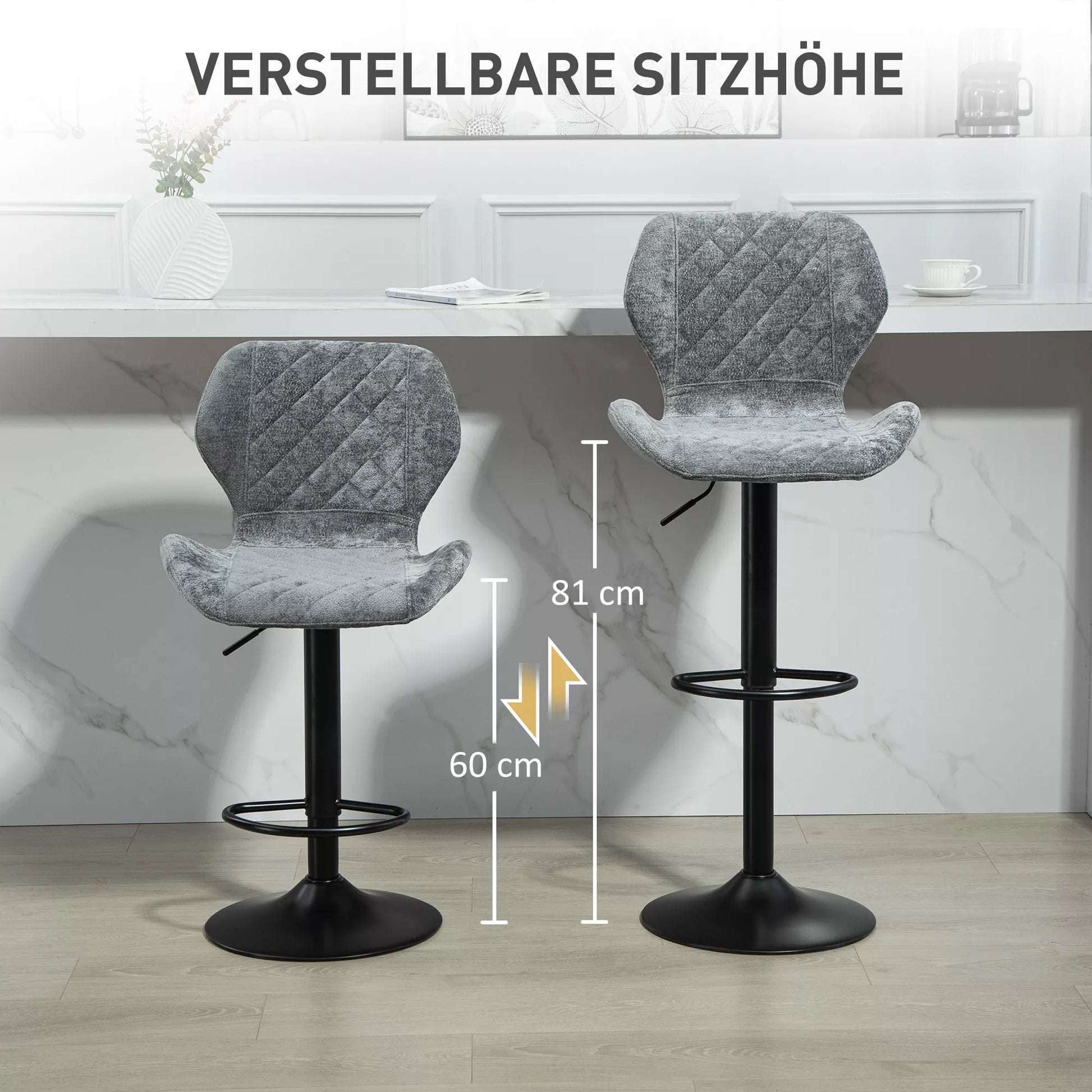 Baro kėdės 2 vnt. komplektas, aukščio reguliuojamos virtuvės kėdutės su atlošu, dujiniu keltuvu, atrama kojoms, pasukamos, pilkos
