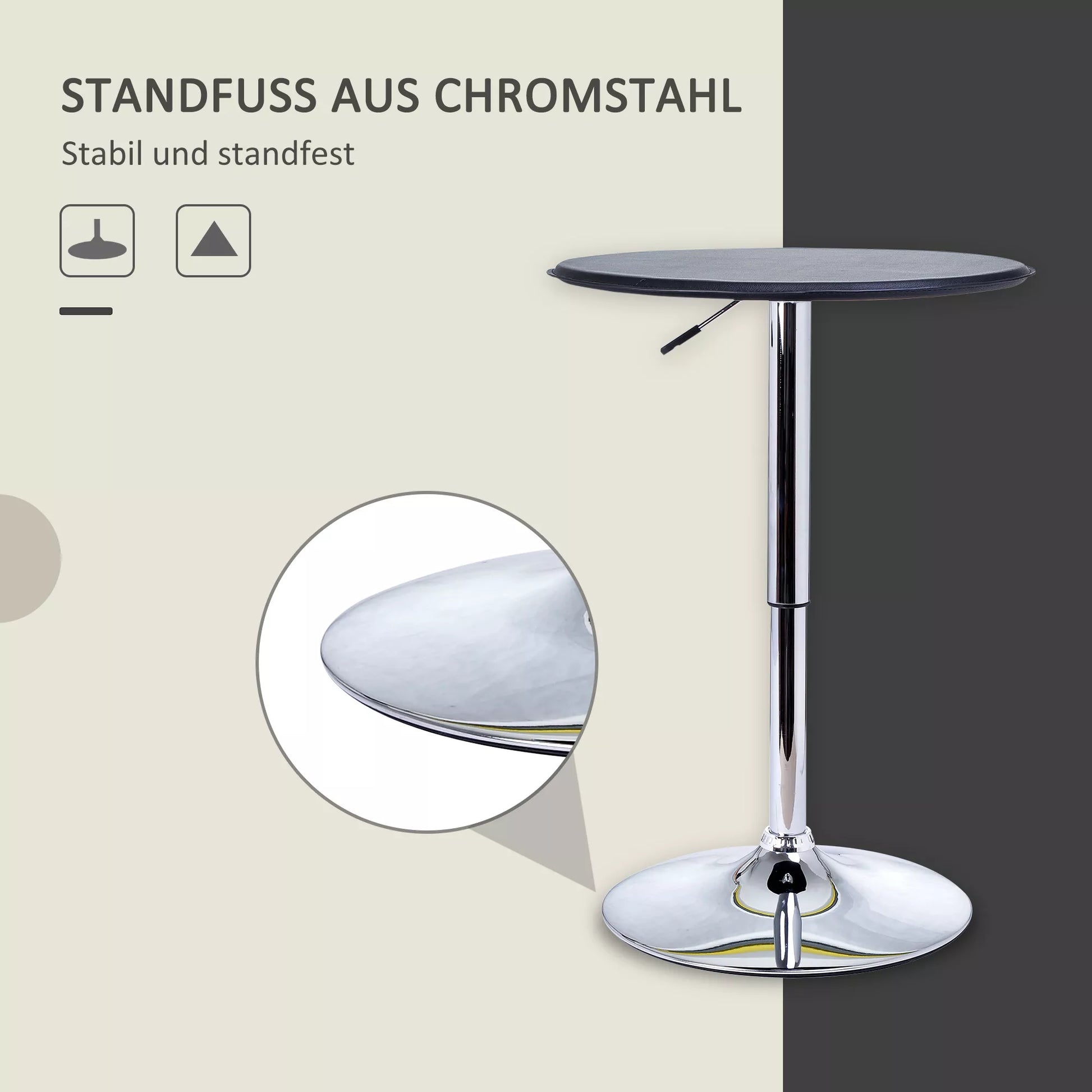 Šis aukštas stalas iš yra išskirtinai pagamintas, kad pabrėžtų Jūsų valgomojo, virtuvės, baro ar terasos eleganciją. Apvalus medinis stalviršis padengtas stilinga dirbtinės odos apdaila, kuri yra atspari vandeniui ir lengvai valoma, suteikdama modernumo ir klasės pojūtį. Naudojant paprastą dujinę pakėlimo sistemą, šio stalo aukštį galima reguliuoti nuo 67 iki 73 cm, todėl jis tinka tiek sėdintiems, tiek stovintiems svečiams, atsižvelgiant į situaciją ar aplinką.