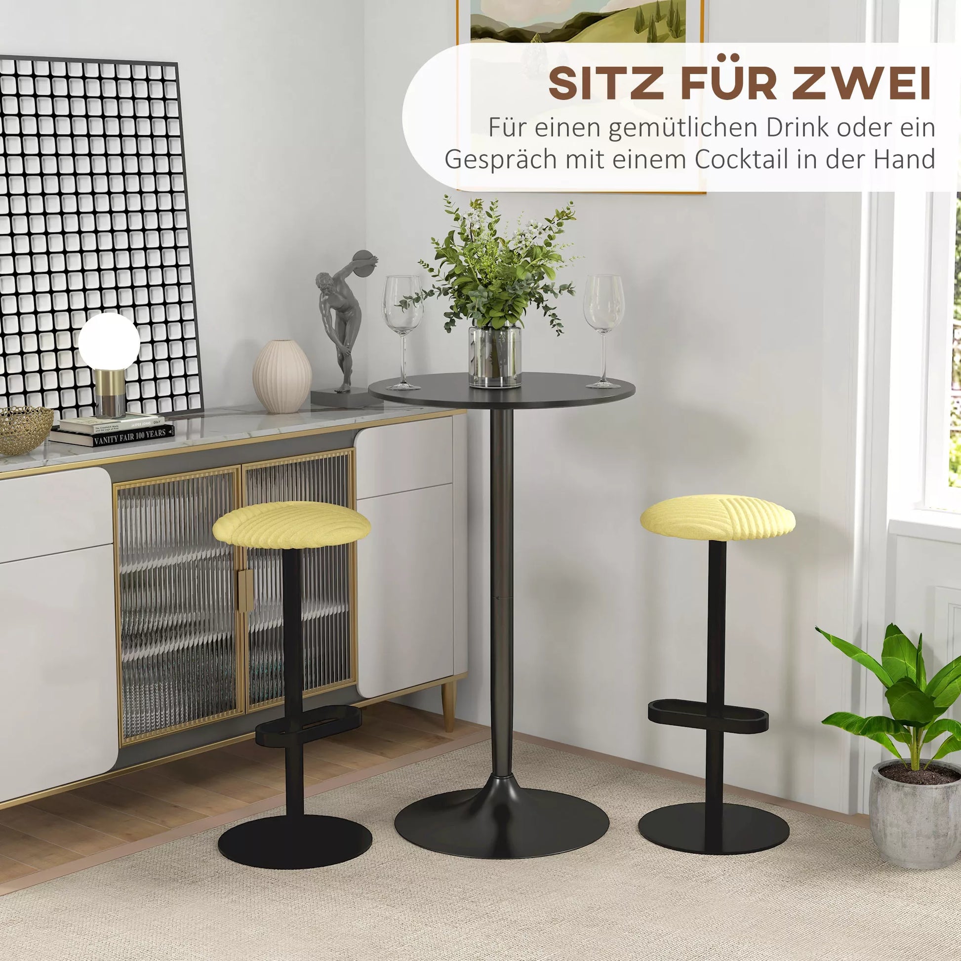 Šis baro stalas jūsų malonumo akimirkoms suteiks tiek atsipalaidavimo ir stiliaus, kiek norite. Elegantiška, apvali forma ir dažytas stalviršis suteikia jam klasikinę išvaizdą. Milteliniu būdu dengtas plieninis rėmas užtikrina stabilumą ir atramą, o neslystantys grindų apsaugai suteikia papildomą sukibimą. Puikiai tinka ruošti gėrimus svečiams arba mėgautis rytine kava ar vakariene su partneriu.