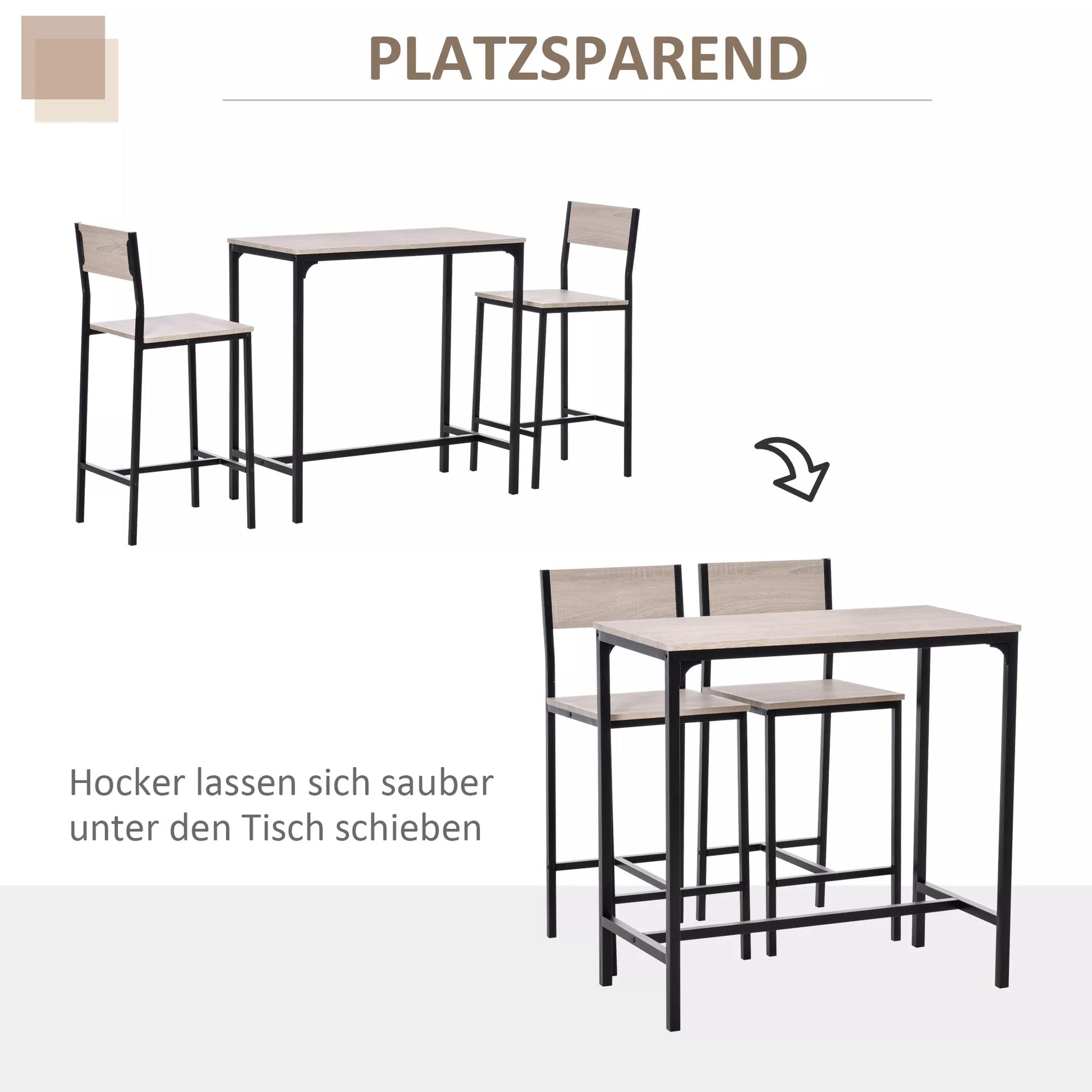 Baro stalo ir kėdžių komplektas, valgomojo stalas su 2 kėdėmis ir atlošais, virtuvės stalas, natūrali spalva + juoda