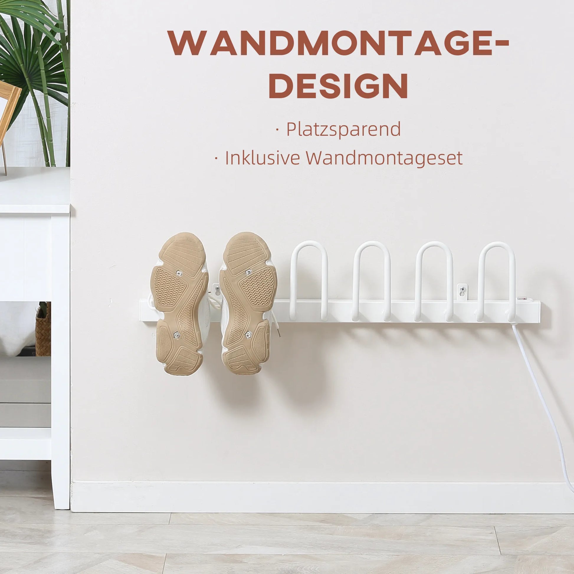 Batų džiovintuvas, elektrinis, temperatūra iki 55 °C, montuojamas ant sienos, plieninis, baltas, 76 x 13 x 17 cm