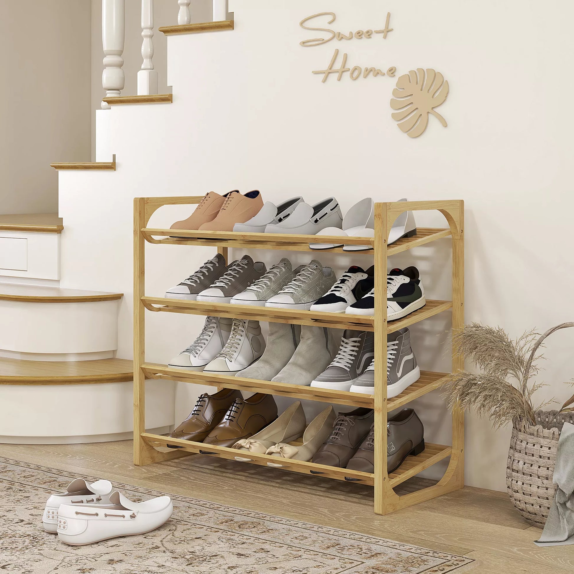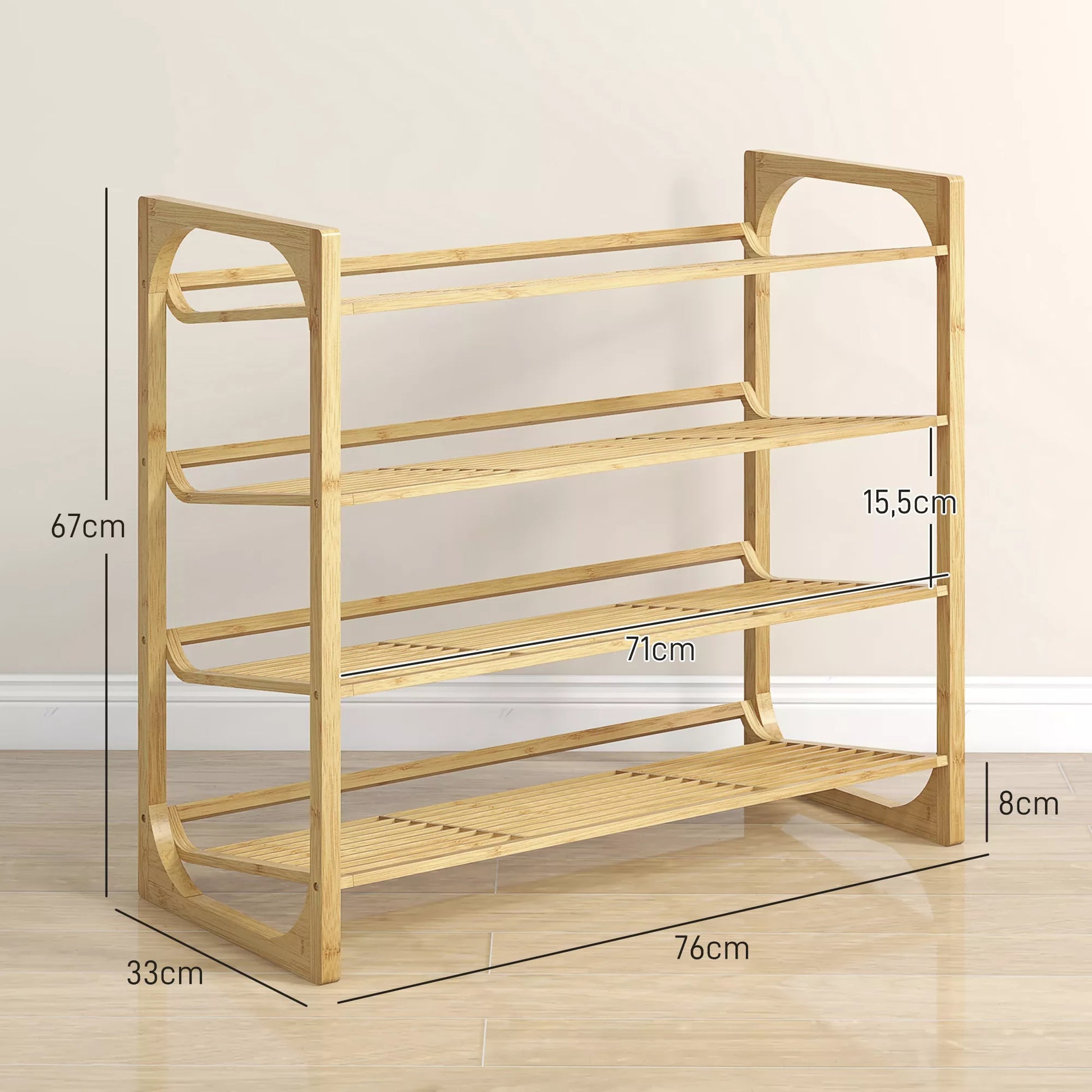 Batų lentyna iš bambuko, 15,5 cm lentynos aukštis, vėdinama skersinių konstrukcija, 76 x 33 x 67 cm, natūralaus medžio efektas