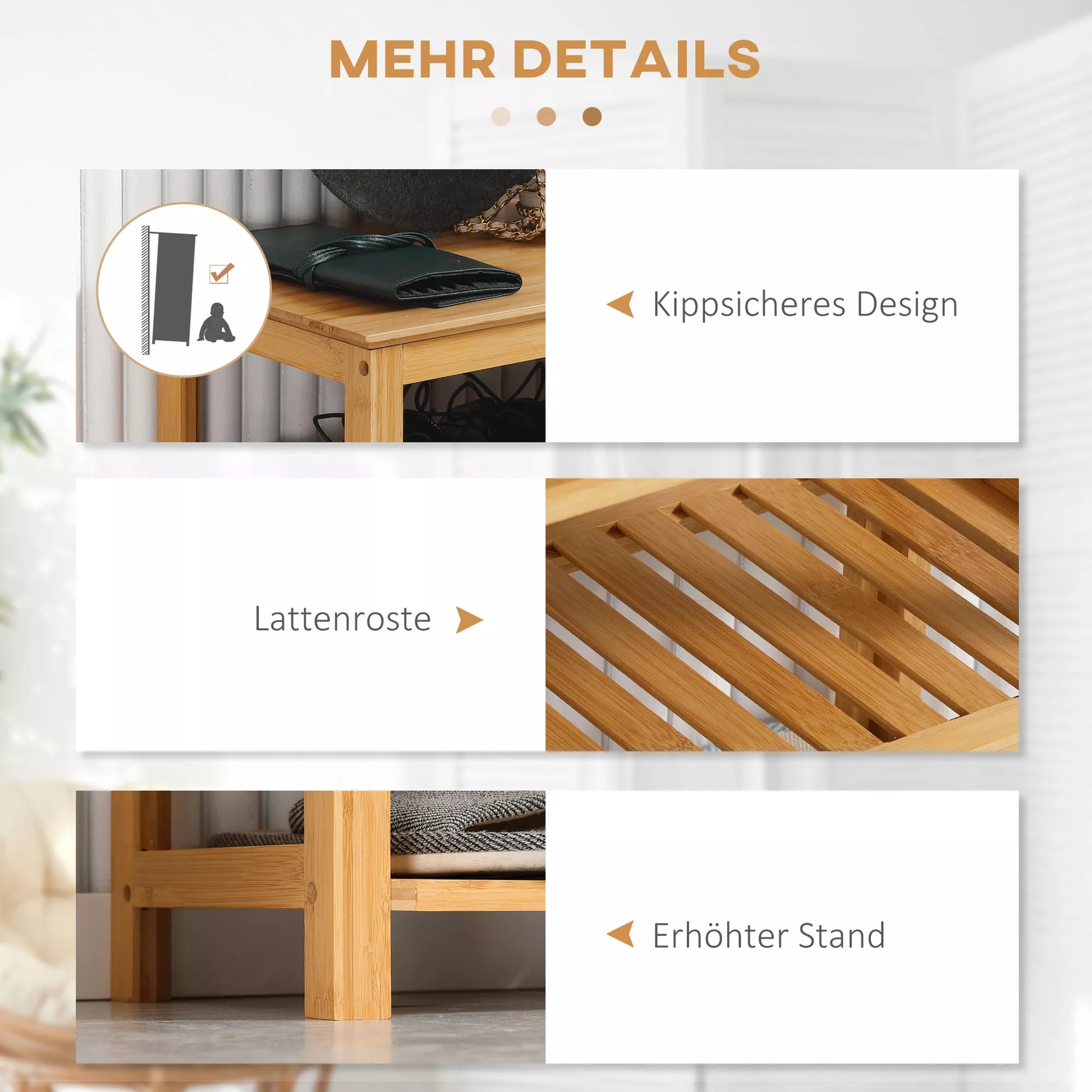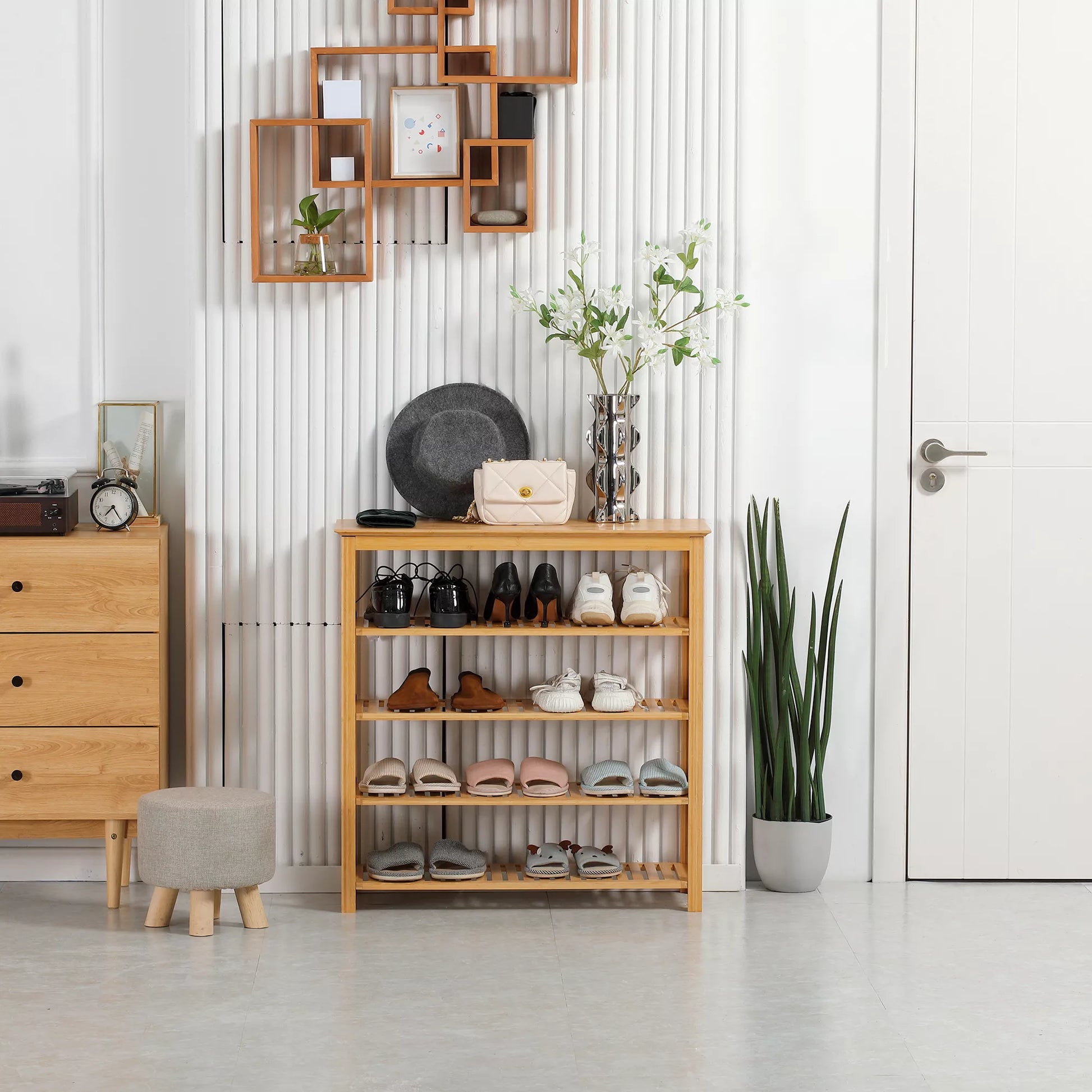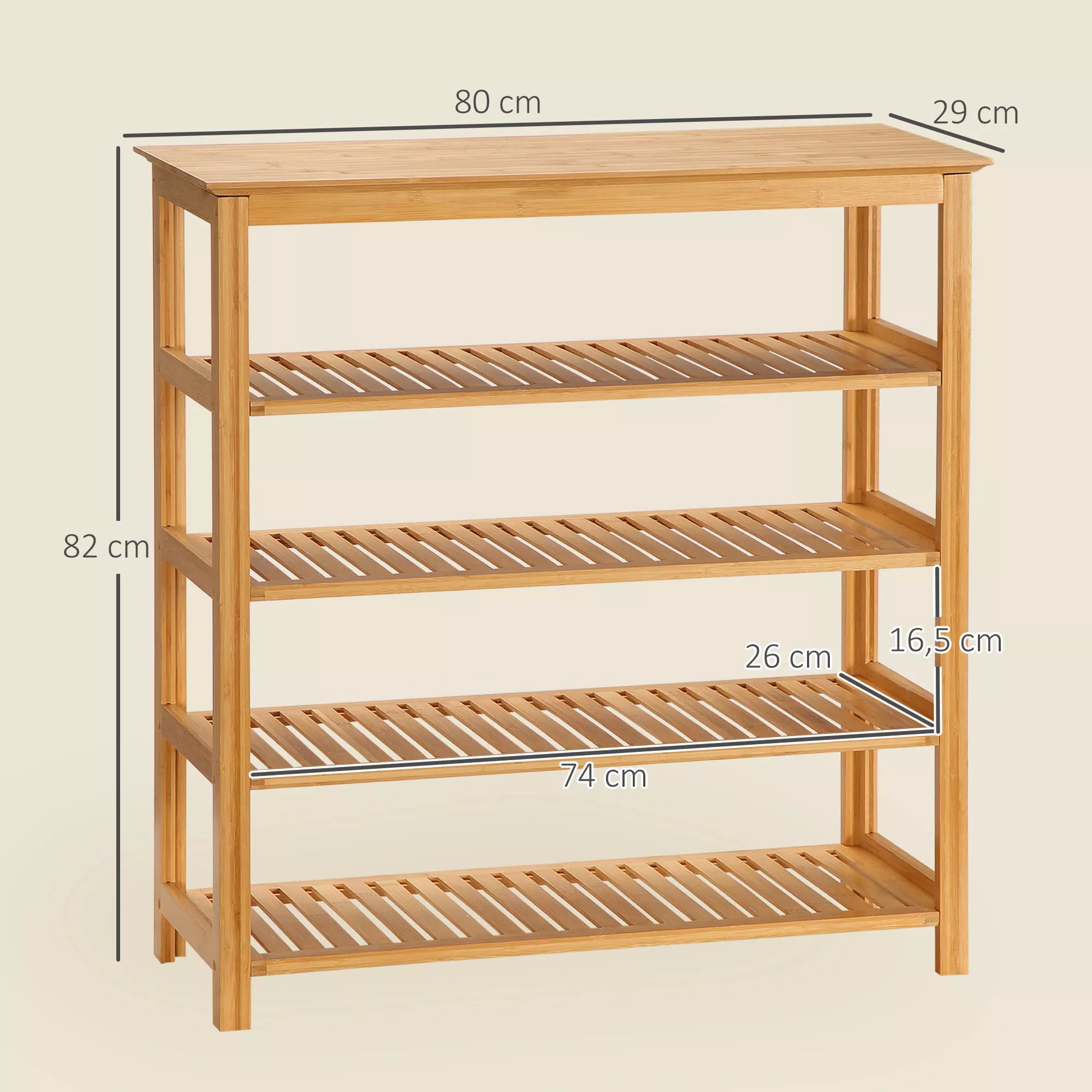 Batų lentynos su 4 lentynomis, bambukas, lamelių, iki 45 EU dydžio, natūralus