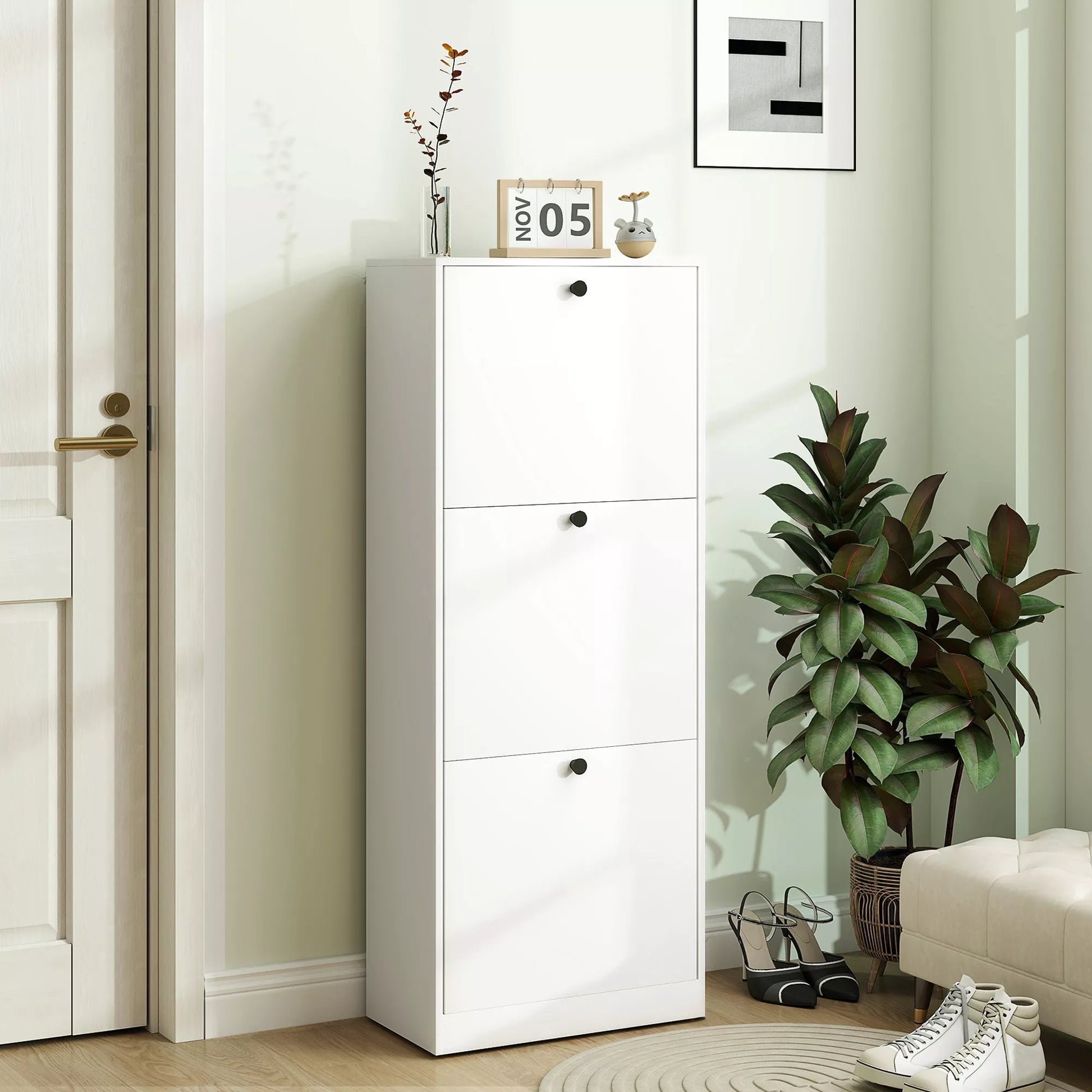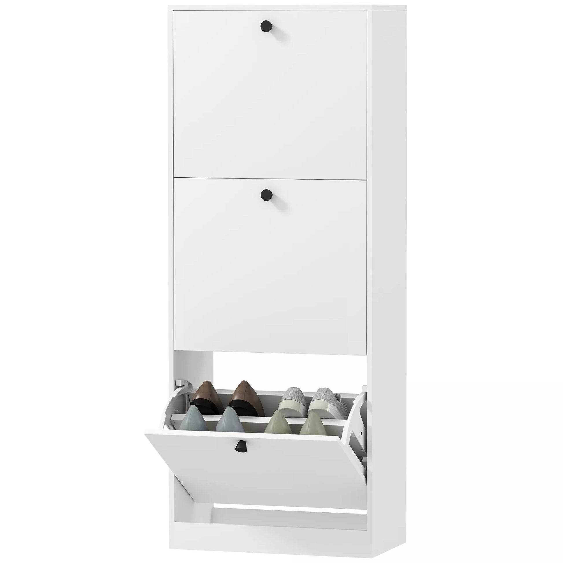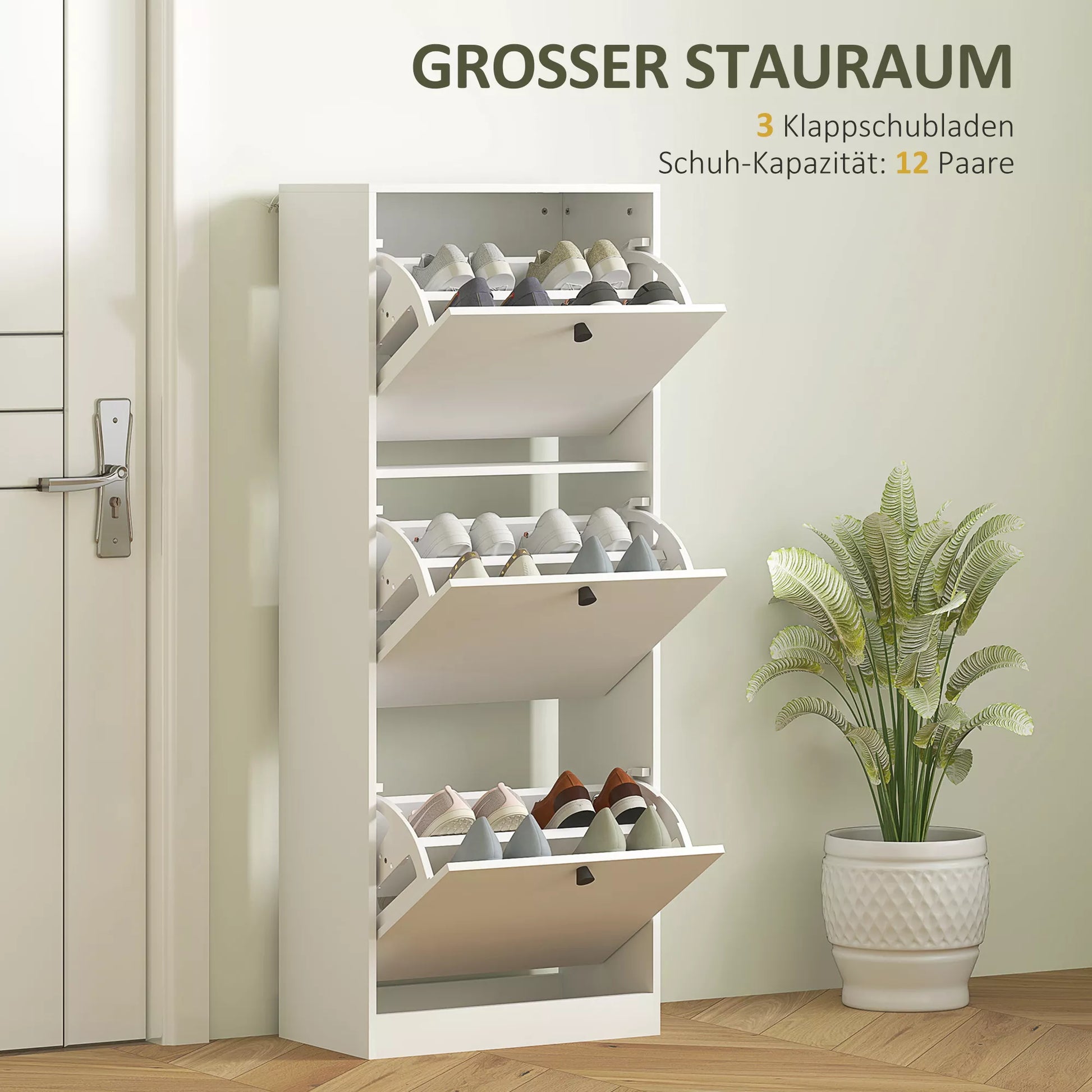 Batų spintelė, 3 stalčiai, talpa iki 12 porų batų, medžio drožlių plokštė, balta