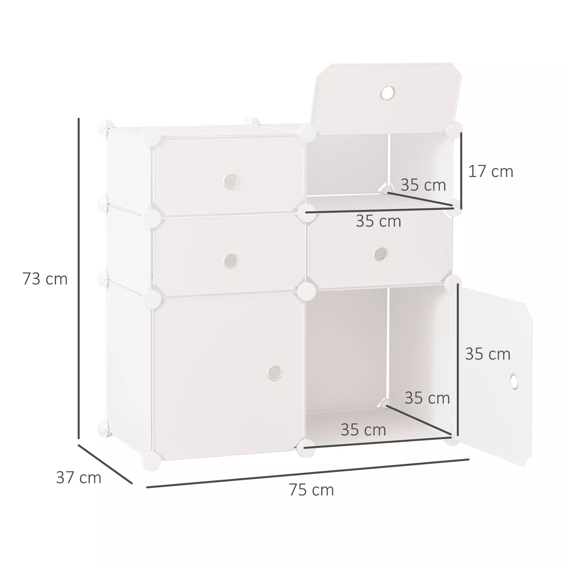 Batų spinta, lentyna su laikymo dėžėmis, drabužių spinta, plastikas, plienas, balta, 75 x 37 x 73 cm