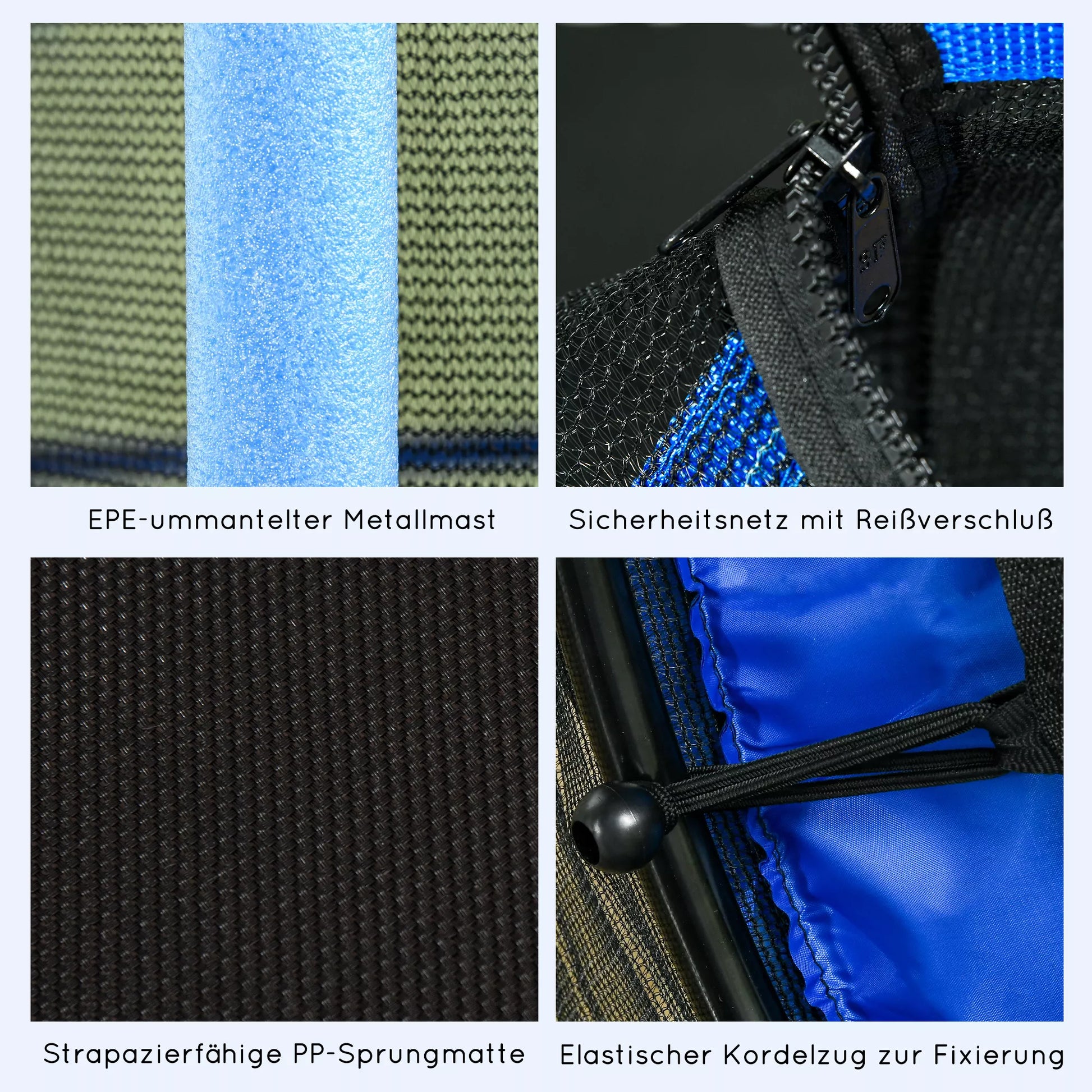 - ✔ Lauko tramplino šokinėjimo kilimėlis prie rėmo tvirtinamas 30 elastinių juostų