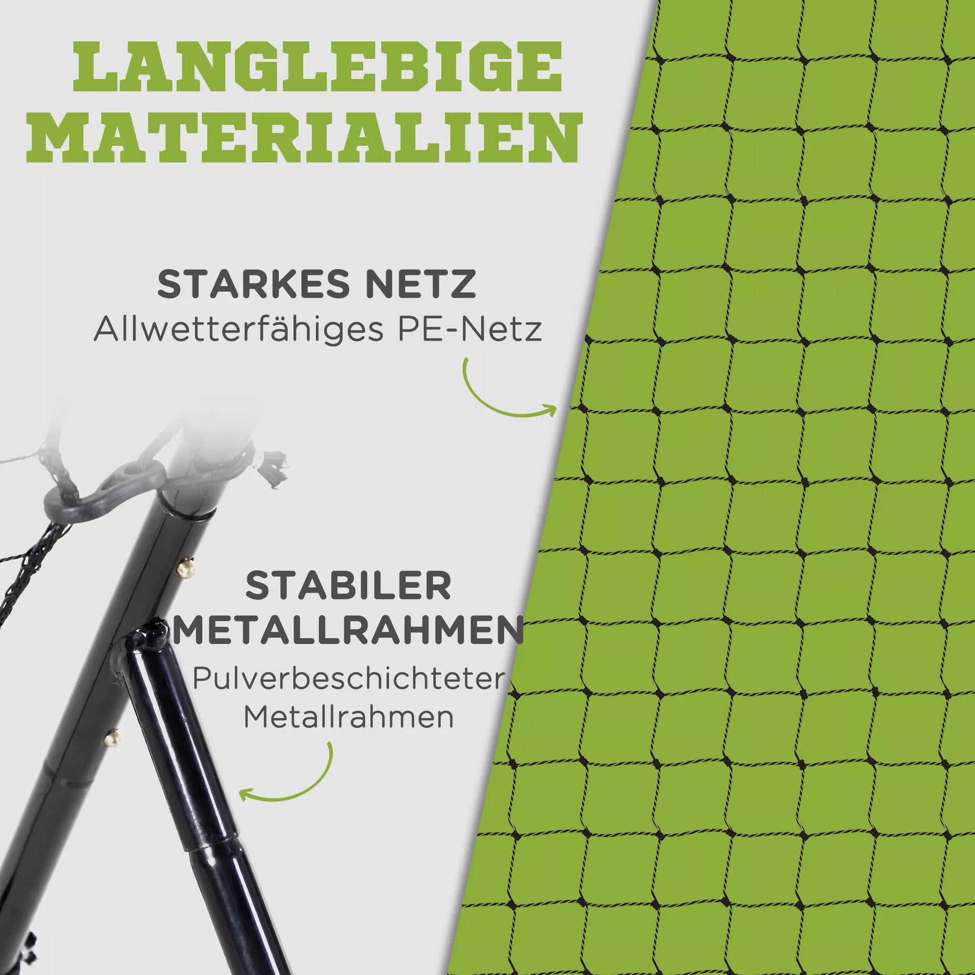 - ✔ Tvirtas metalinis atmušimo tinklo rėmas stabilumui ir stiprumui
