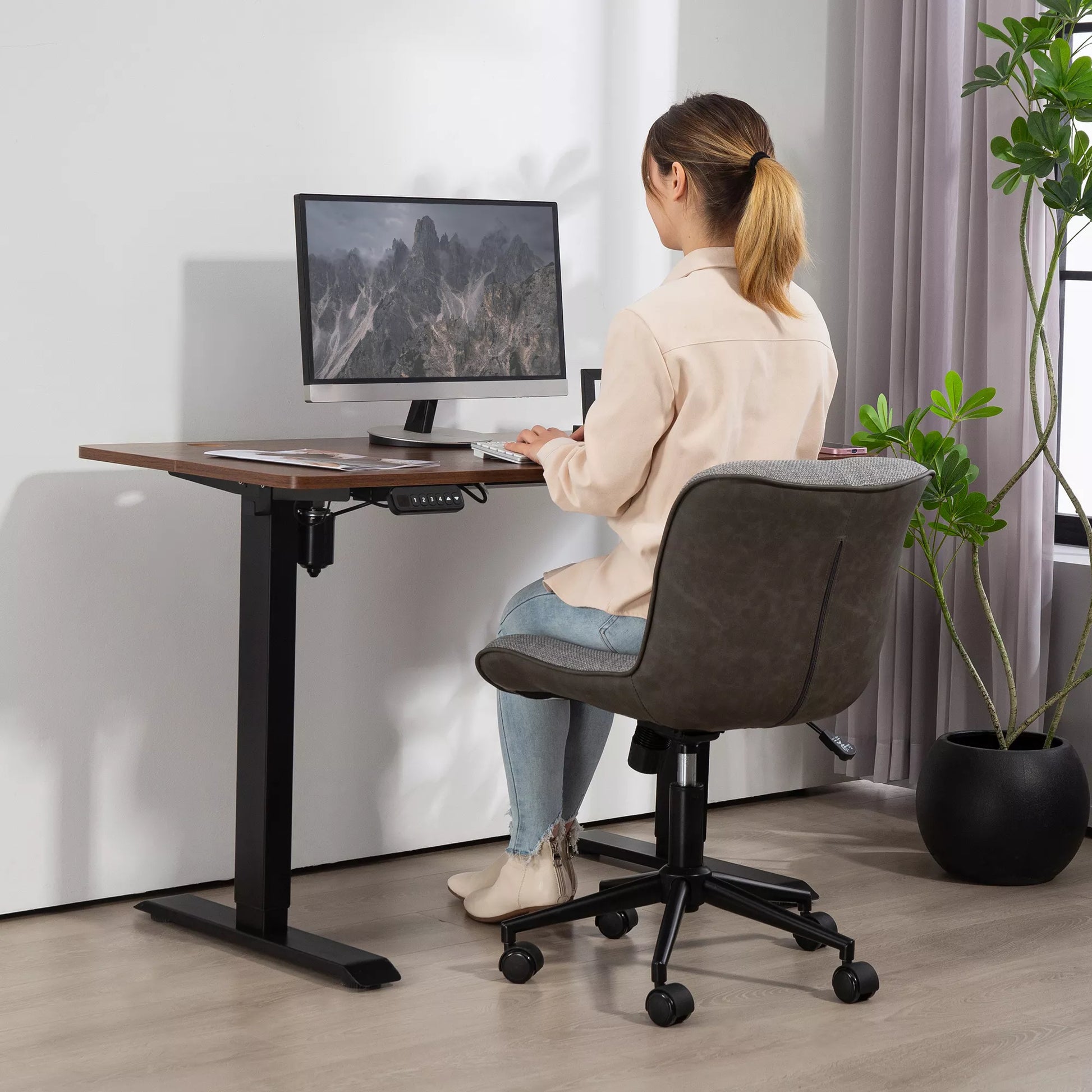 Mėgaukitės judėjimo laisve! Reguliuojamas biuro kėdė sujungia kvėpuojantį lininį audinį ir storus putplasčio paminkštinimus, užtikrinančius maksimalų sėdėjimo komfortą. 360° pasukamas, be porankių sėdimoji dalis taupo vietą ir, reguliuojamo aukščio (45-55 cm), puikiai pritaikoma prie bet kurio rašomojo stalo. Tvirti dirbtinės odos ratukai užtikrina sklandų slydimą ant visų grindų dangų. Puikiai tinka namų biurui!